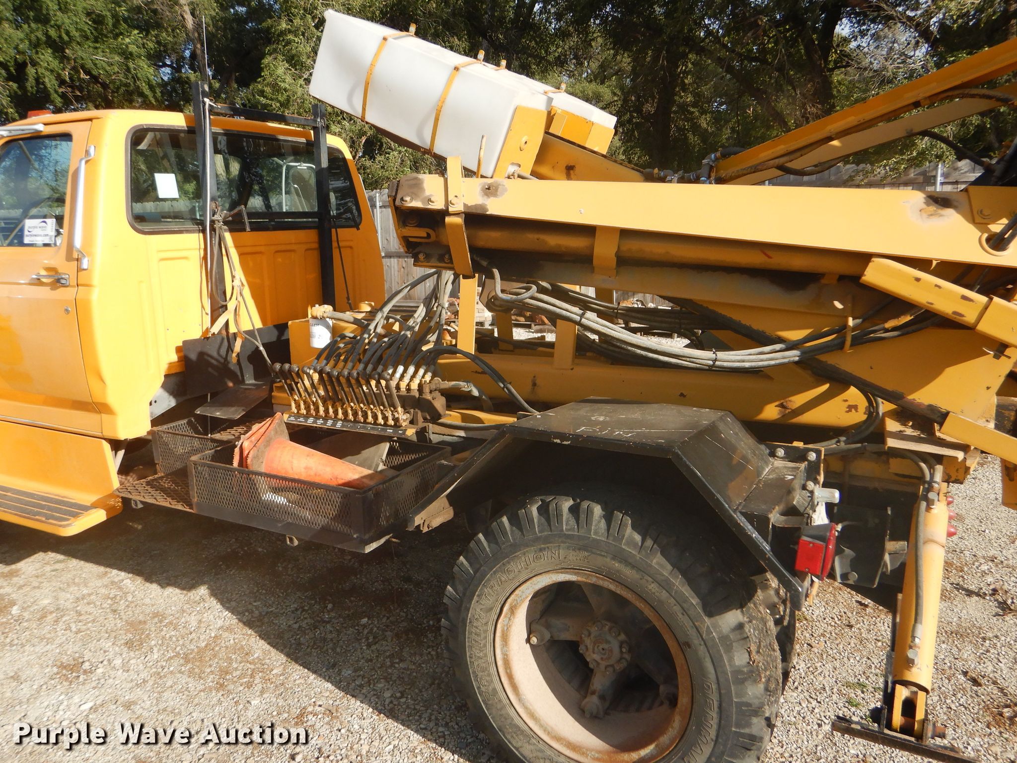 1991 Ford F600 truck with Vermeer tree spade. 53,309 miles on odometer, 6.1L V8 gas engine, Five speed manual transmission, Heat, PTO, 1998 Vermeer TS50M tree spade 48" to 52" ball diameter, 48" ball depth, 1,900 lbs tree ball weight, 5" recommended trunk diameter, Hydraulic fore/aft, Hydraulic side shift, (2) hydraulic outriggers, Serial 1VR0160S6W1000764, Spring suspension, Hydraulic brakes, 8.25-20 tires, Hydraulic hose will be fixed prior to auction. Kansas title. 1FDNF60H9MVA13346. City of Salina. 700 Sunset Dr. Salina, KS 67401