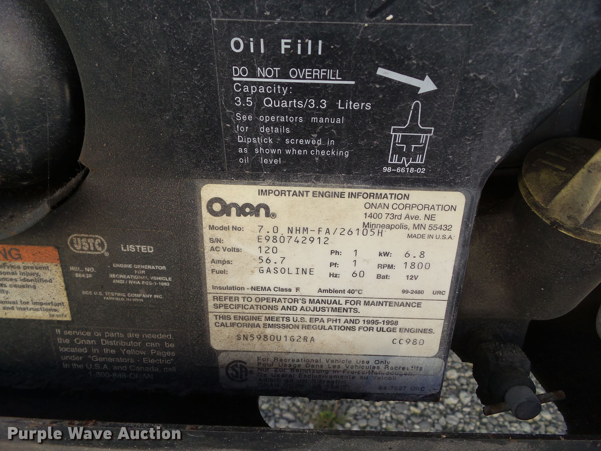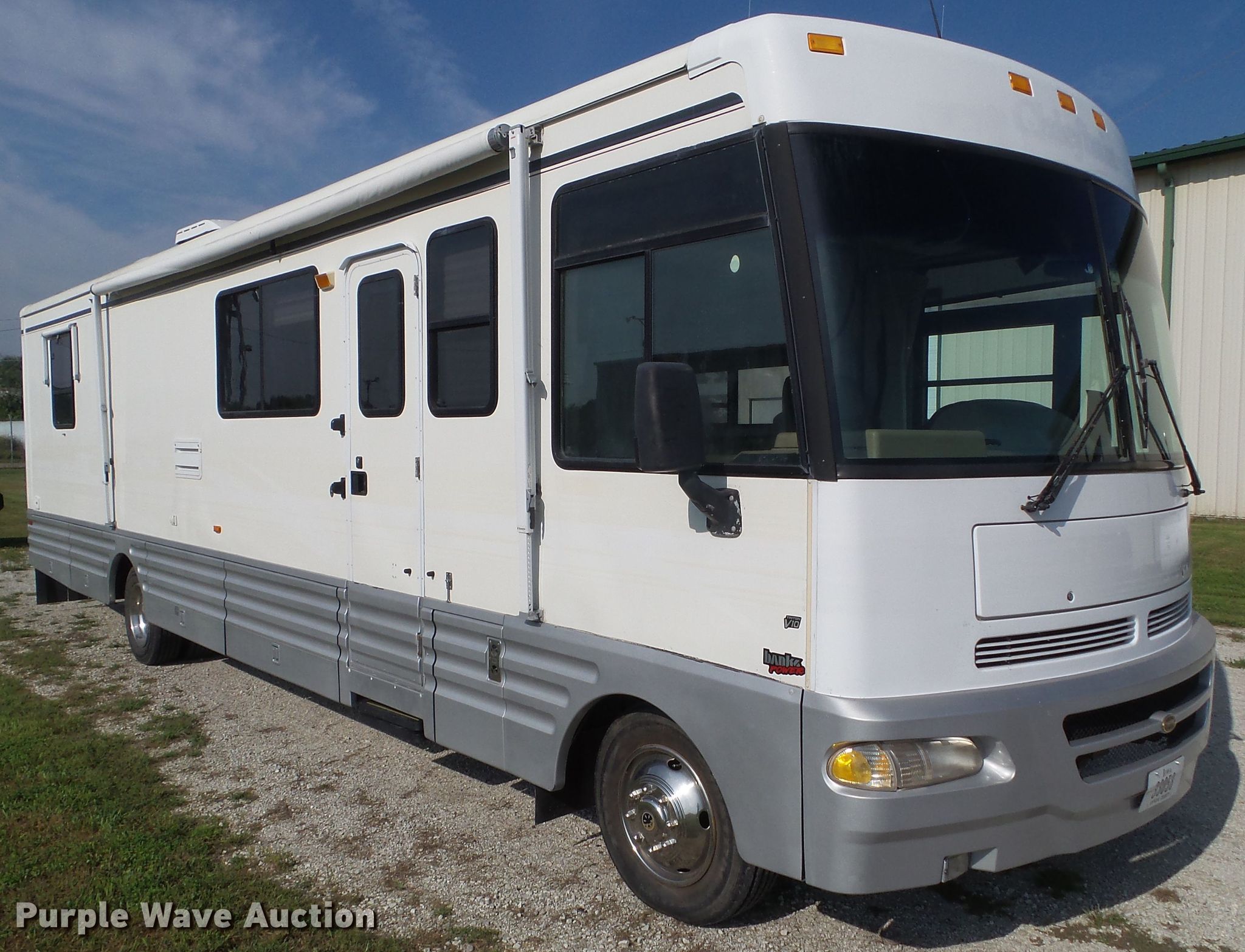 Purple Wave is selling a used RV in Iowa. This item is a 1999 Winnebago Chieftain 36WL RV with the following: 55,161 miles on odometer, 6.8L V10 SOHC 20V gas engine, Automatic transmission, Single axle, 36'L, Slide-out, (5) awnings, Kitchen, Sink, Refrigerator/freezer, Microwave, Propane stove, Onan Marquis 7000 generator, 701 hours on meter, Gas engine, 6.8 kW, Spring suspension, Hydraulic brakes, 242" wheelbase, 245/70R15 tires, GVWR 20,500 lbs