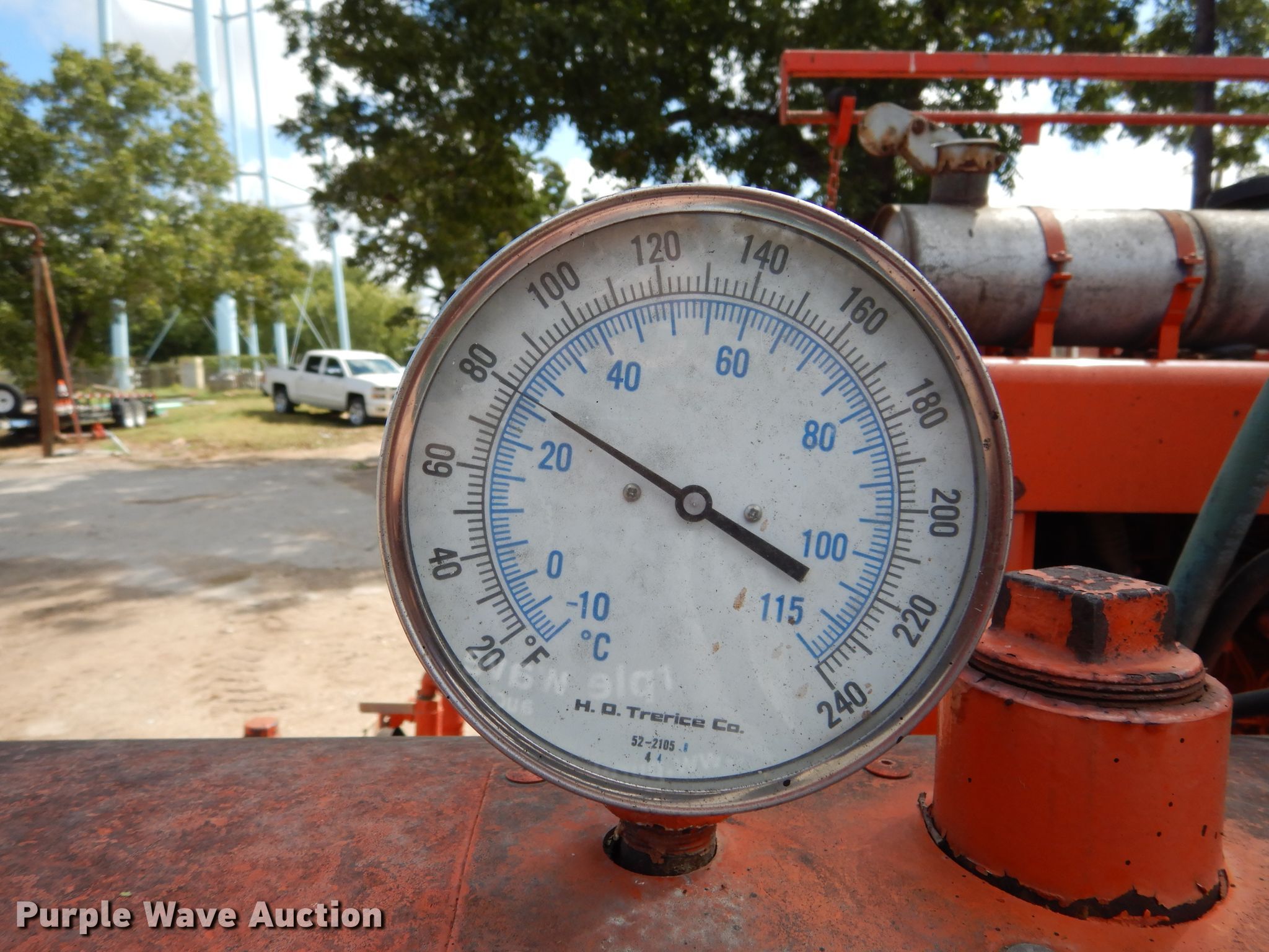 Purple Wave is selling a used Pot Hole Patcher in Texas. This item is a 1999 Dura Patcher 125DJT spray injection pothole patcher with the following: 706 hours on meter, 15'L x 8'W overall, John Deere 125DJT diesel engine, Heat blanket, 250 gallon oil tank, Oil and aggregate hoses, Outrigger support arm, Electrical brakes, ST225/75R15 tires, Serial 12641