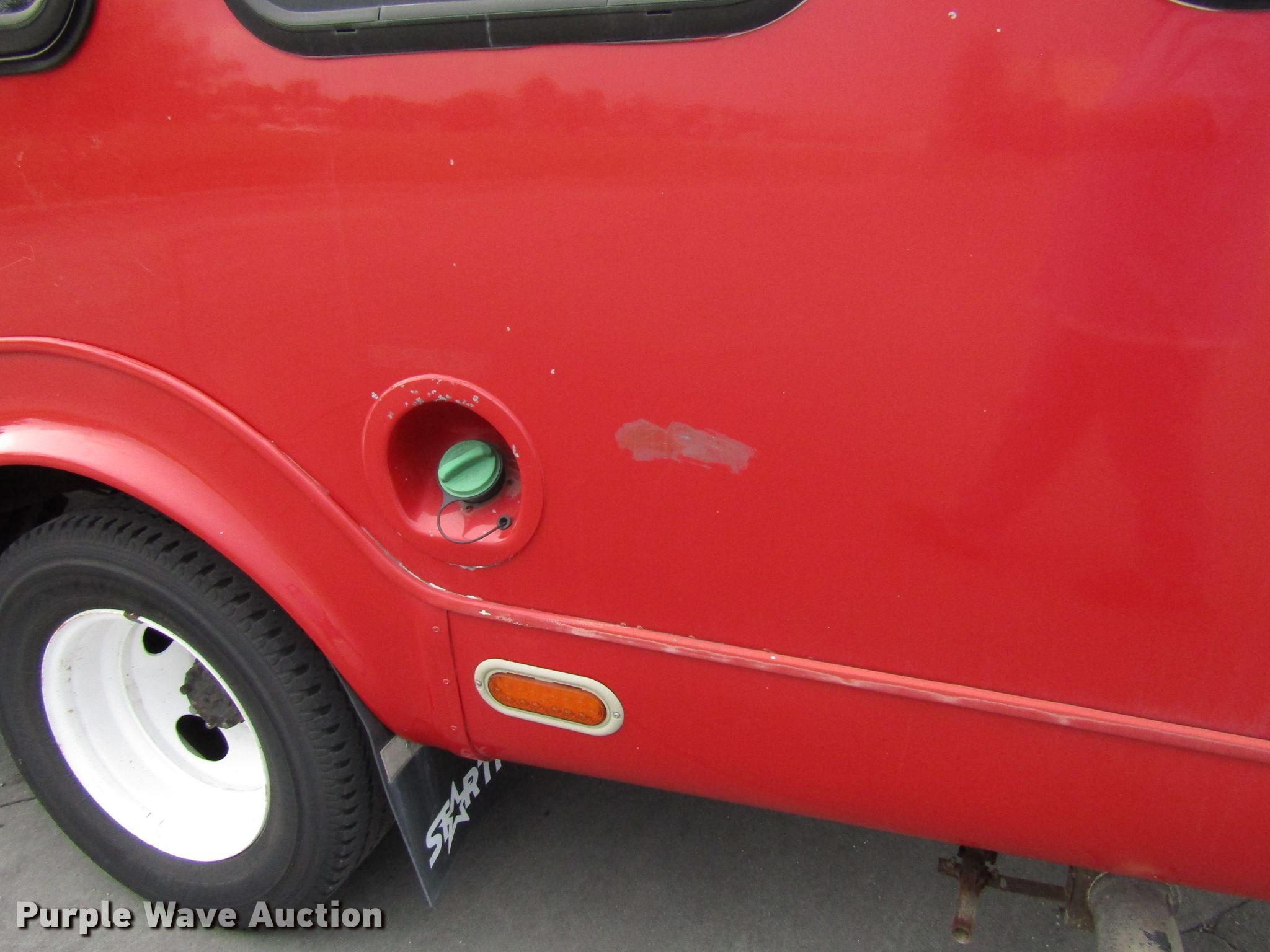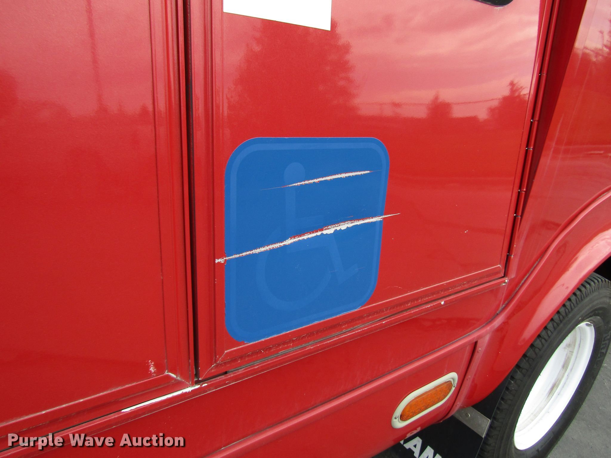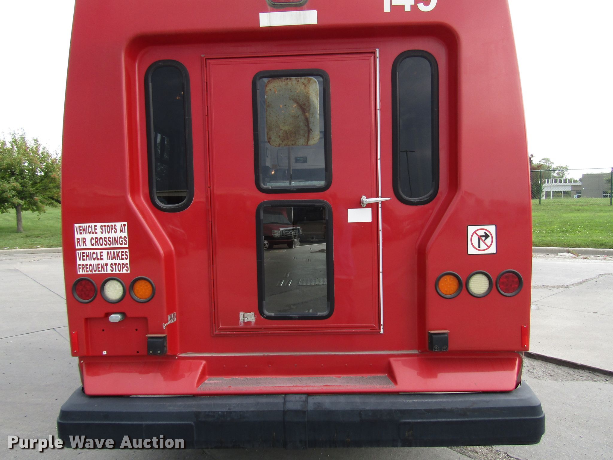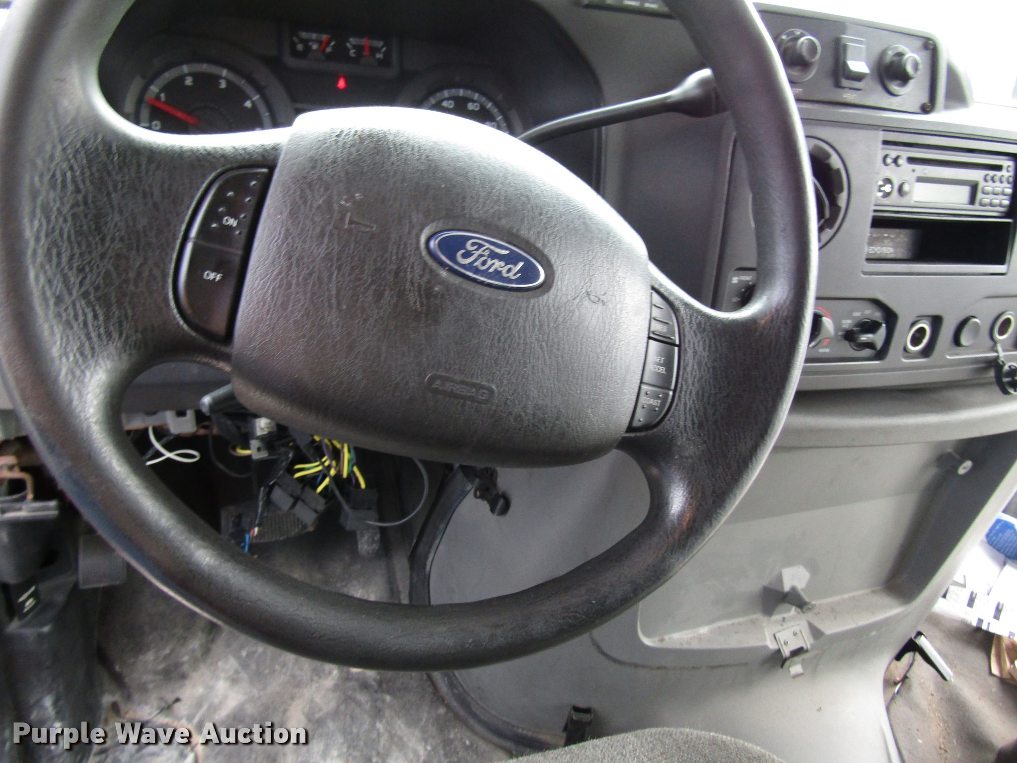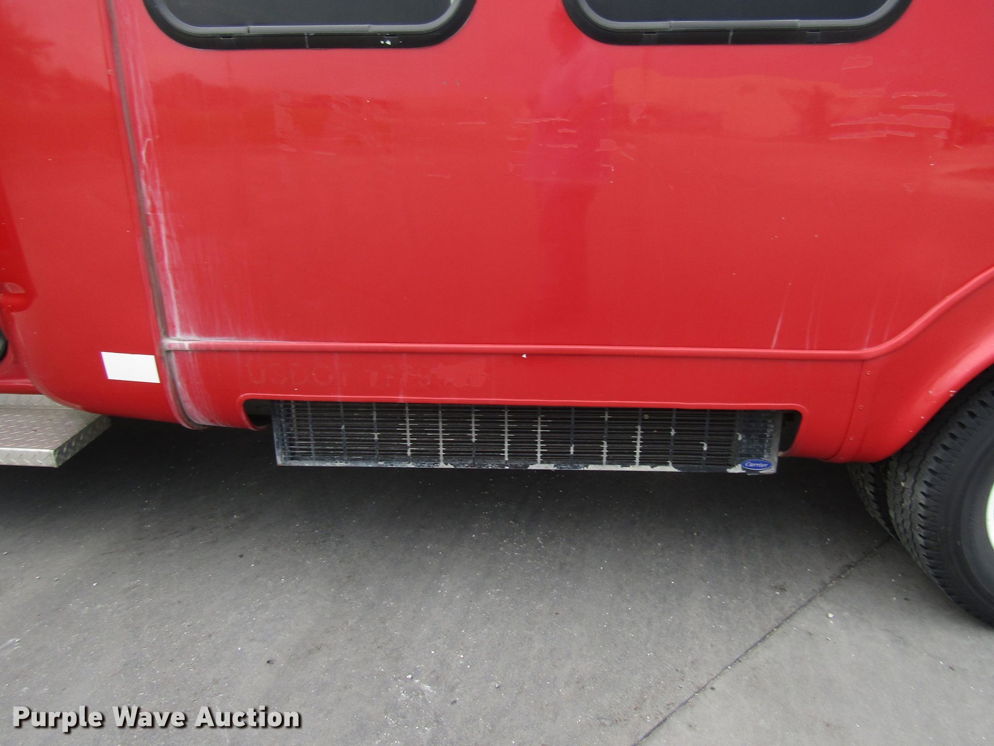 Purple Wave is selling a used Bus in Kansas. This item is a 2009 Ford E450 shuttle bus with the following: 186,524 miles on odometer, 6.0L V8 OHV 32V diesel engine, Automatic transmission, Single axle, AC and heat, Electric passenger sliding door, 14 passenger capacity, (2) child safety seats, Wheelchair lift, Spring suspension, Hydraulic brakes, 158" wheelbase, 225/75R16 tires, GVWR 14,500 lbs, AC system issues, Batteries dead, Unit# JCT149