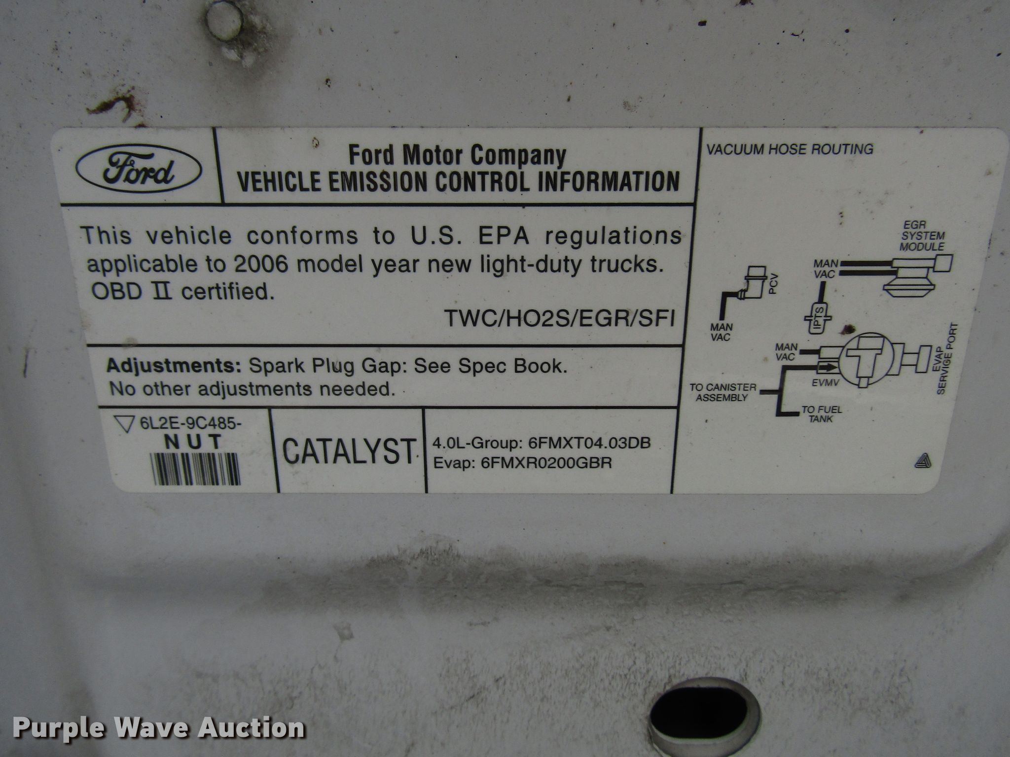 Purple Wave is selling a used Passenger Vehicle in Kansas. This item is a 2006 Ford Explorer SUV with the following: 76,405 miles on odometer, 4.0L V6 SOHC 16V gas engine, Automatic transmission, AC and heat, Cruise, Power windows and locks, 235/70R16 tires, Starter bolt hole broken on the bell housing, Unit# PWK3464