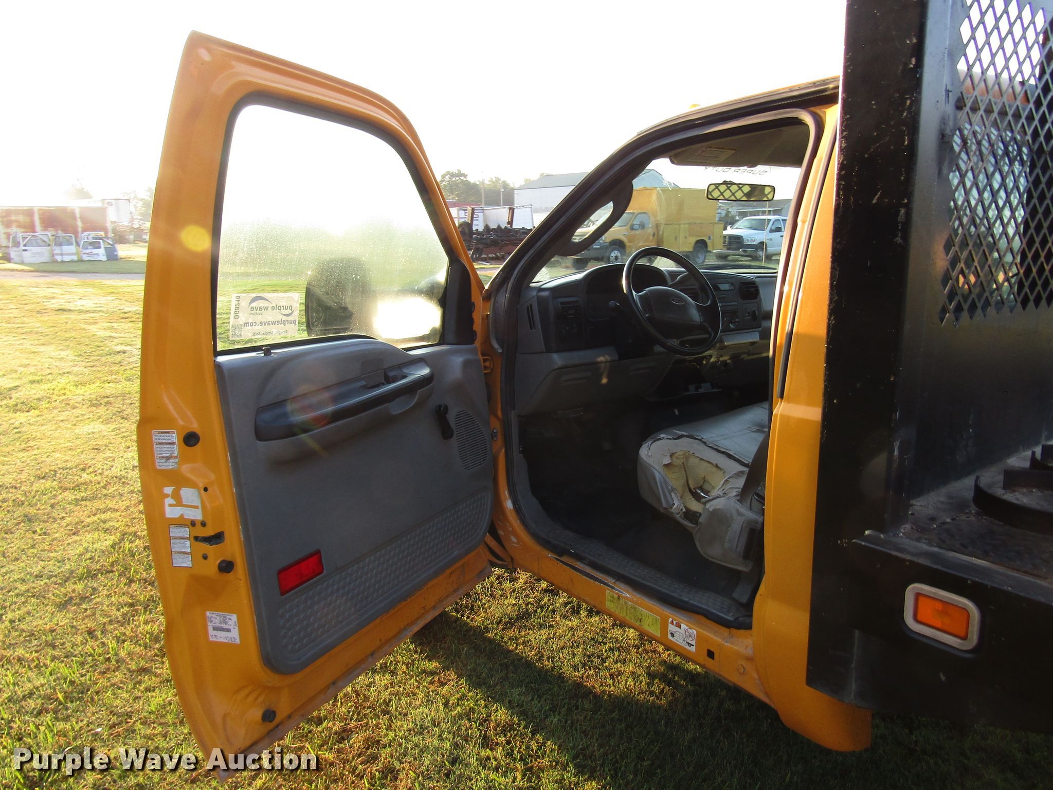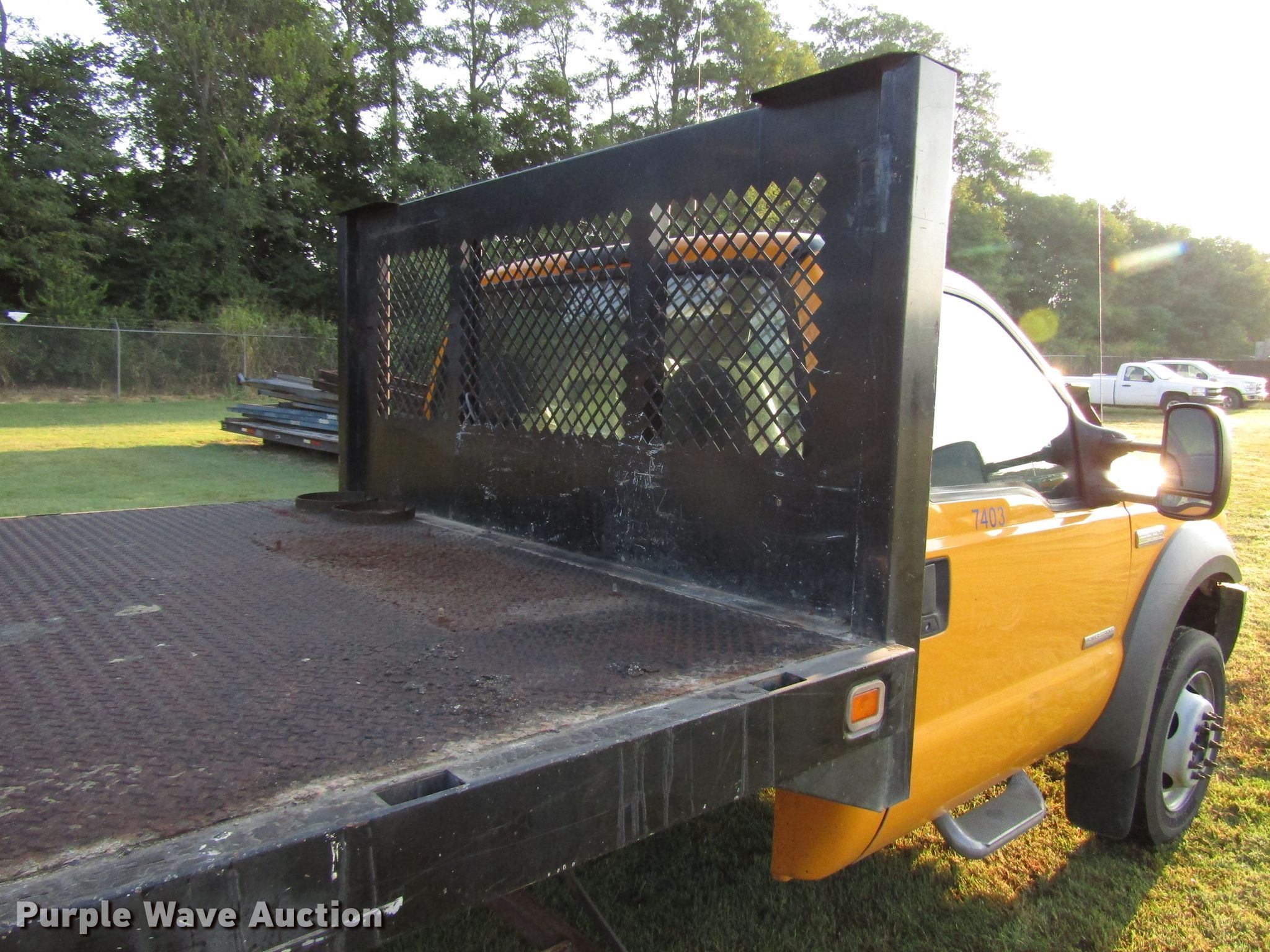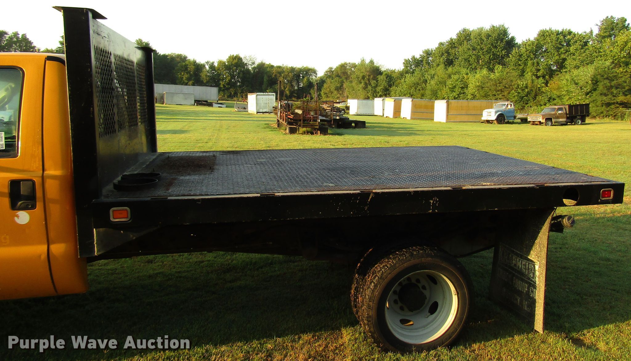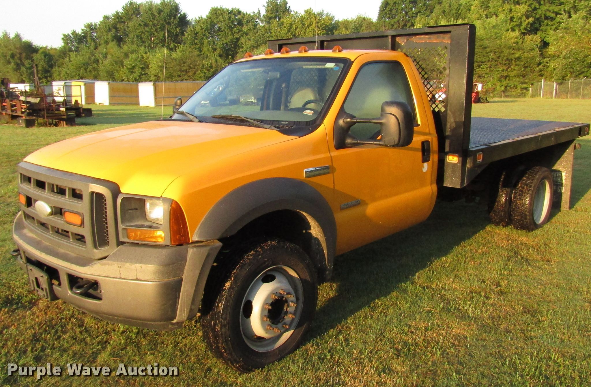 This 2005 Ford F550 Super Duty flatbed truck will sell to the highest bidder regardless of price.