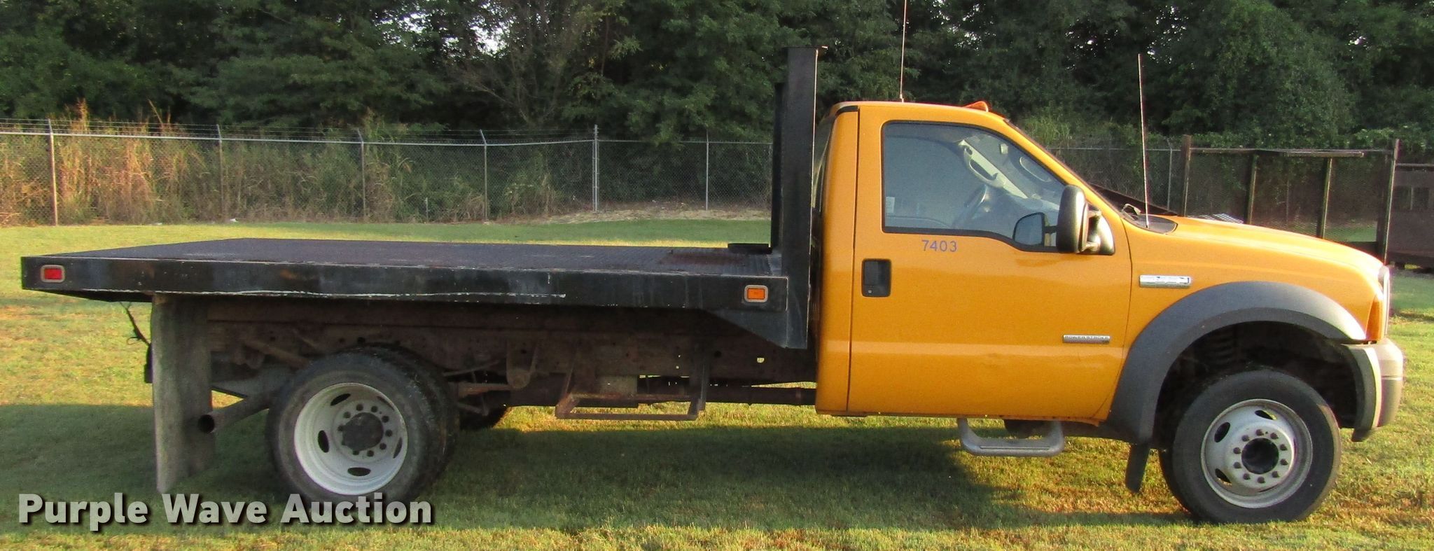 Purple Wave is selling a used Flat Bed Truck in Missouri. This item is a 2005 Ford F550 Super Duty flatbed truck with the following: 158,999 miles on odometer, 6.0L V8 OHV 32V diesel engine, Automatic transmission, AC and heat, 11.5'L x 96"W flatbed, 225/70R19.5 tires, MODOT ID 7403