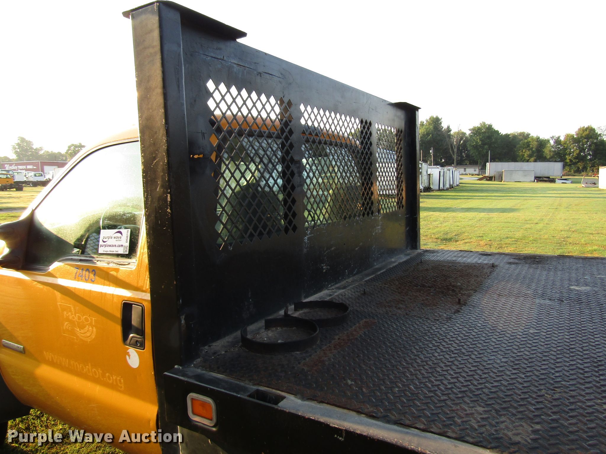 2005 Ford F550 Super Duty flatbed truck. 158,999 miles on odometer, 6.0L V8 OHV 32V diesel engine, Automatic transmission, AC and heat, 11.5'L x 96"W flatbed, 225/70R19.5 tires, MODOT ID 7403. Missouri title. 1FDAF56P25EC04034. Missouri Department of Transportation(MODOT). 615 N. West Bypass. Springfield, MO 65802