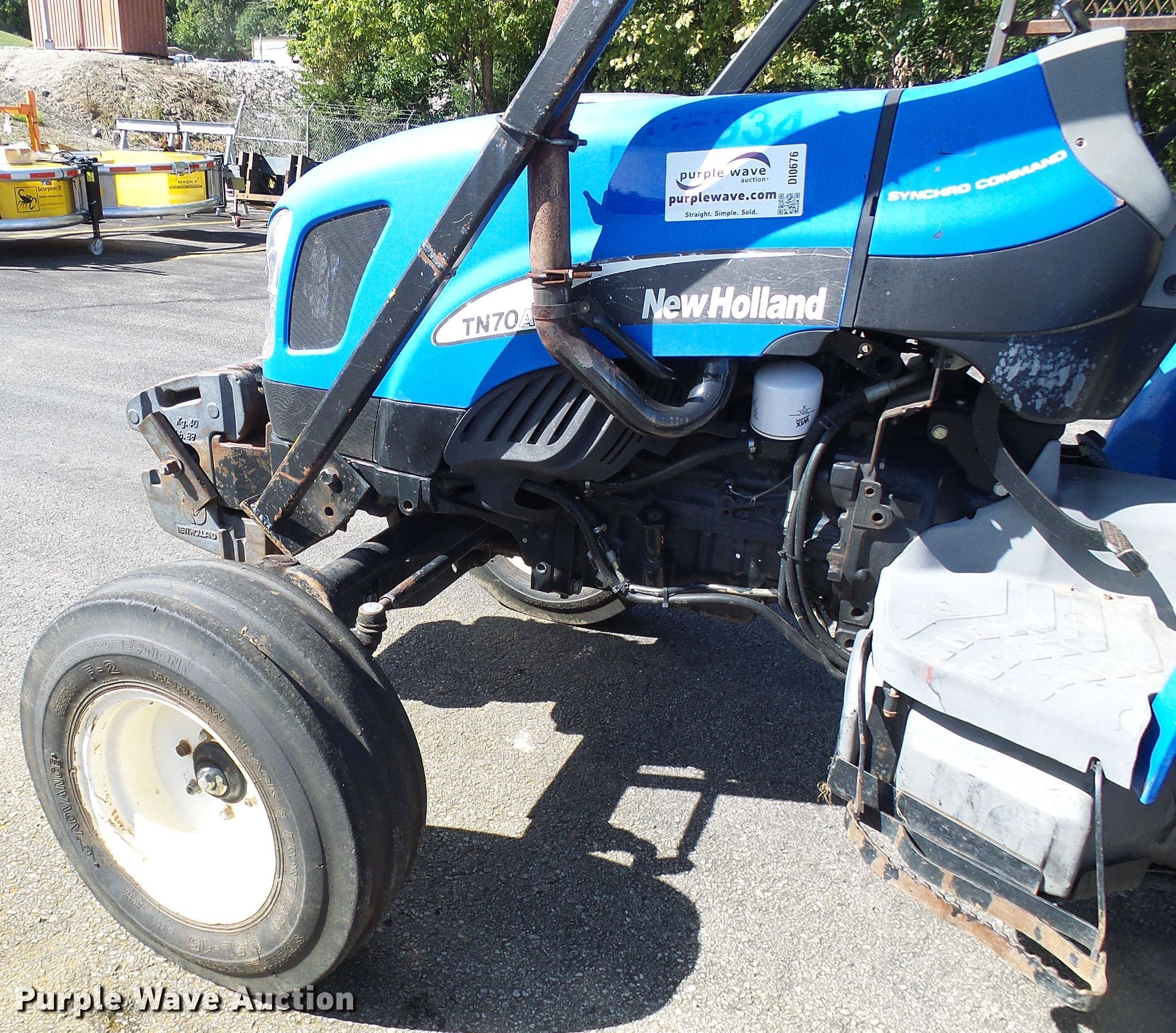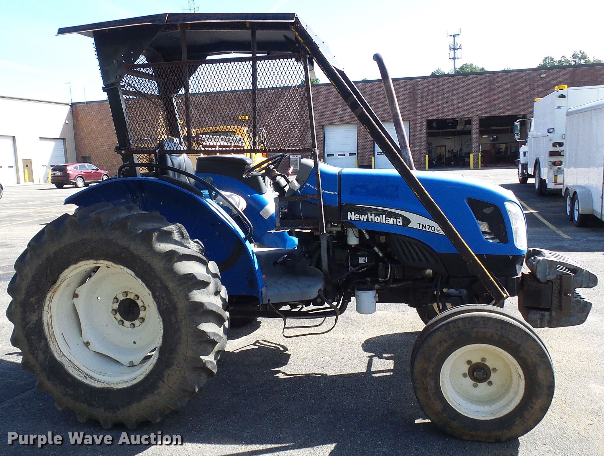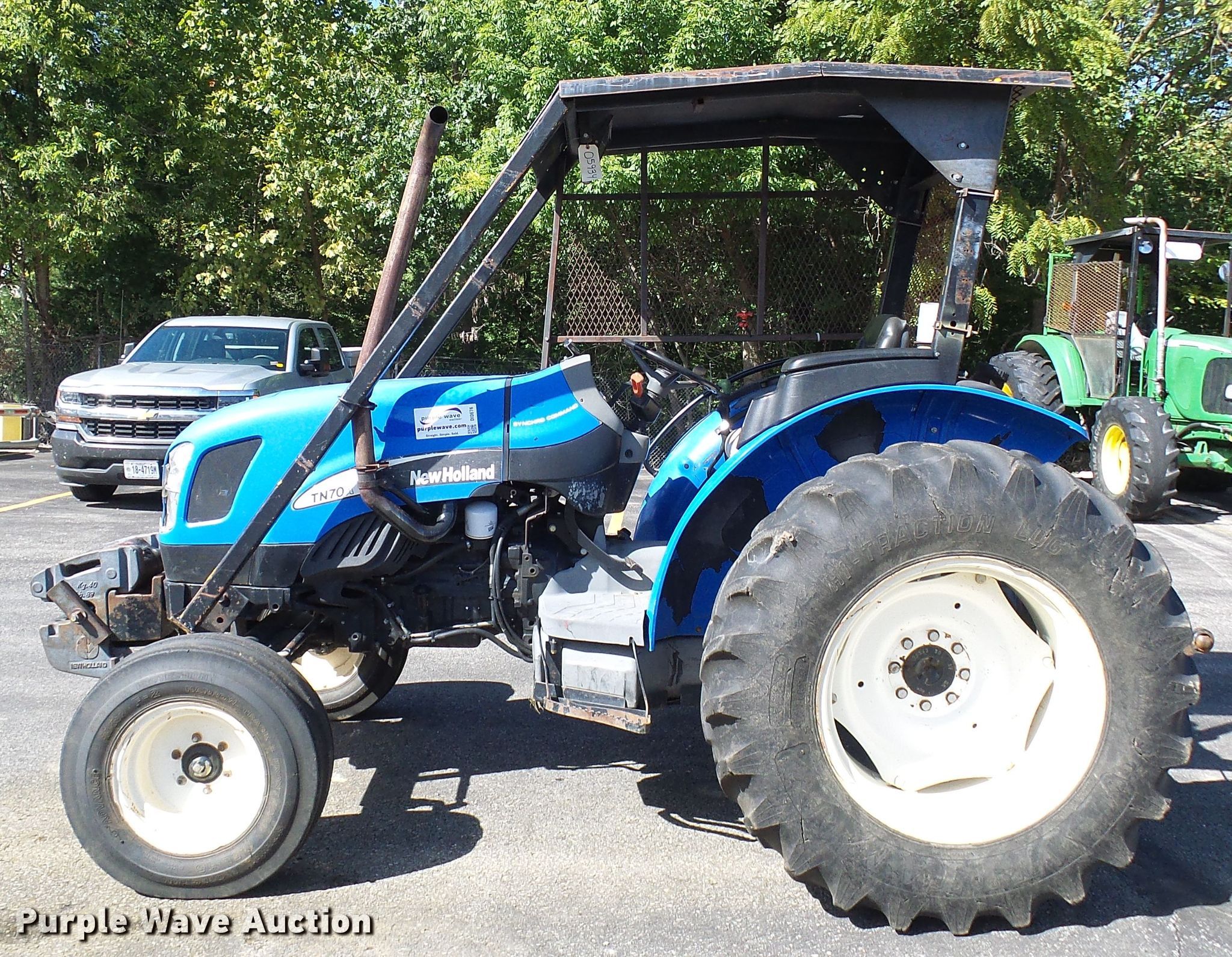 Purple Wave is selling a used Tractor in Missouri. This item is a 2004 New Holland TN70A tractor with the following: 1,166 hours on meter, Ford Iveco three cylinder diesel engine, Manual transmission, 4F-4R gears, Three point, 540 PTO, (3) rear hydraulic remote sets, 9.5L-15 front tires, 14.9-28 rear tires, Serial HJE002789, MODOT ID 05934