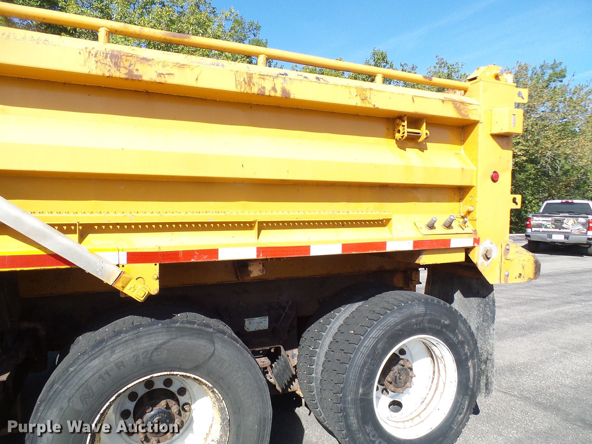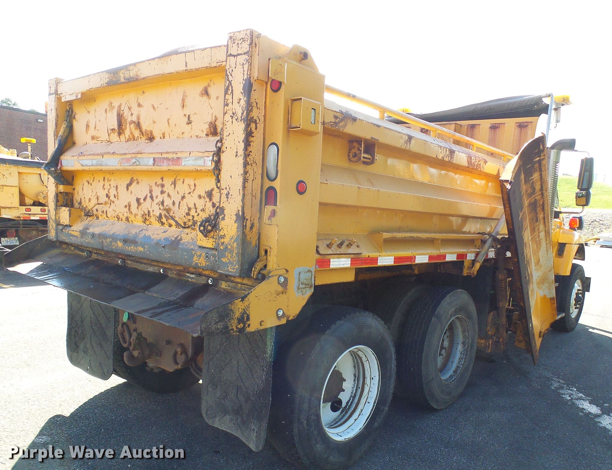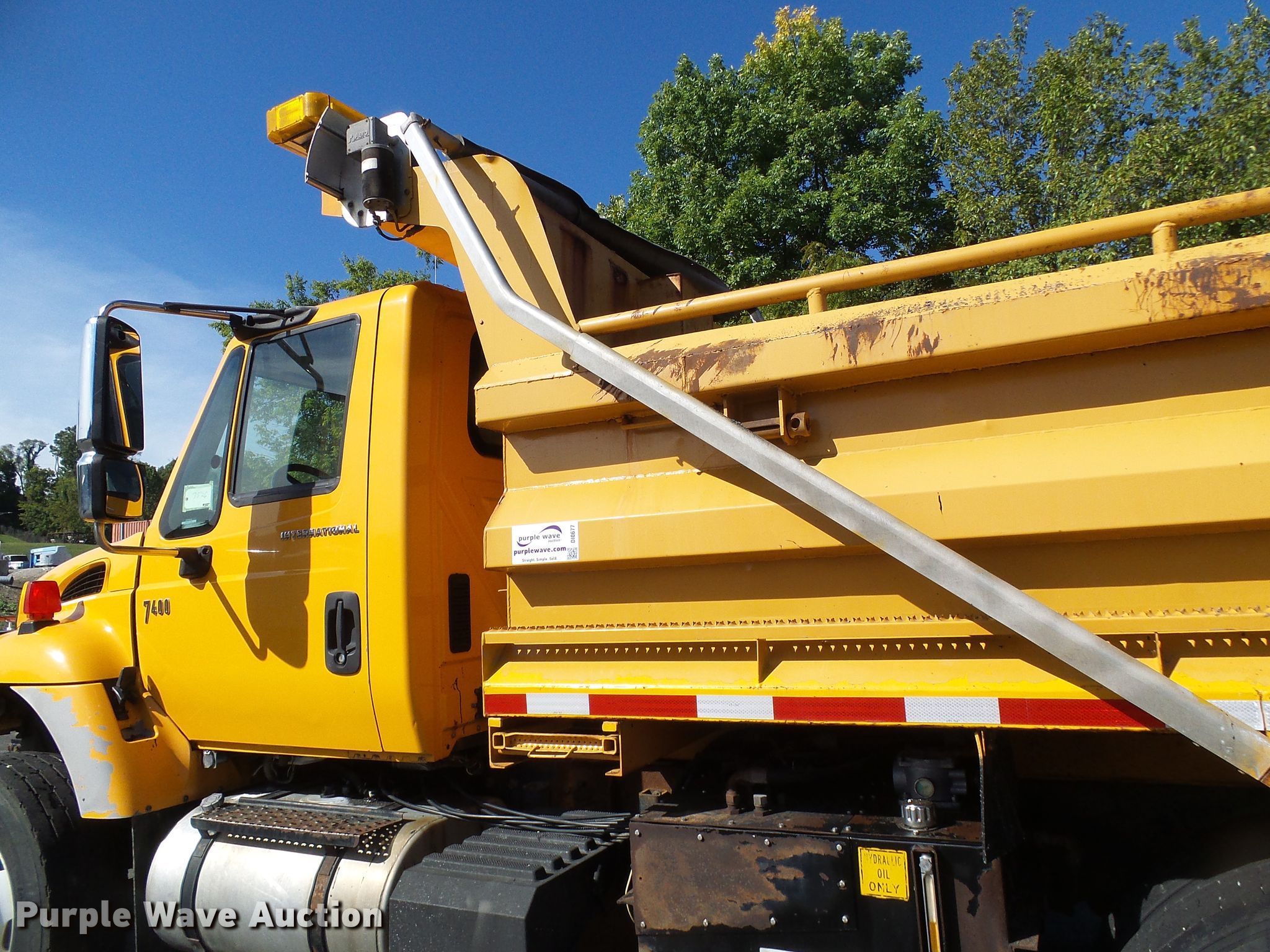 Purple Wave is selling a used Construction Dump Truck in Missouri. This item is a 2006 International 7400 dump truck with the following: 215,270 miles on odometer, 9,958 hours on meter, International 570 9.3L L6 diesel engine, Automatic transmission, Tandem axle, Inter-axle differential lock, AC and heat, Cruise, Power windows, Heated mirrors, PTO, Wheeler steel dump bed, 13'L x 8'W, 36" side height, Roll tarp, Single ram hoist, Air operated end gate, Henke 8'W plow, Spring suspension, Air brakes, 315/80R22.5 front tires, 11R22.5 rear tires, GVWR 56,000 lbs, Bed crack weld repairs, MODOT ID 7526