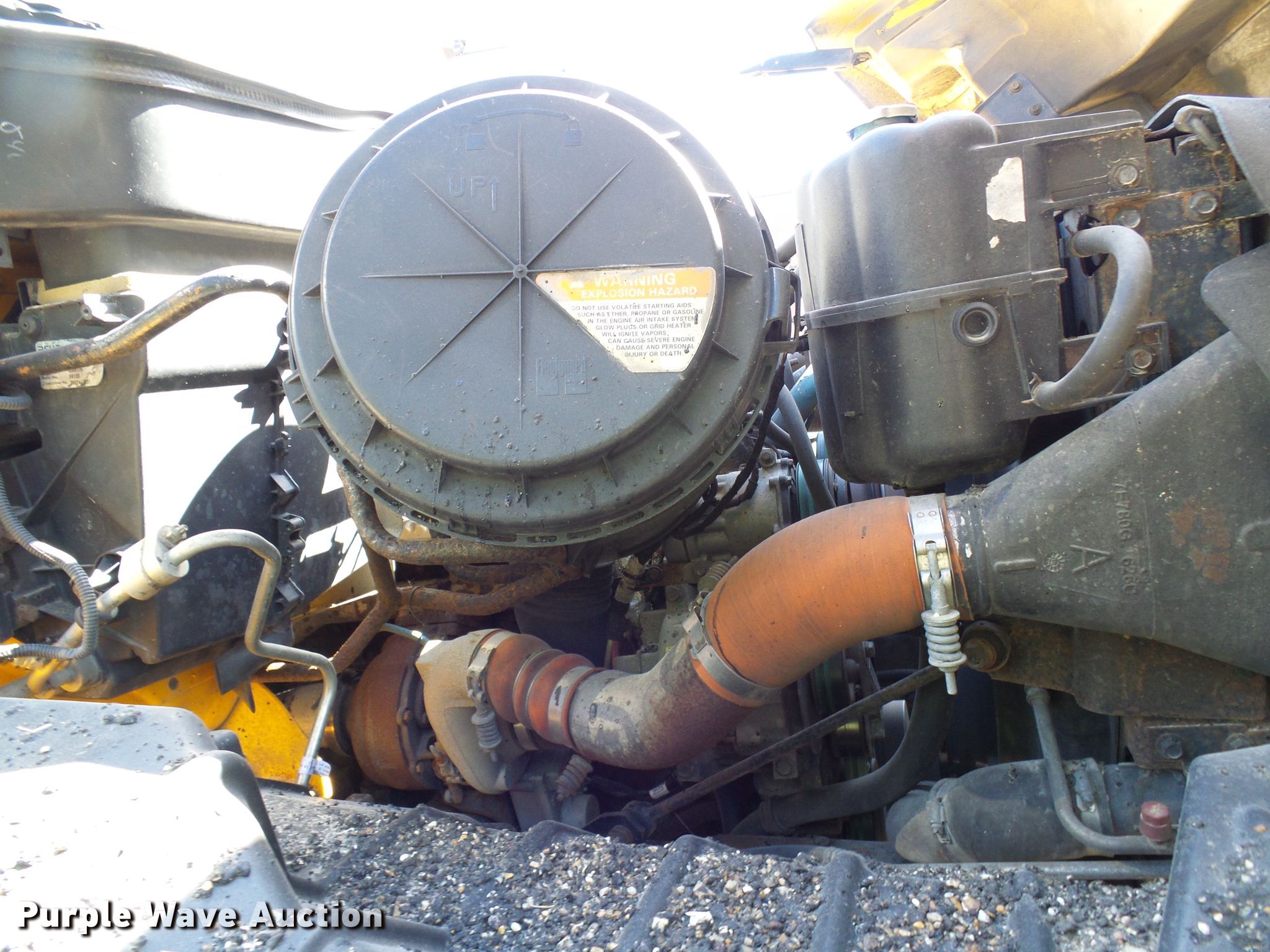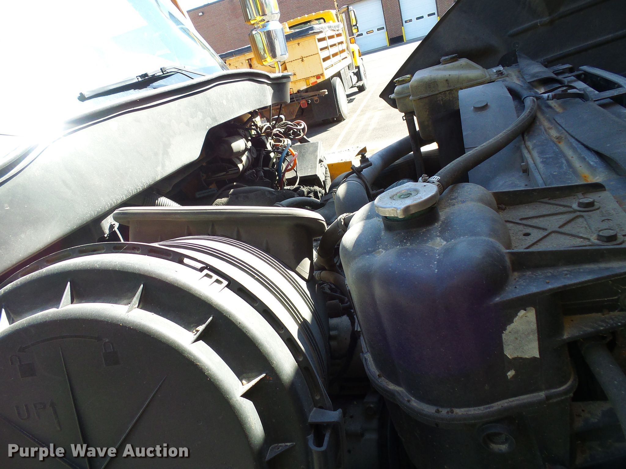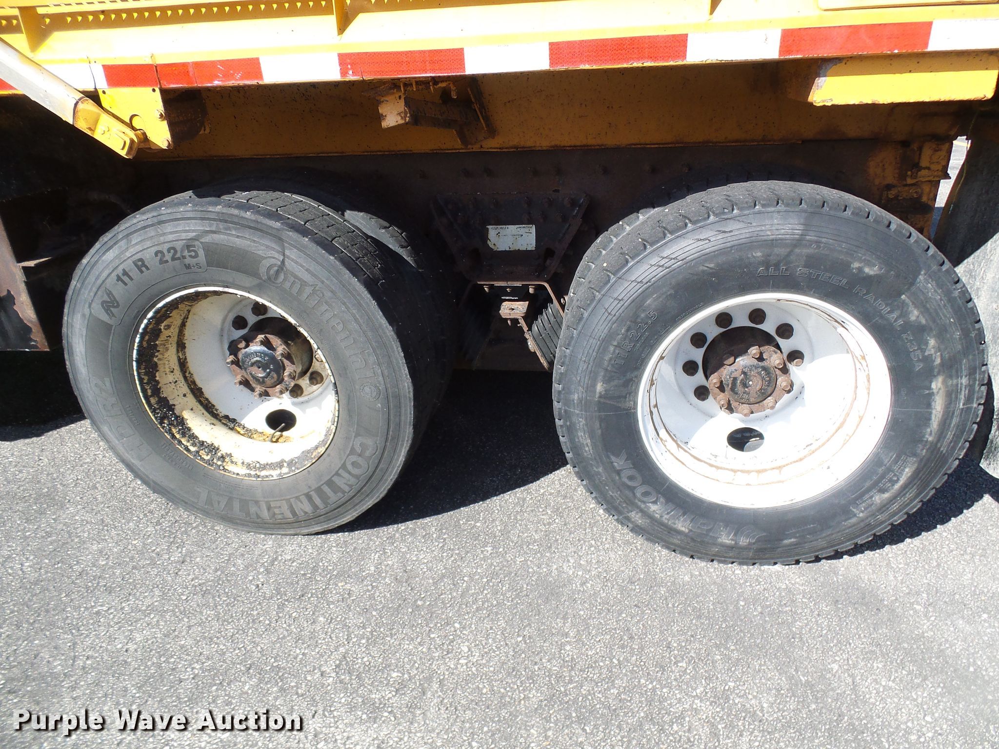 Purple Wave is selling a used Construction Dump Truck in Missouri. This item is a 2006 International 7400 dump truck with the following: 215,270 miles on odometer, 9,958 hours on meter, International 570 9.3L L6 diesel engine, Automatic transmission, Tandem axle, Inter-axle differential lock, AC and heat, Cruise, Power windows, Heated mirrors, PTO, Wheeler steel dump bed, 13'L x 8'W, 36" side height, Roll tarp, Single ram hoist, Air operated end gate, Henke 8'W plow, Spring suspension, Air brakes, 315/80R22.5 front tires, 11R22.5 rear tires, GVWR 56,000 lbs, Bed crack weld repairs, MODOT ID 7526