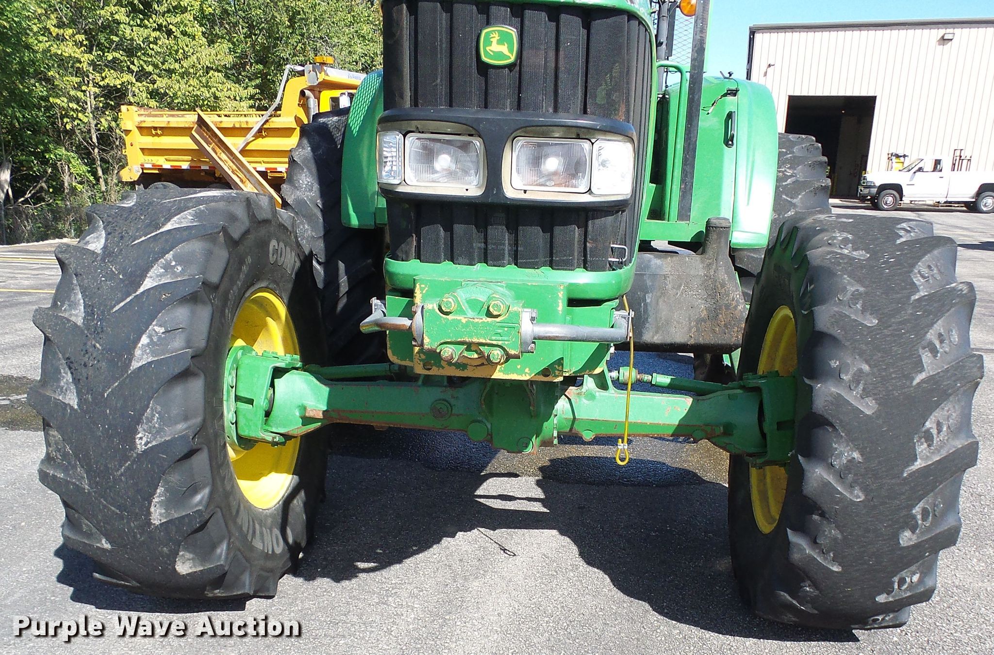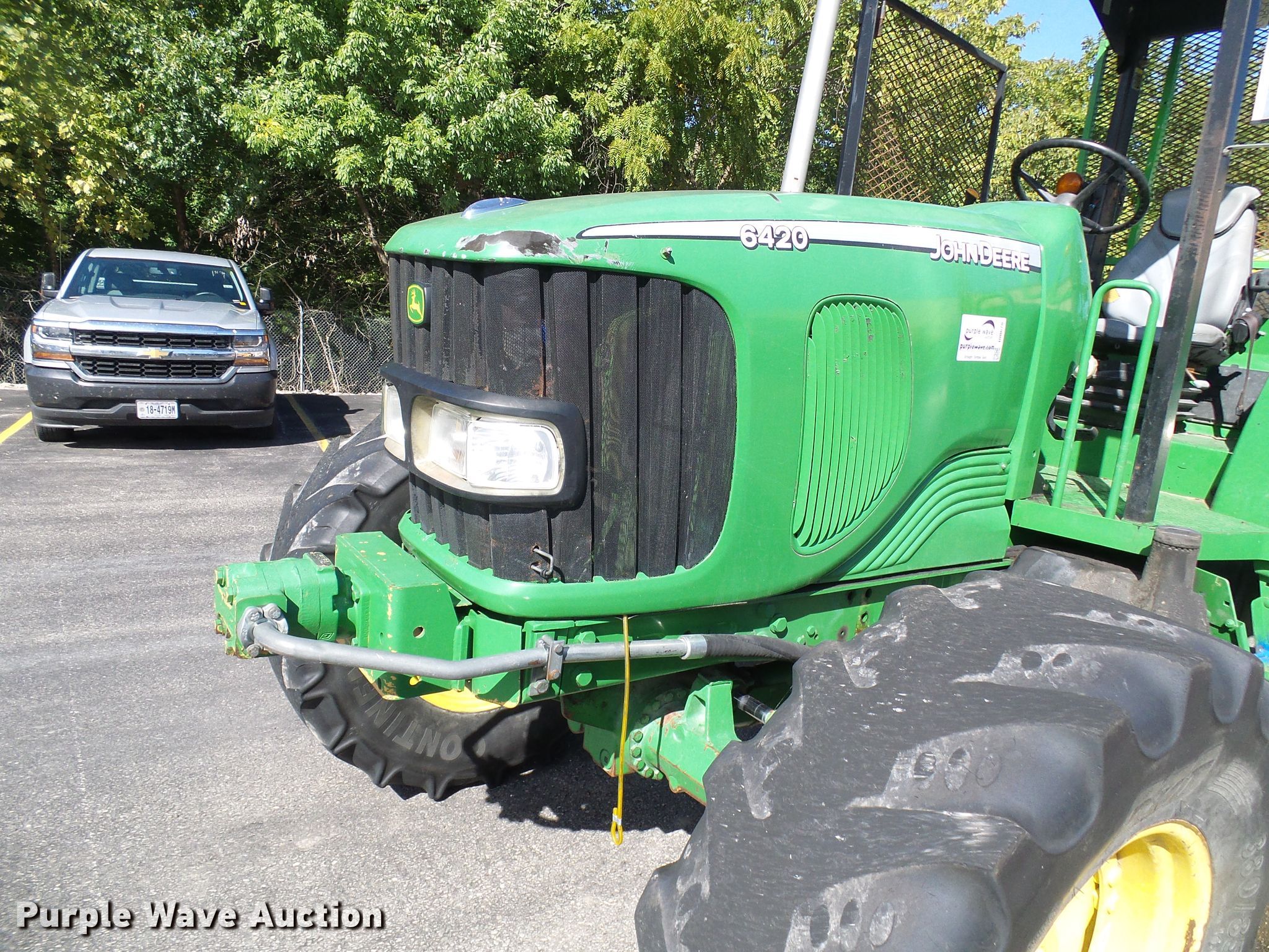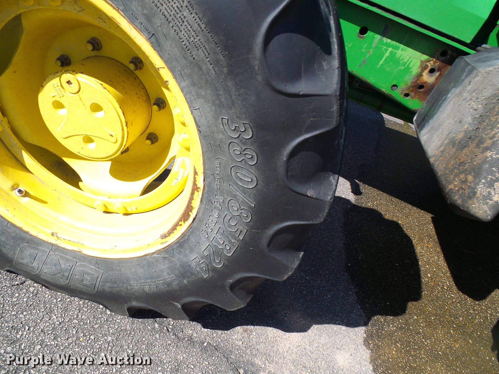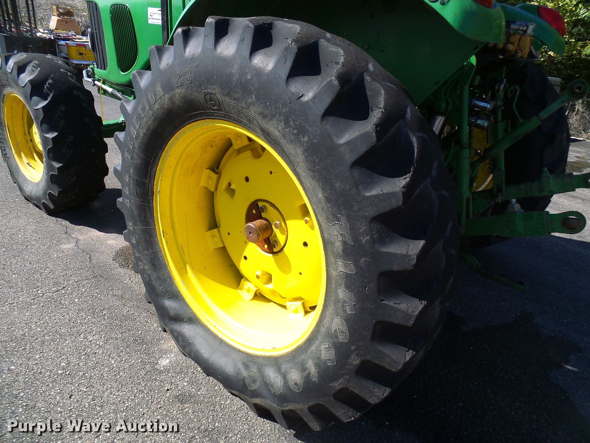 Purple Wave is selling a used Tractor in Missouri. This item is a 2002 John Deere 6420 MFWD tractor with the following: 2,653 hours on meter, John Deere four cylinder diesel engine, Manual transmission, 12F-12R gears, Three point, Seven pin outlet, 540 PTO, (3) rear hydraulic remote sets, 380/85R24 front tires, 460/85R34 rear tires, Serial L06420M341834, MODOT ID 05853