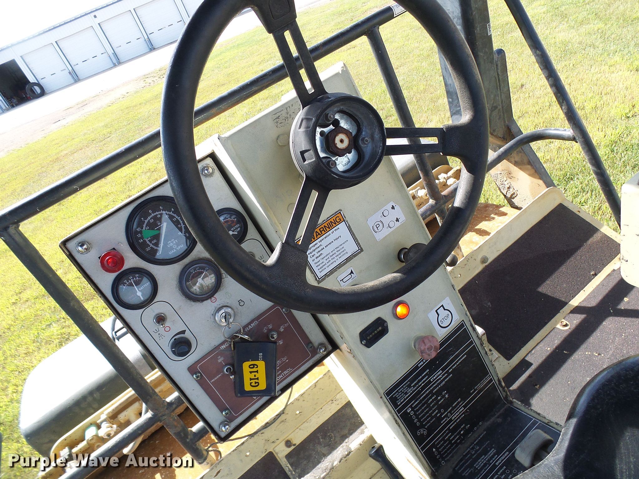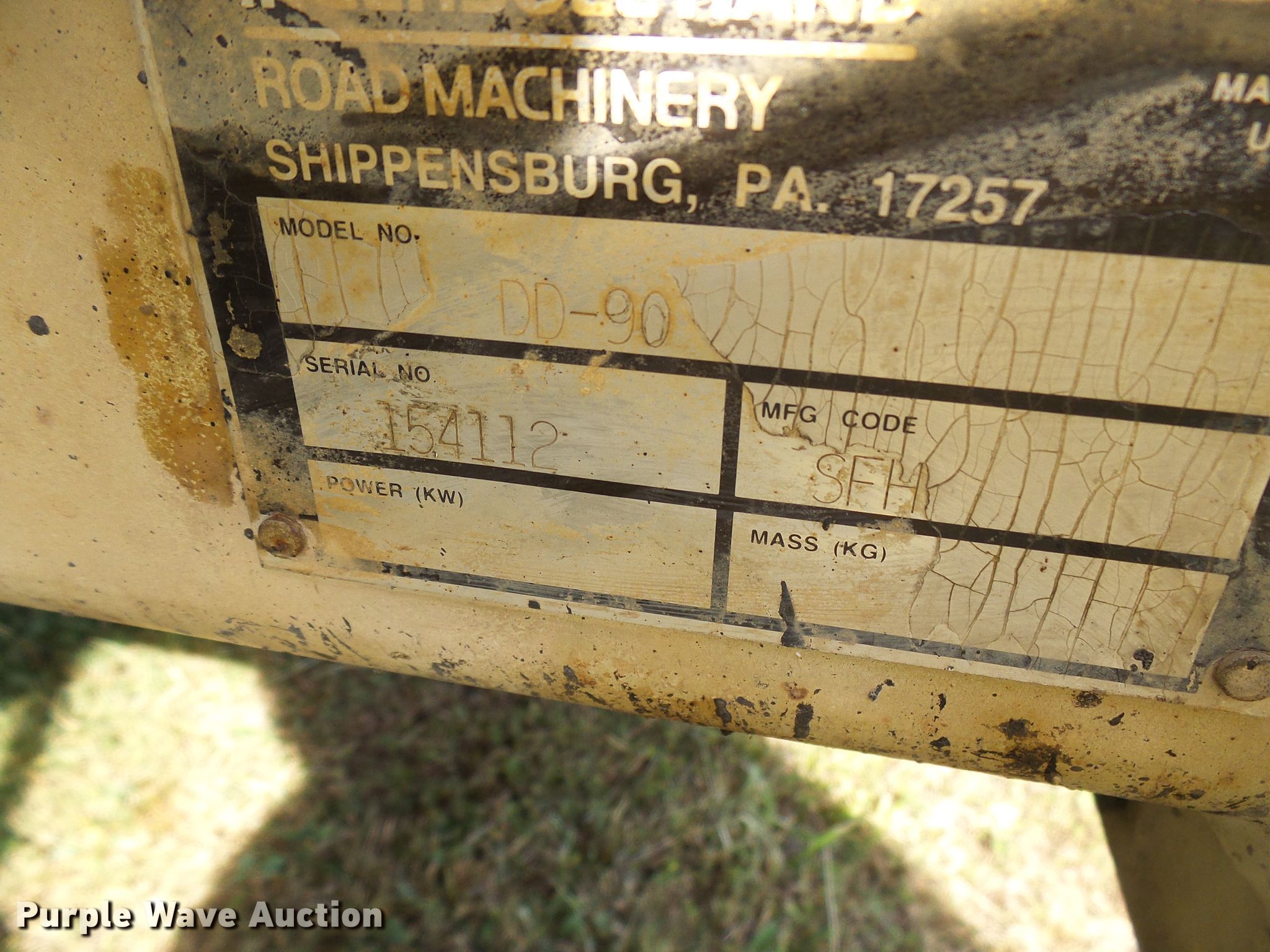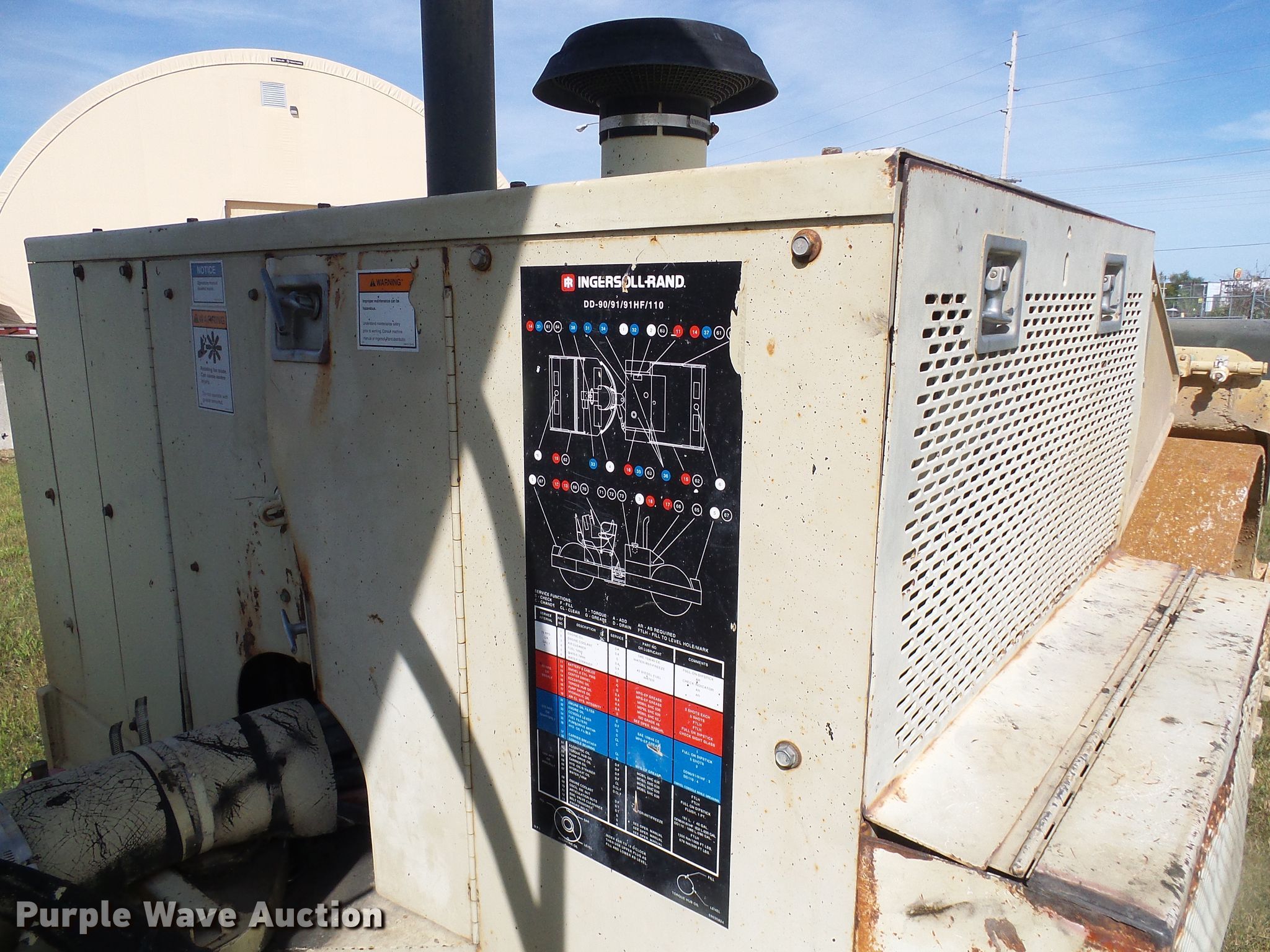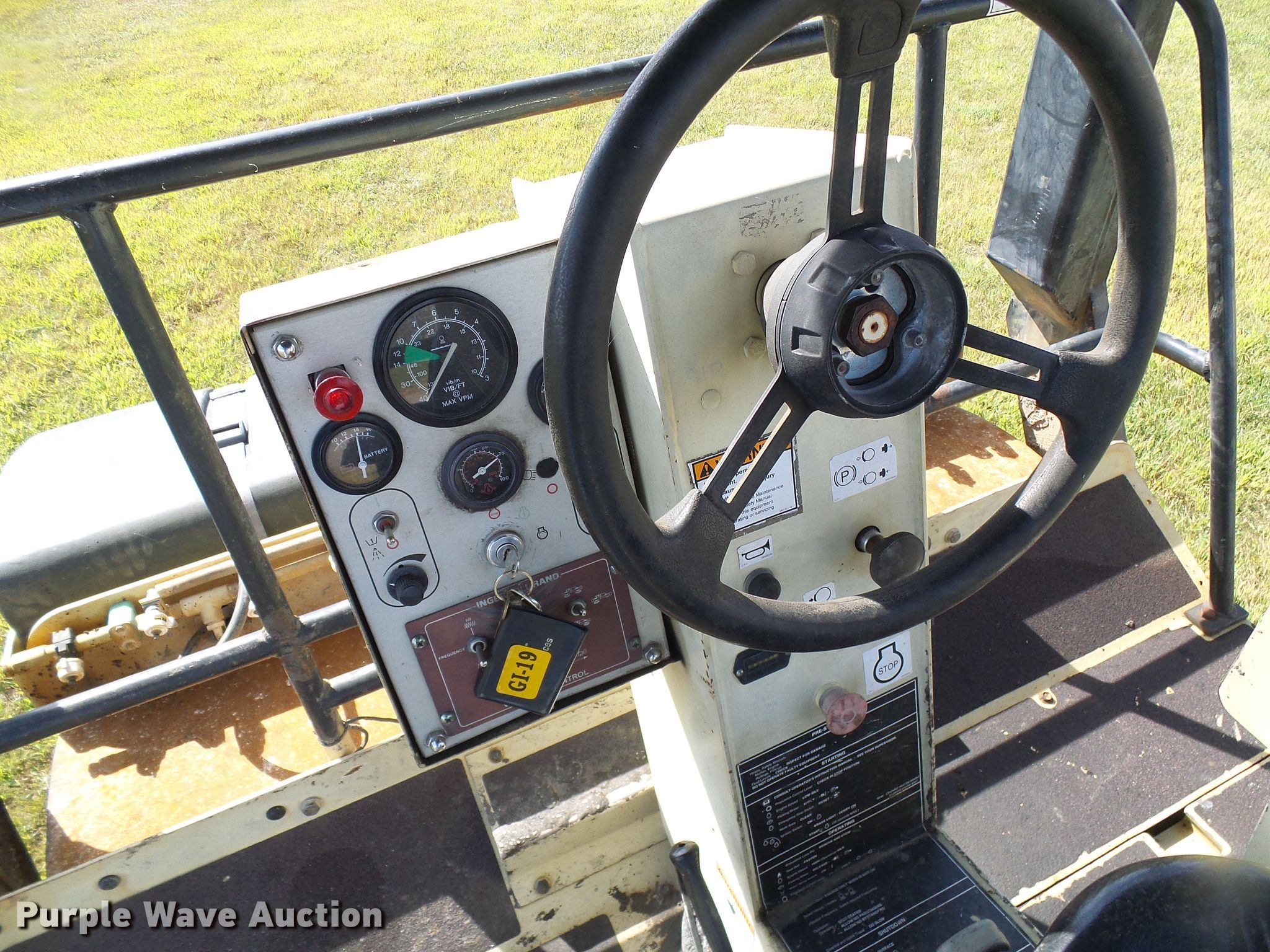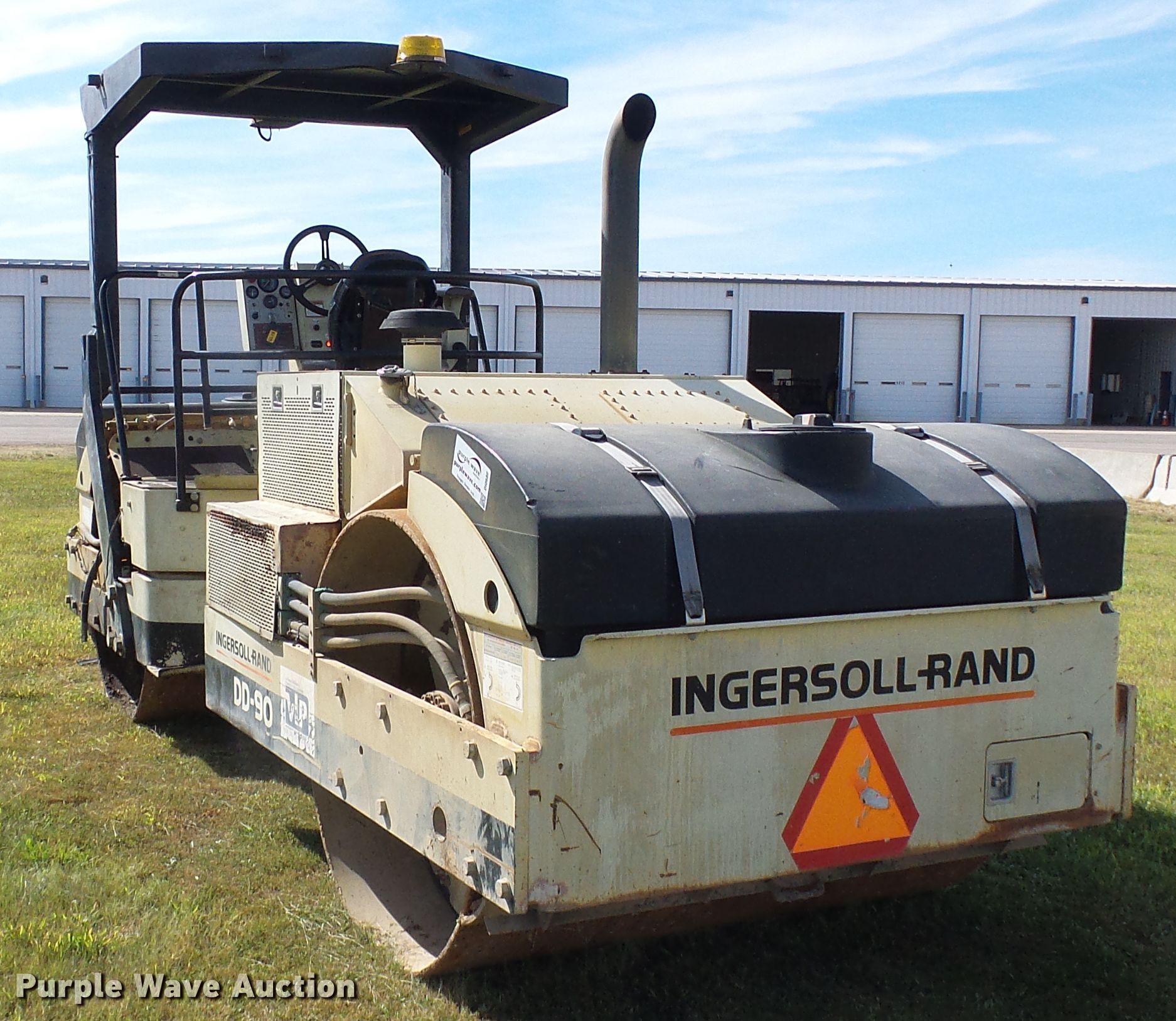 Purple Wave is selling a used Double Drum Roller Compactor in Missouri. This item is a Ingersoll Rand DD90 double drum vibratory roller with the following: 4,399 hours on meter, Four cylinder diesel engine, Hydrostatic transmission, OROPS, Double vibratory system, 66"W x 48" diameter smooth drums, Front and rear drum scrapers, Front and rear water spray applicators, Hydraulic lines unattached in front, Hydraulic issues, Unit drive on front missing, Serial 154112, MODOT ID G8751