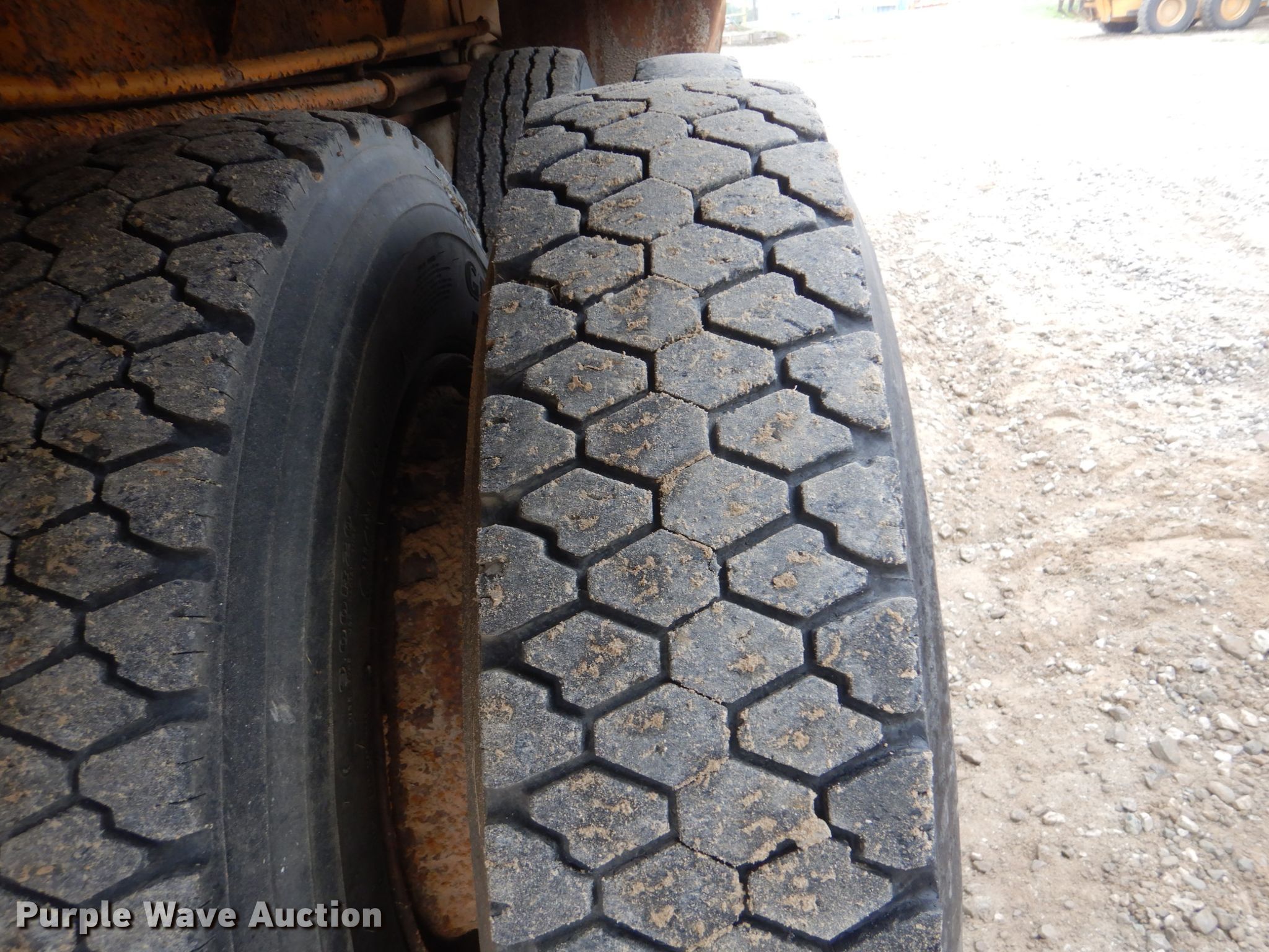 Purple Wave is selling a used Construction Dump Truck in Oklahoma. This item is a 1986 International S1900 dump truck with the following: 341,526 miles on odometer, International DT466 7.6L L6 diesel engine, Serial 69115501, Seven speed manual transmission, Tandem axle, AC and heat, Front mounted PTO, 14'L x 96"W steel dump bed, 49" side height, Single ram hoist, Good Roads spreader, Spring suspension, Air brakes, Goodyear 10.00R20 front tires, Goodyear 9.00R20 rear tires, Cracked windshield