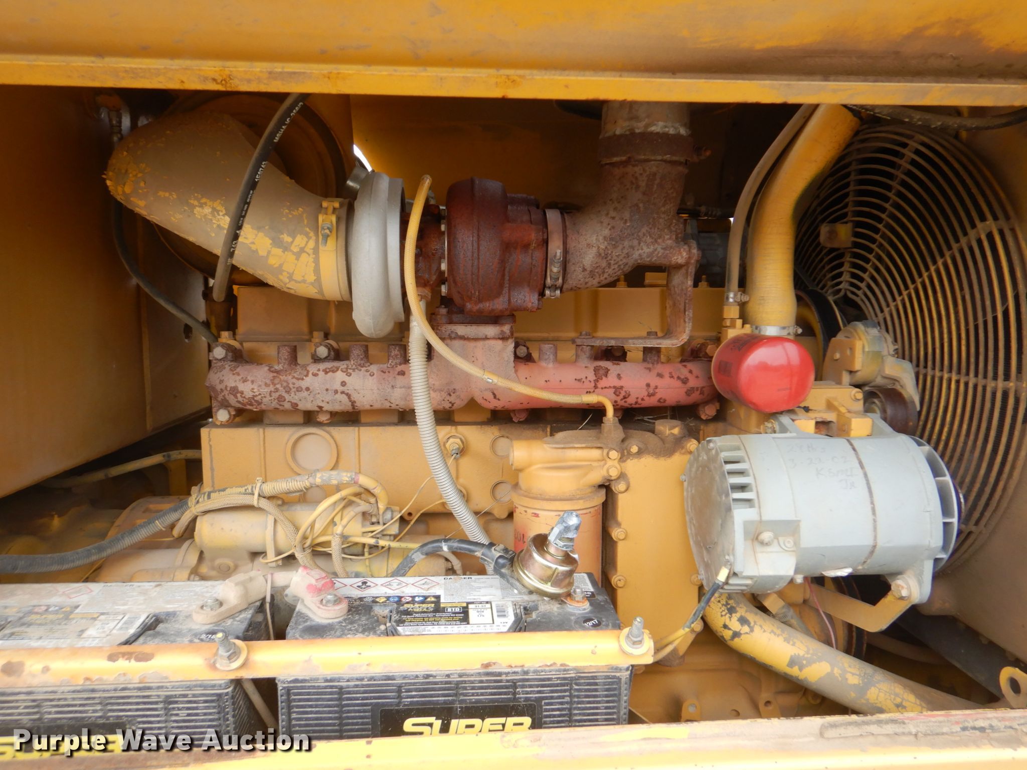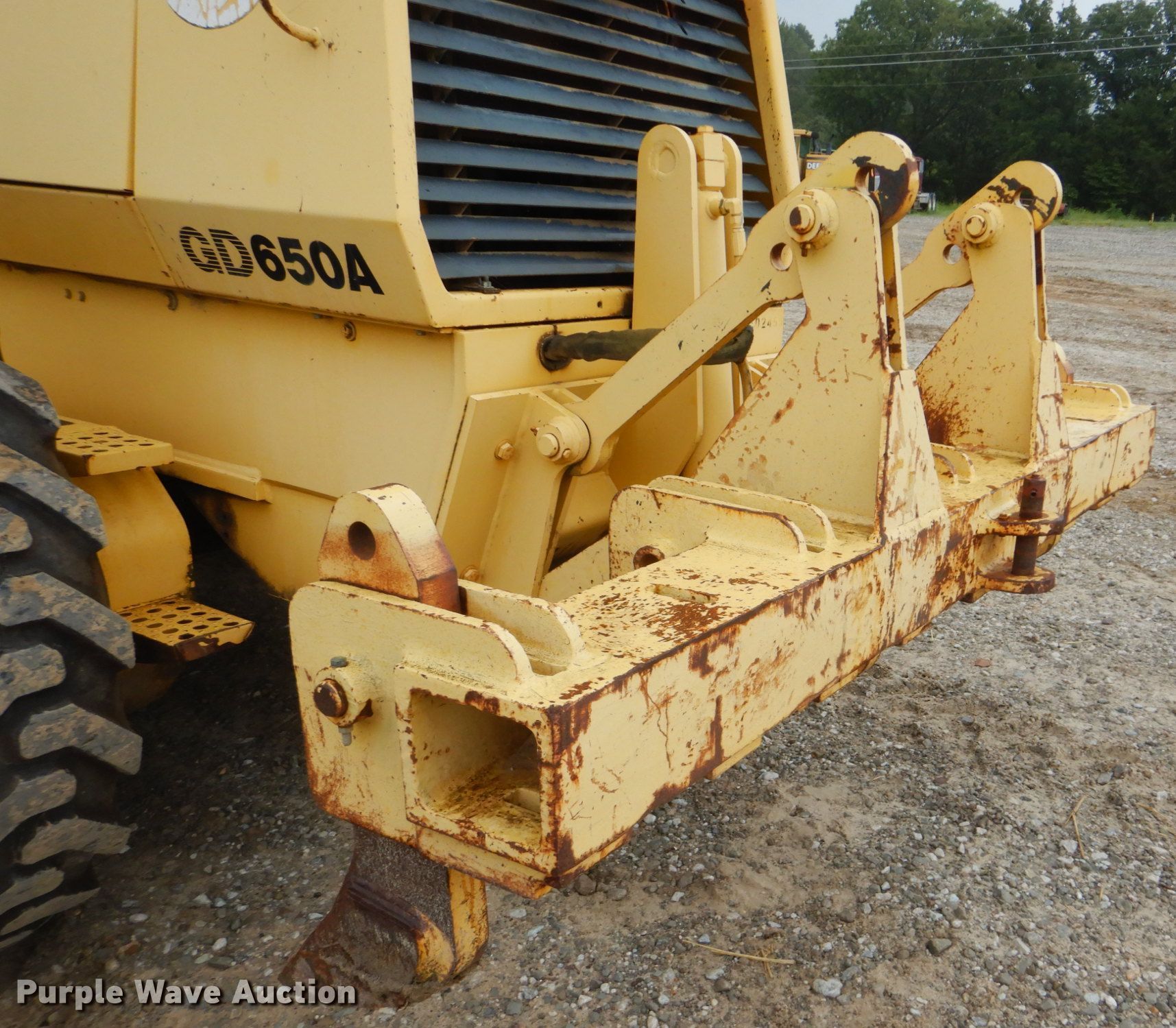 Purple Wave is selling a used Motor Grader in Oklahoma. This item is a 2002 Komatsu GD650A motor grader with the following: 15,832 hours on meter, Komatsu 8.3L six cylinder diesel engine, Powershift transmission, 6F-3R gears, Enclosed cab, AM/FM, Nine hydraulic control valves, 14'W moldboard, Tip control, Side shift, Front push block, Rear ripper, (3) shanks, Otani 14.00-24 tires, Serial 210871