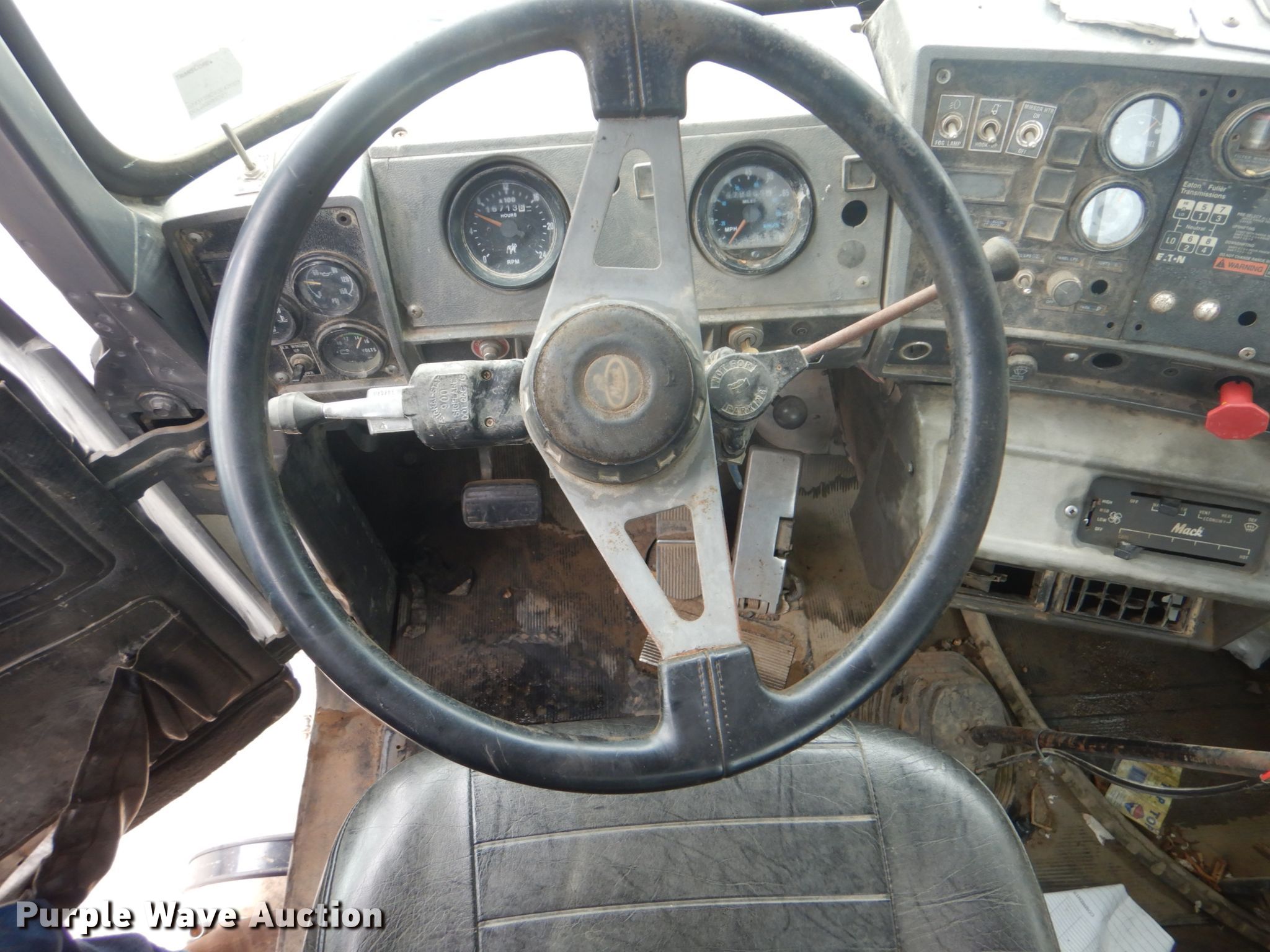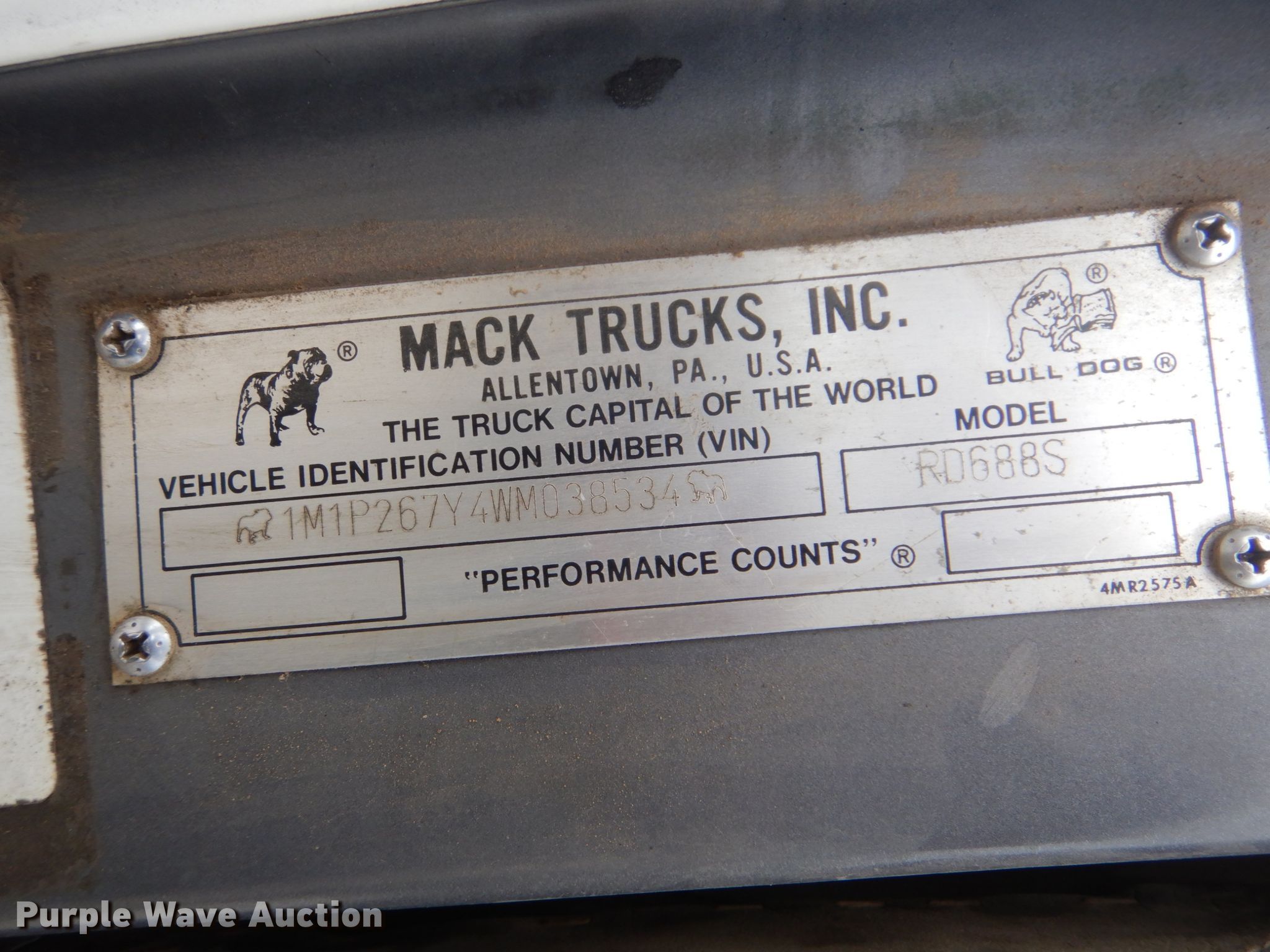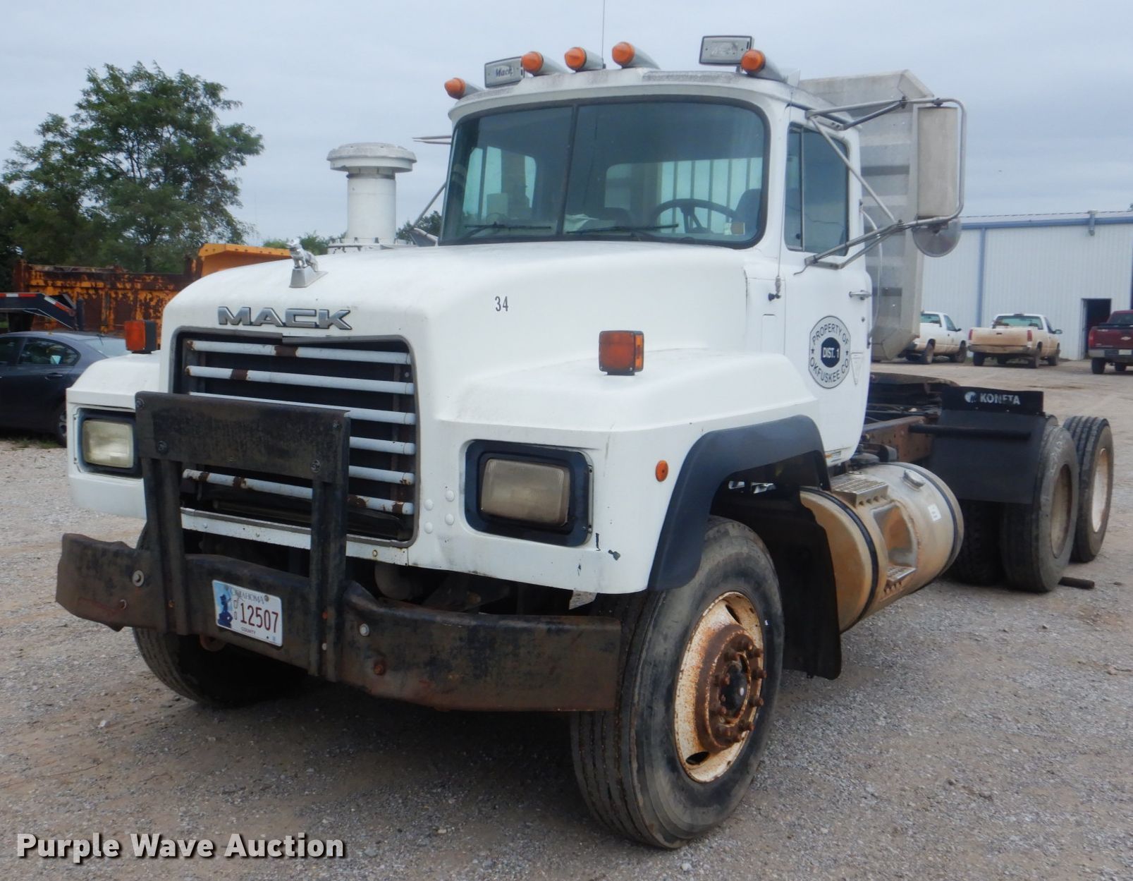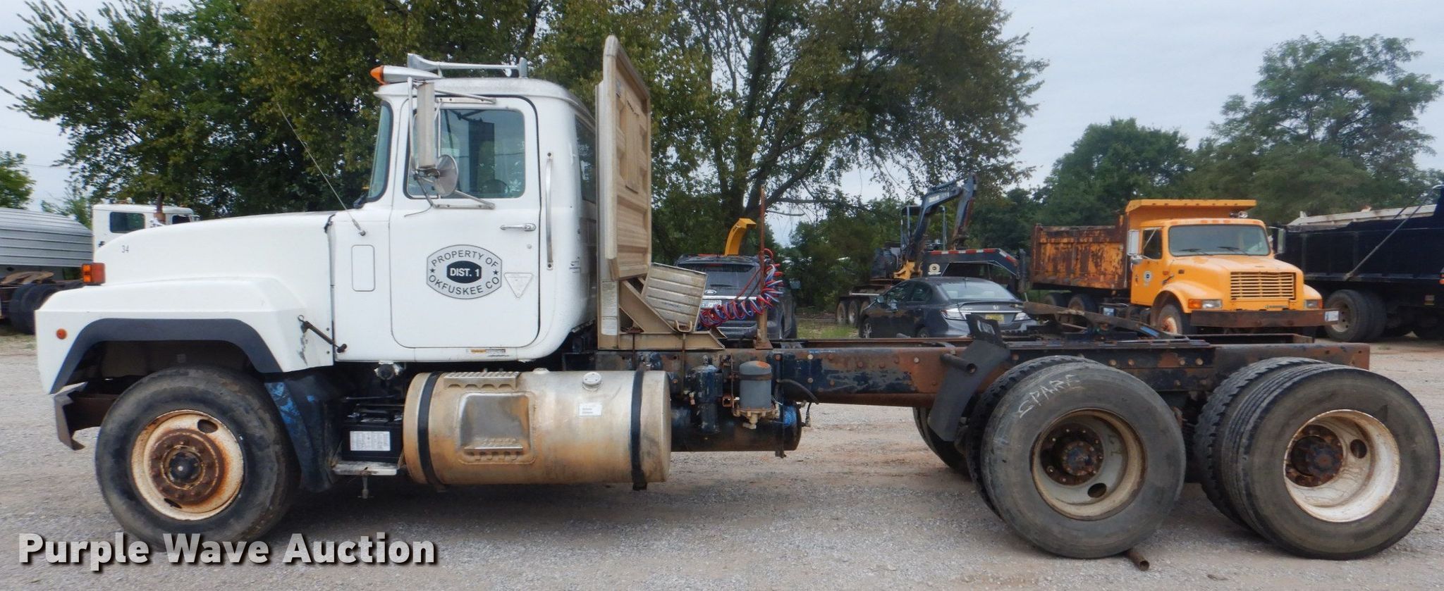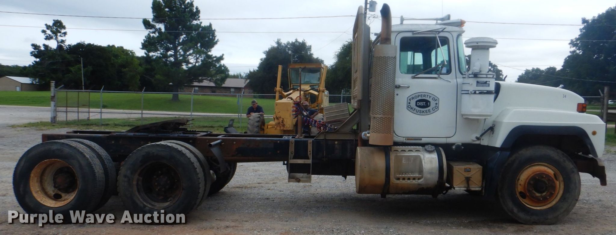 Purple Wave is selling a used Truck Chassis in Oklahoma. This item is a 1998 Mack RD6883 truck cab and chassis with the following: 478,884 miles on odometer, 16,713 hours on meter, Mack 12.0L L6 diesel engine, 12 speed manual transmission, Single axle, AC and heat, Steel deck plate, Dual fuel tanks, Air operated fifth wheel plate, Spring suspension, Air brakes, 11R22.5 tires, GVWR 33,000 lbs, Rear end issues