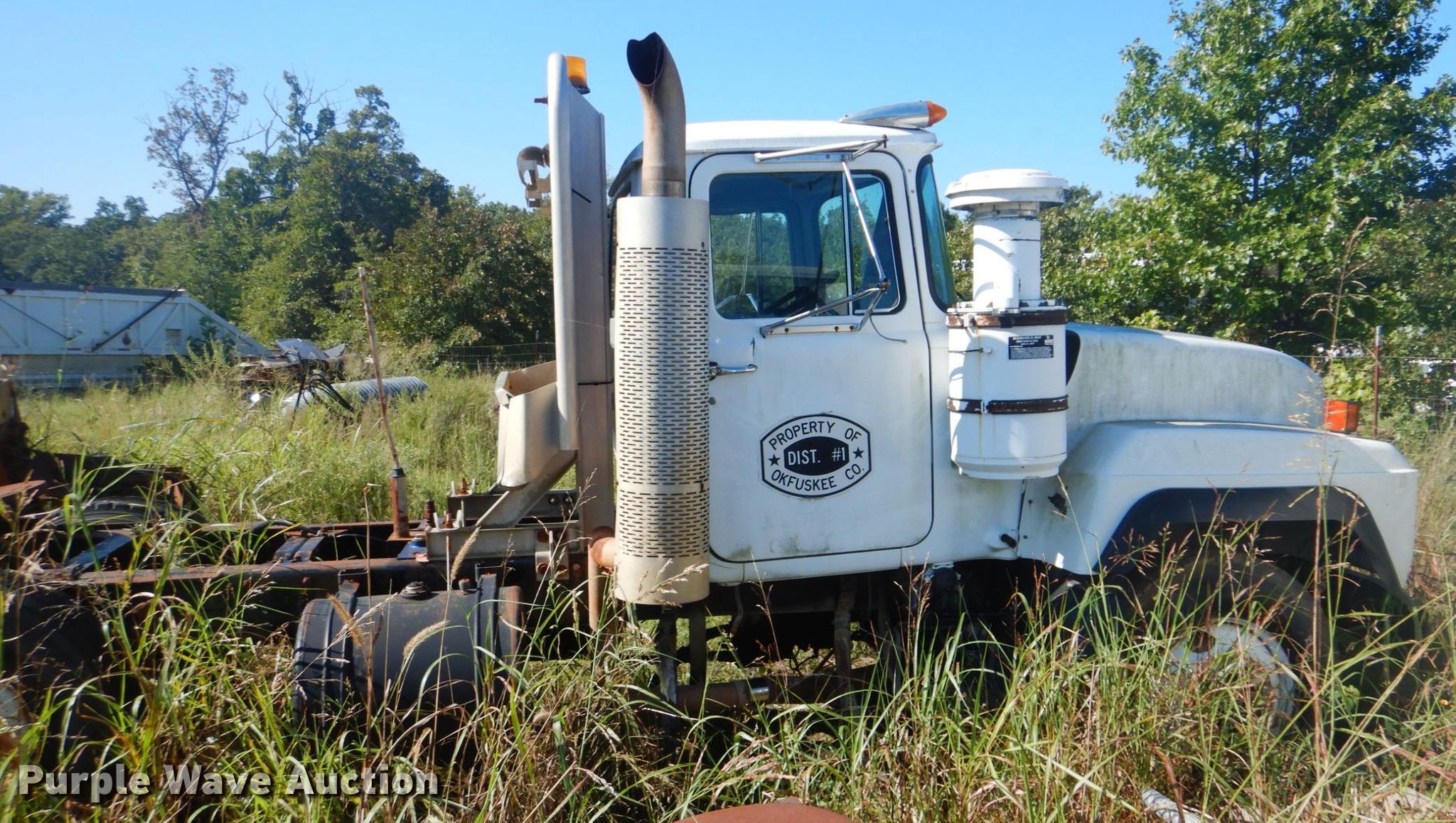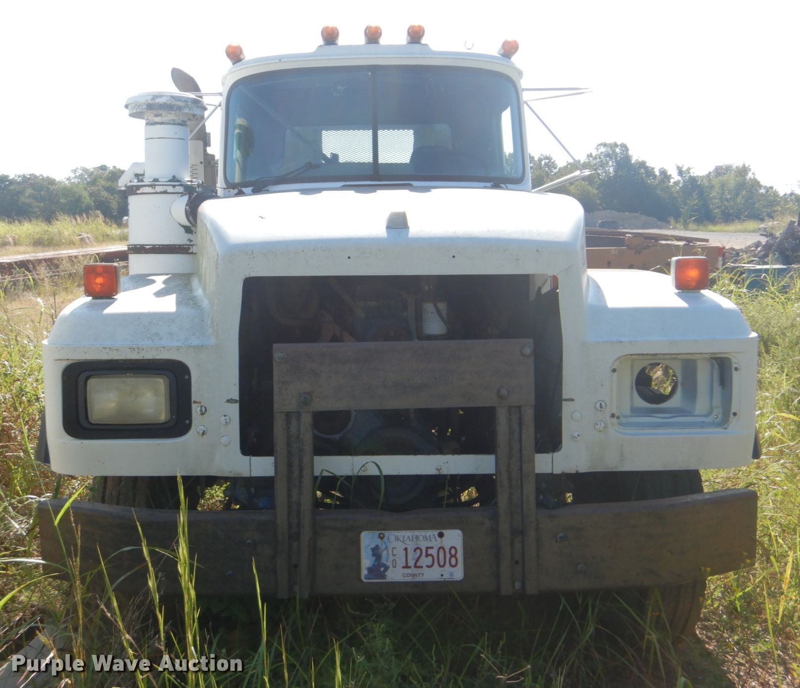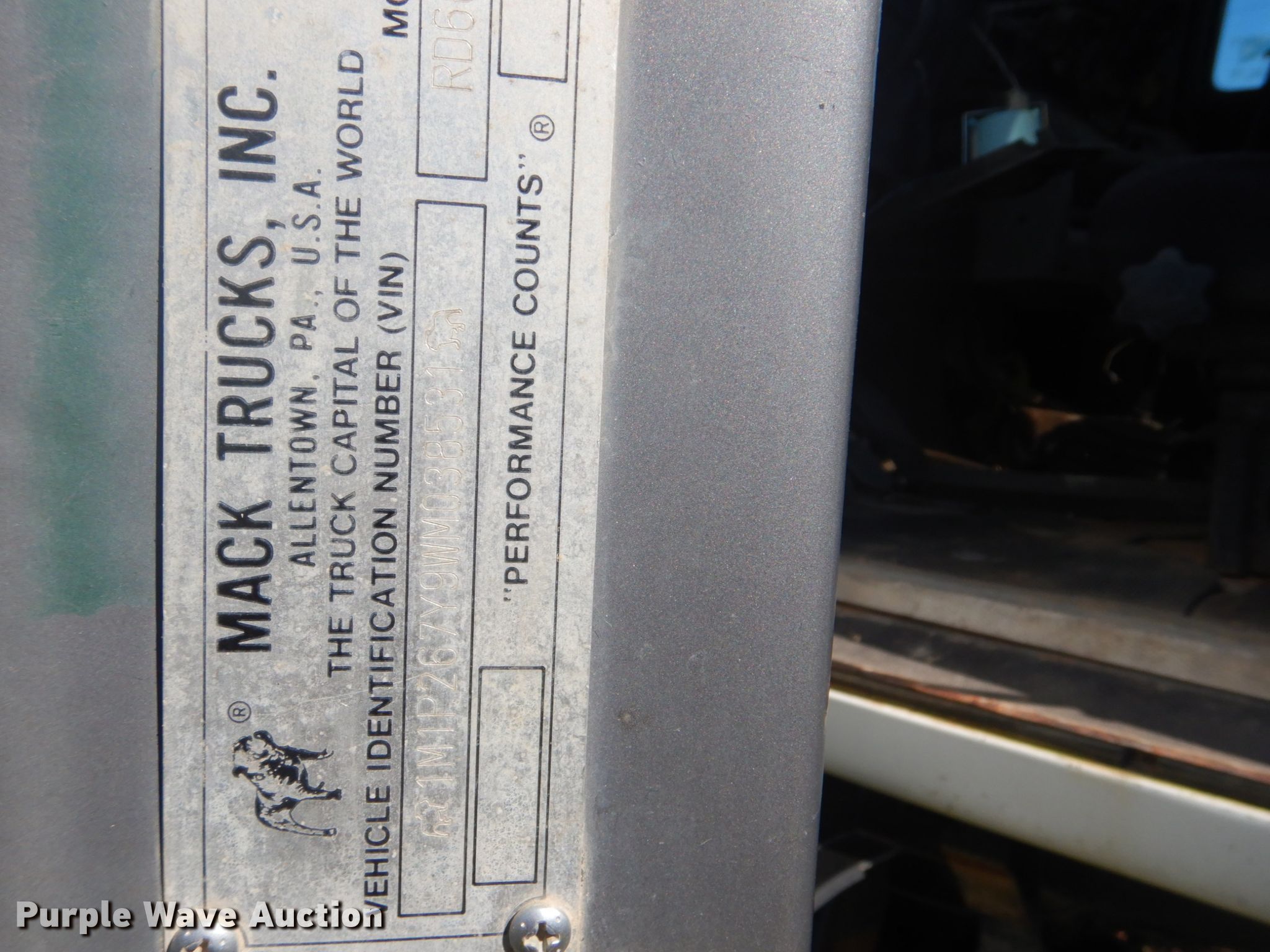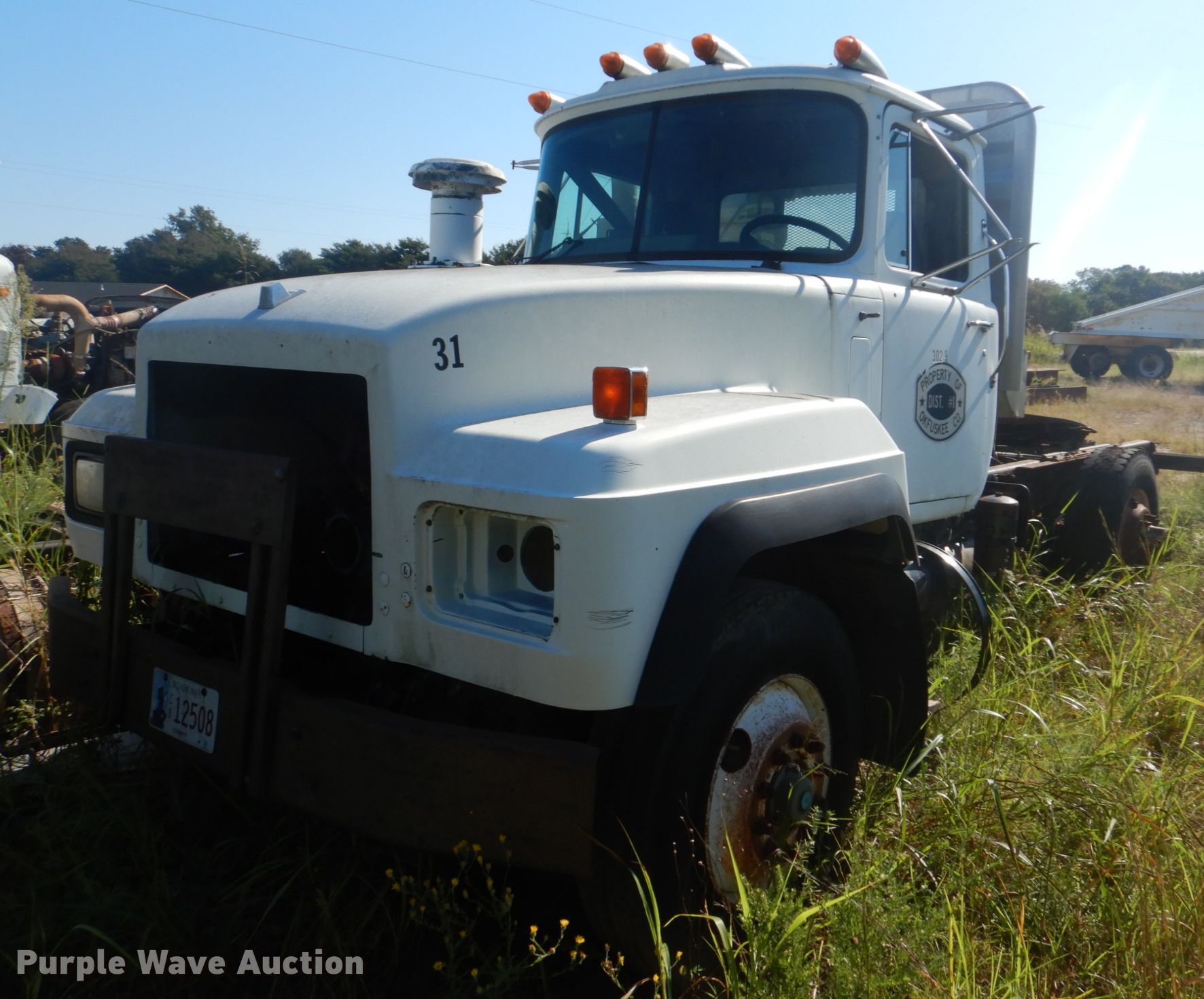 Purple Wave is selling a used Truck Chassis in Oklahoma. This item is a 1998 Mack RD semi truck with the following: Mack 12.0L L6 diesel engine, 12 speed manual transmission, Single axle, Steel deck plate, Single fuel tank, Air operated fifth wheel plate, Spring suspension, Air brakes, 11R22.5 tires, Non-operational vehicle, Engine parts missing, Portions of dash missing, Non-operational parts in cab