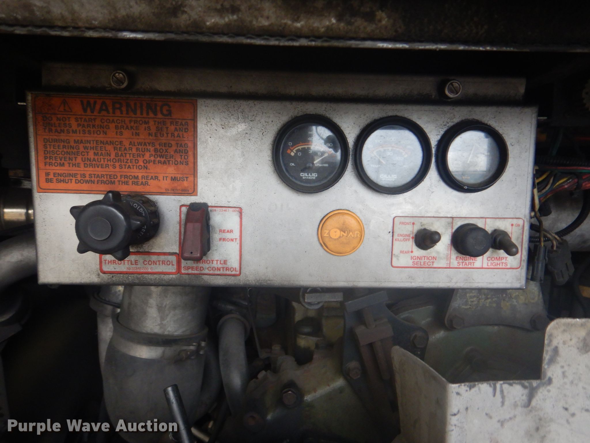 Purple Wave is selling a used Bus in Arkansas. This item is a 1997 Gillig C20D102N4 coach bus with the following: 28,063 miles on odometer, 1,575 hours on meter, Detroit Diesel Series 50 8.5L four cylinder diesel engine, Allison automatic transmission, Tandem axle, AC and heat, Electric passenger sliding door, 44 passenger capacity, Bike rack, Air suspension, Air brakes, Goodyear 12.R22.5 tires, GVWR 17,963 lbs, Rear brakes need to be replaced