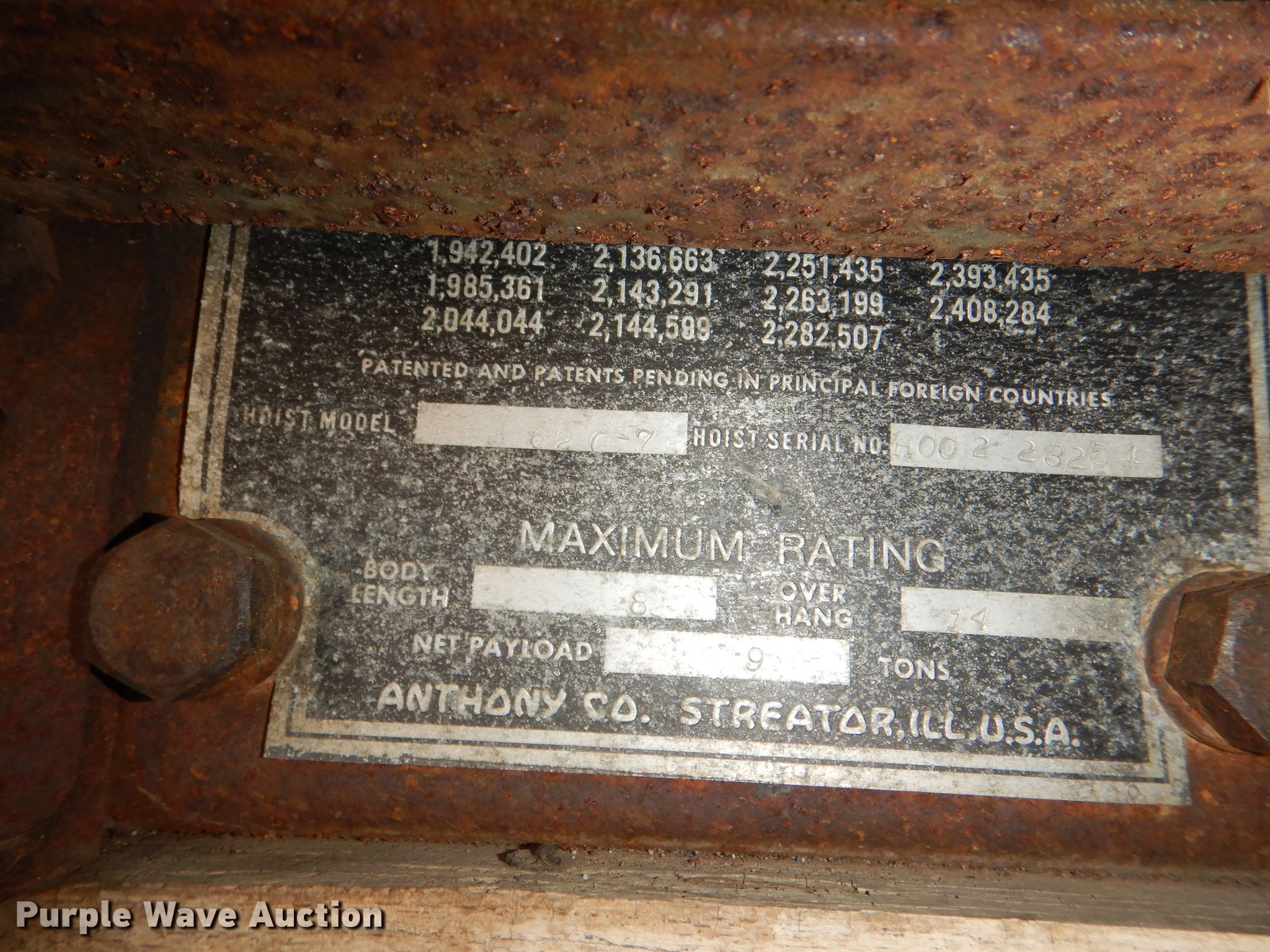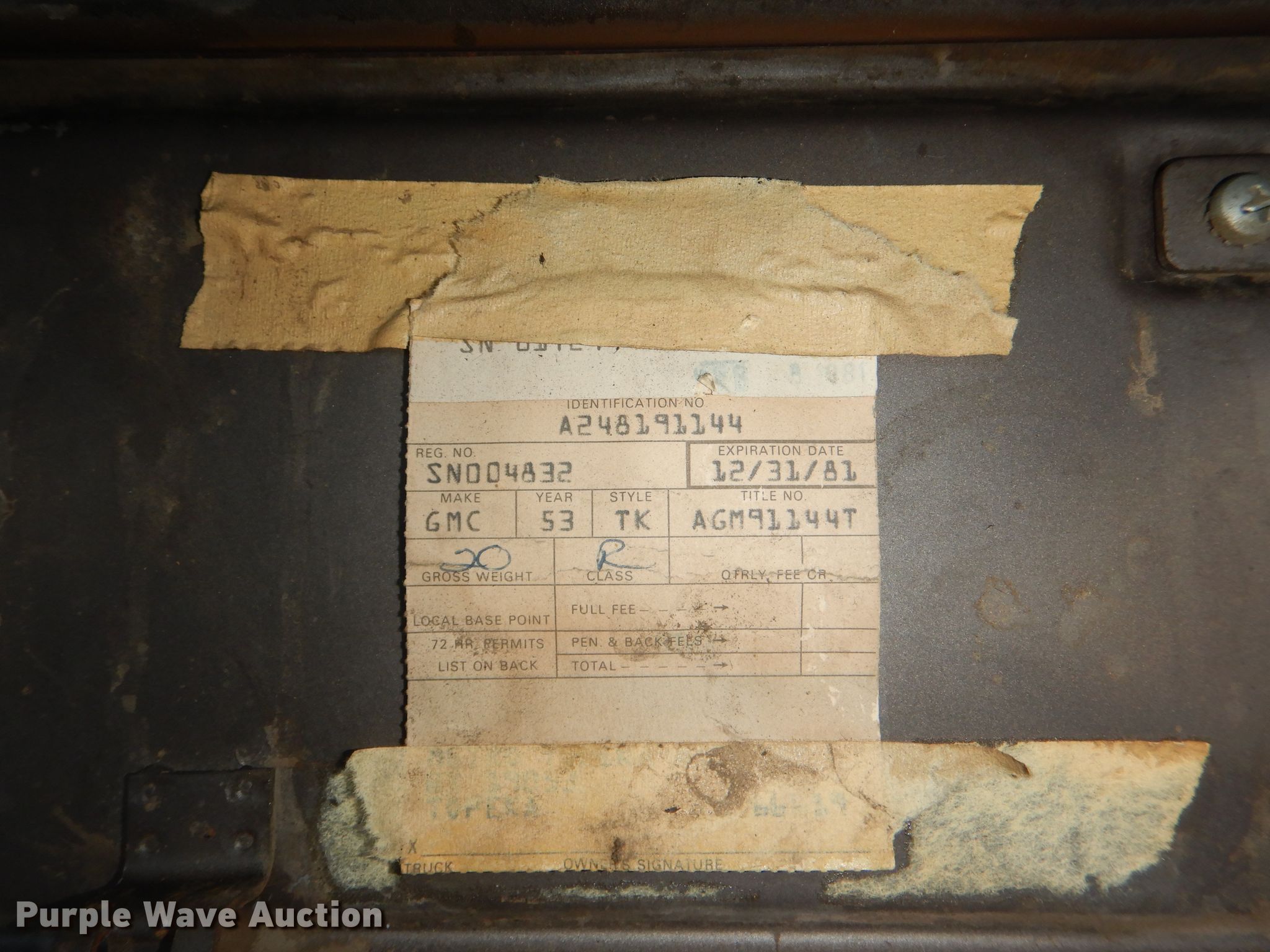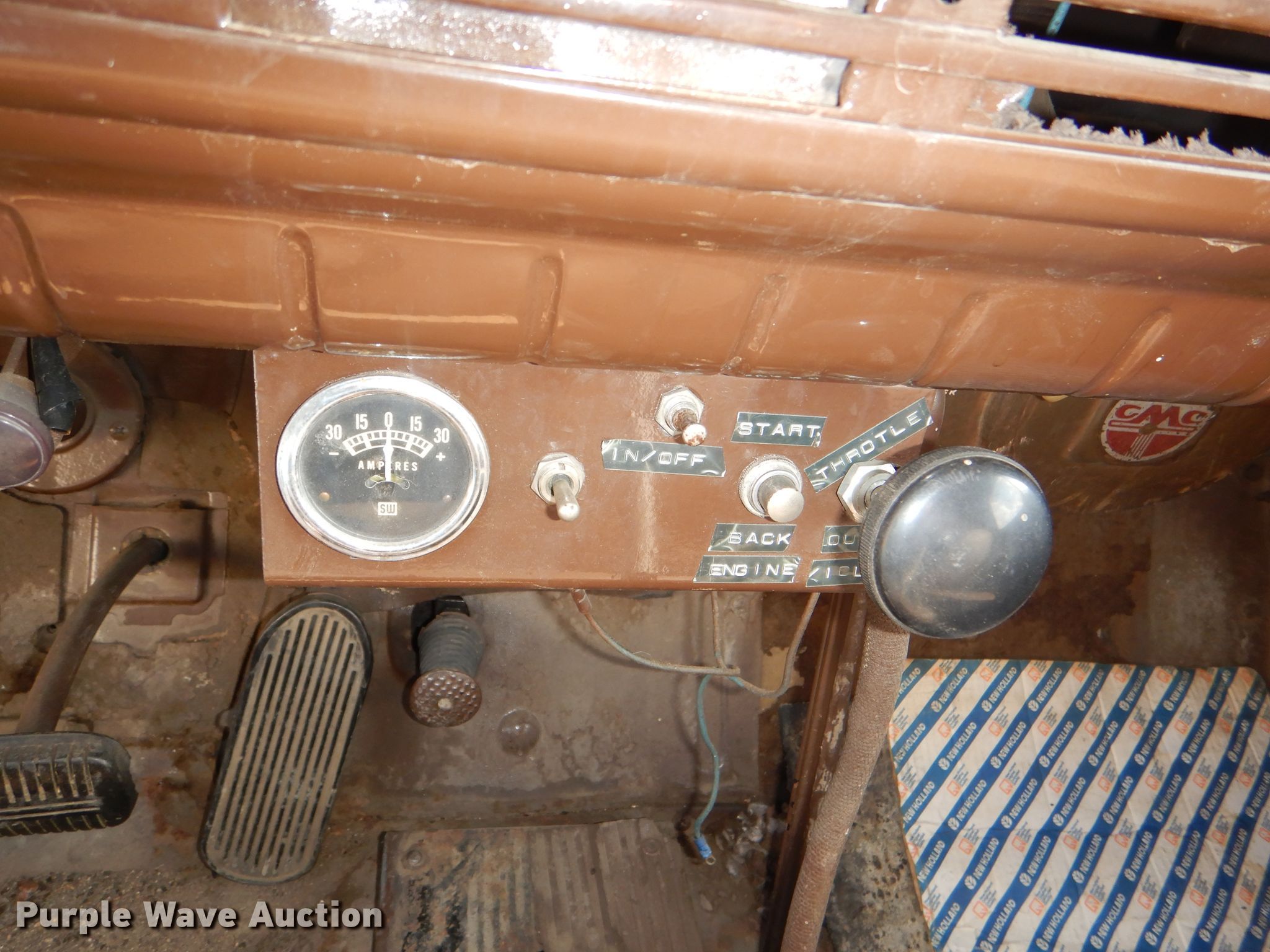 Purple Wave is selling a used Construction Dump Truck in Kansas. This item is a 1953 GMC dump truck with the following: 16,943 miles on odometer, Four cylinder gas engine, Five speed manual transmission, Single axle, Heat, Anthony 620-7-D6 steel dump bed, 8'L x 90"W, 19" side height, Manual end gate, Highway 7-D spreader, Gas engine, 12V battery, Dead battery,, Spring suspension, Hydraulic brakes, 140" wheelbase, General 8.25-20 tires, Driver side window broken, Unit# 316