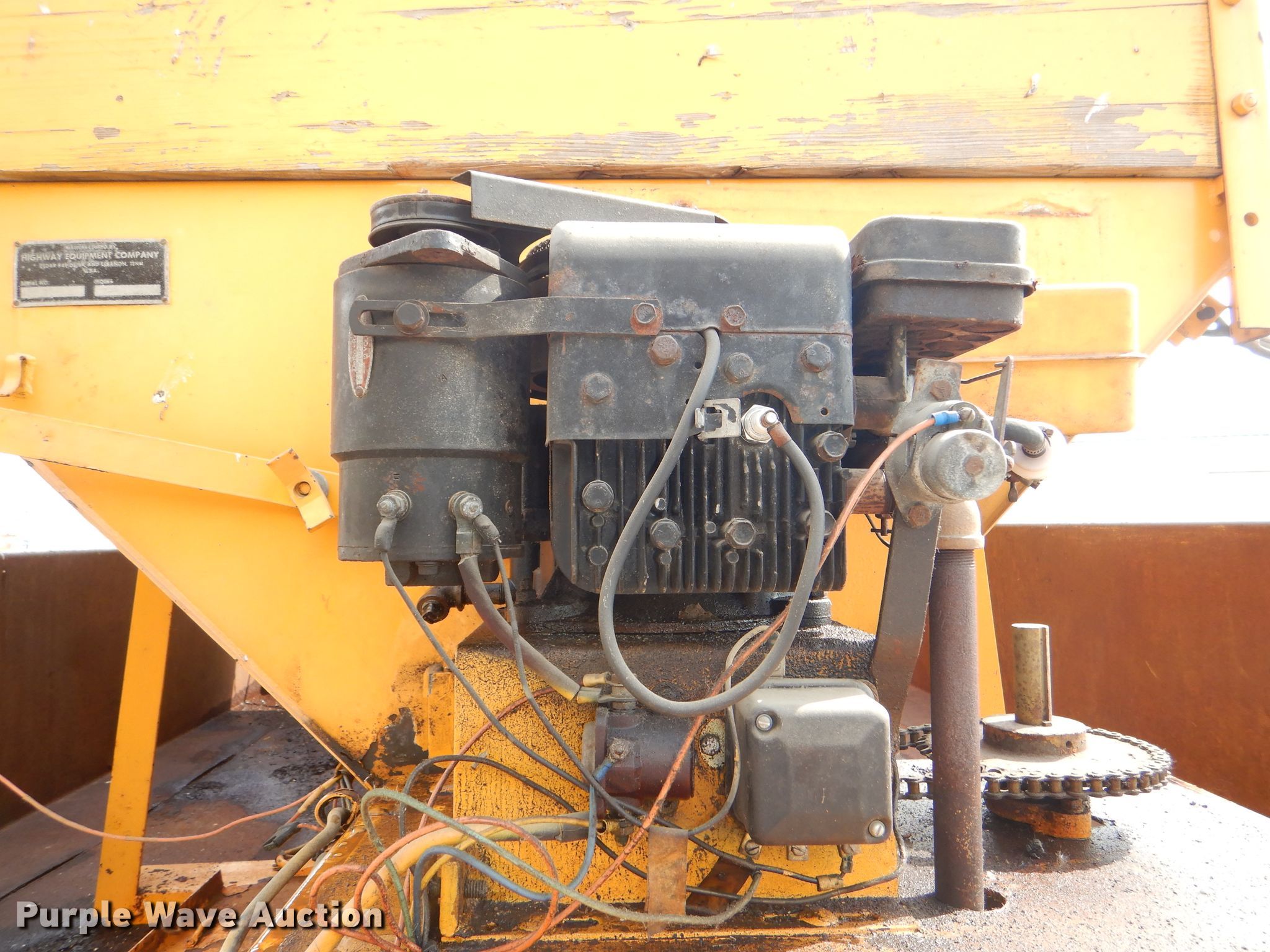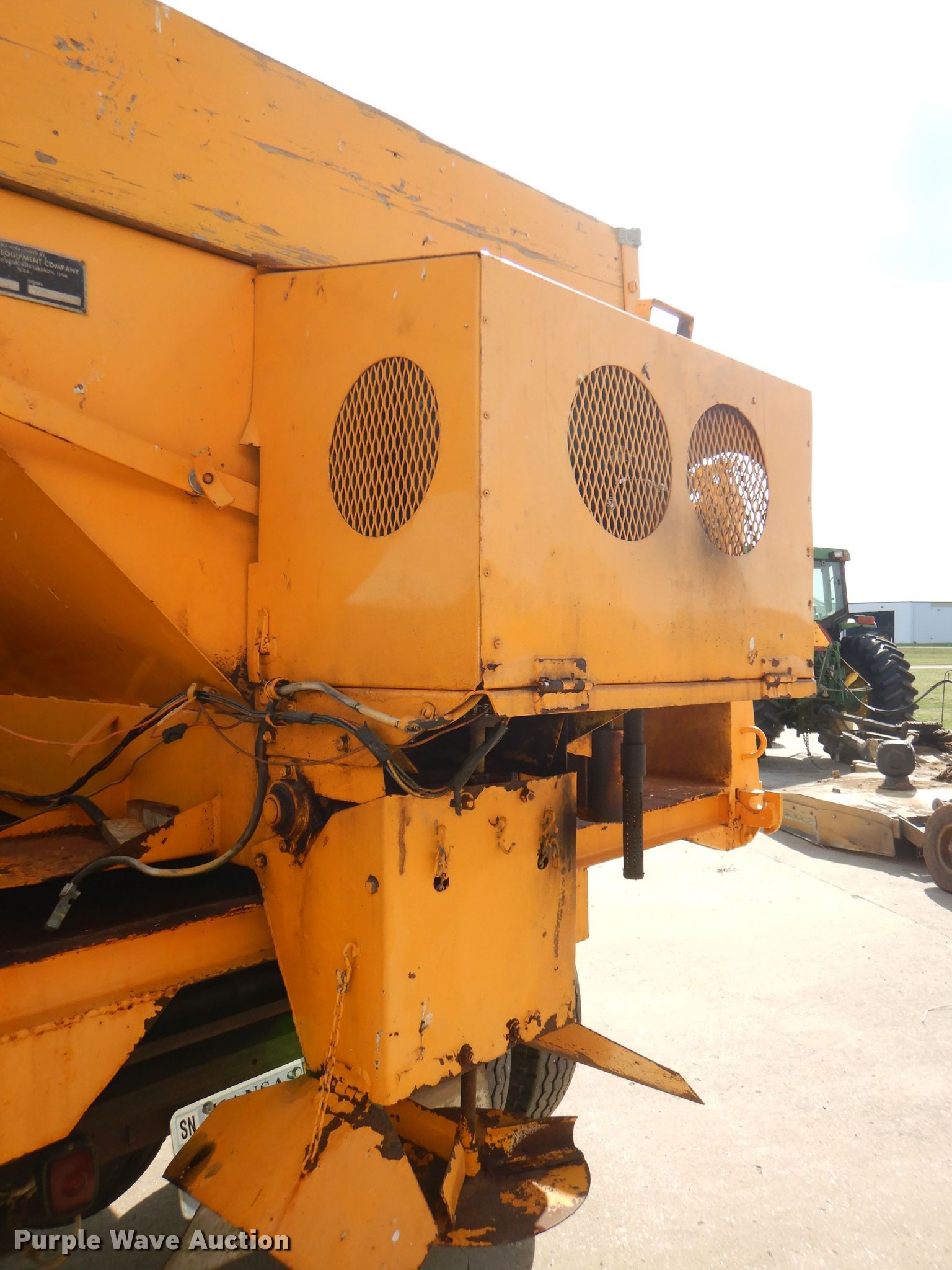 1953 GMC dump truck. 16,943 miles on odometer, Four cylinder gas engine, Five speed manual transmission, Single axle, Heat, Anthony 620-7-D6 steel dump bed 8'L x 90"W, 19" side height, Manual end gate, Highway 7-D spreader Gas engine, 12V battery Dead battery, Spring suspension, Hydraulic brakes, 140" wheelbase, General 8.25-20 tires, Driver side window broken, Unit# 316. Kansas title. A248191144. Topeka, KS 66616
