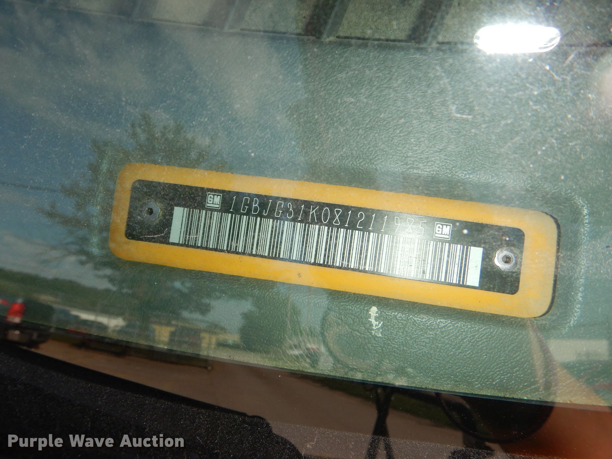 2008 Chevrolet Express 3500 school bus. 122,456 miles on odometer, 6.0L V8 OHV 16V gas engine, Automatic transmission, Single axle, AC and heat, Heated mirrors, Electric passenger sliding door, 19 passenger capacity, (8) child safety seats, Spring suspension, Hydraulic brakes, 160" wheelbase, Goodyear 225/75R16 tires, GVWR 12,300 lbs, Decals will be removed prior to auction, Check engine light on, Unit# 63. Kansas title. 1GBJG31K081211985. Manhattan, KS 66503