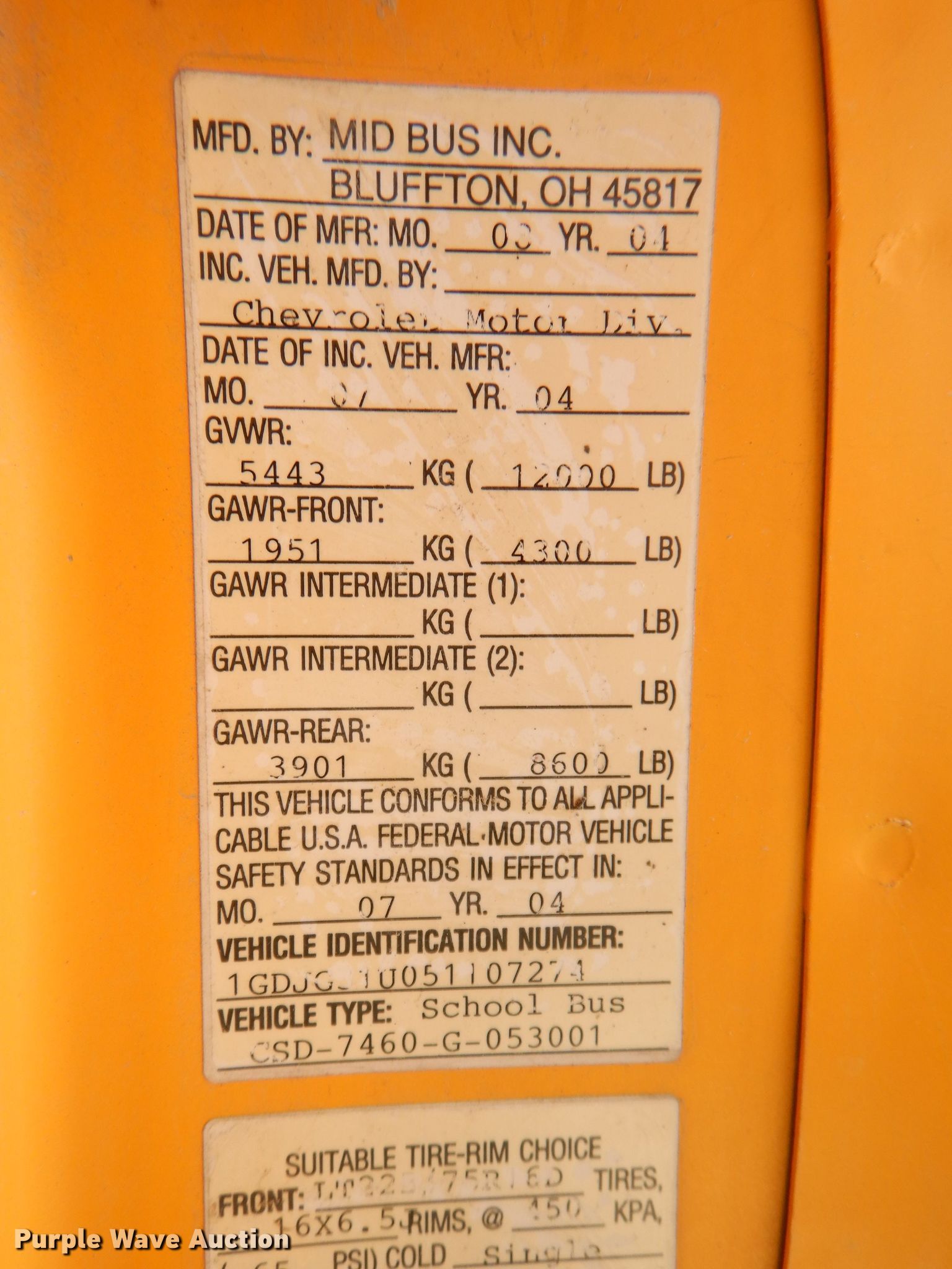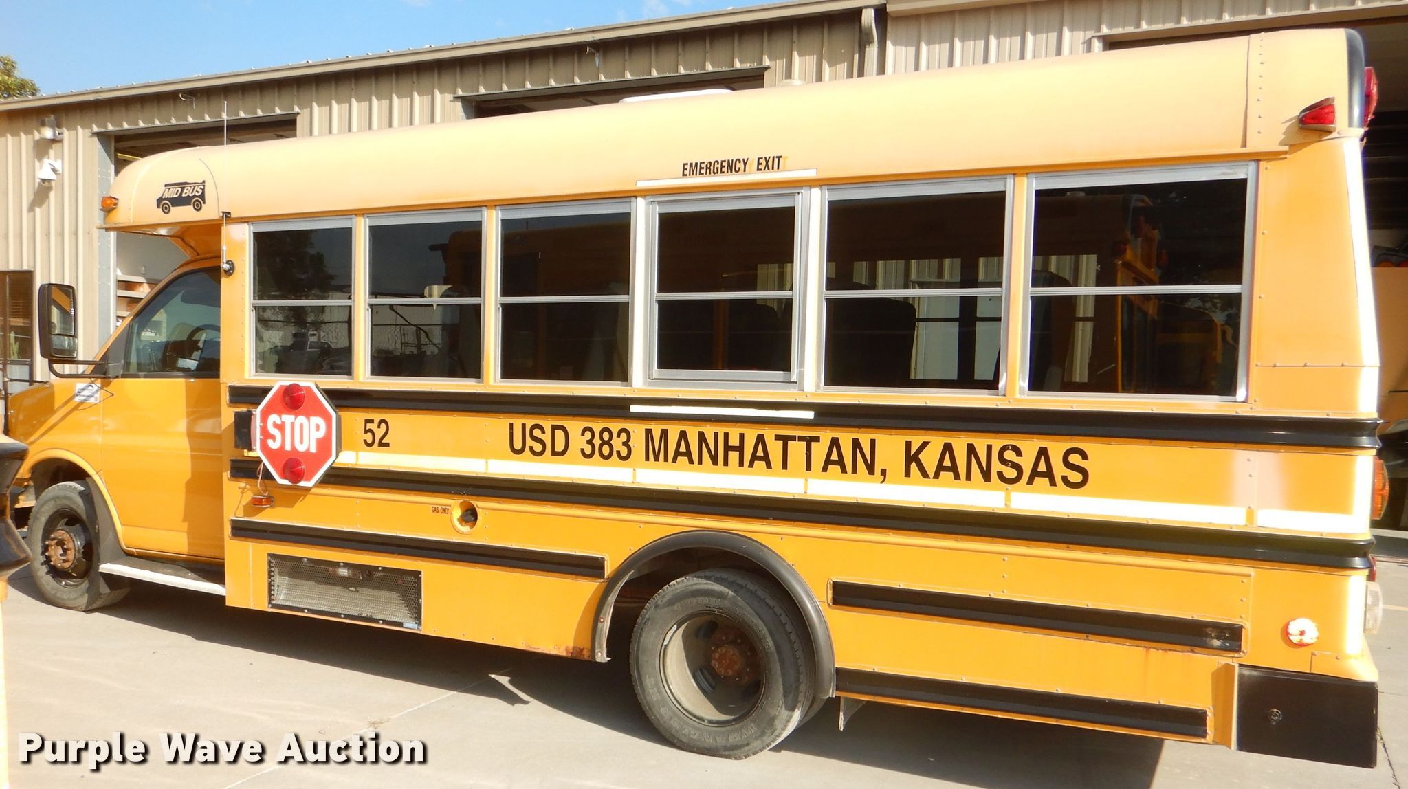 Purple Wave is selling a used Bus in Kansas. This item is a 2004 GMC Savana G3500 school bus with the following: 134,604 miles on odometer, 6.0L V8 OHV 16V gas engine, Automatic transmission, Single axle, AC and heat, Heated mirrors, 19 passenger capacity, Spring suspension, Hydraulic brakes, 160" wheelbase, Goodyear 225/75R16 tires, GVWR 12,000 lbs, Decals will be removed prior to auction, Unit# 52