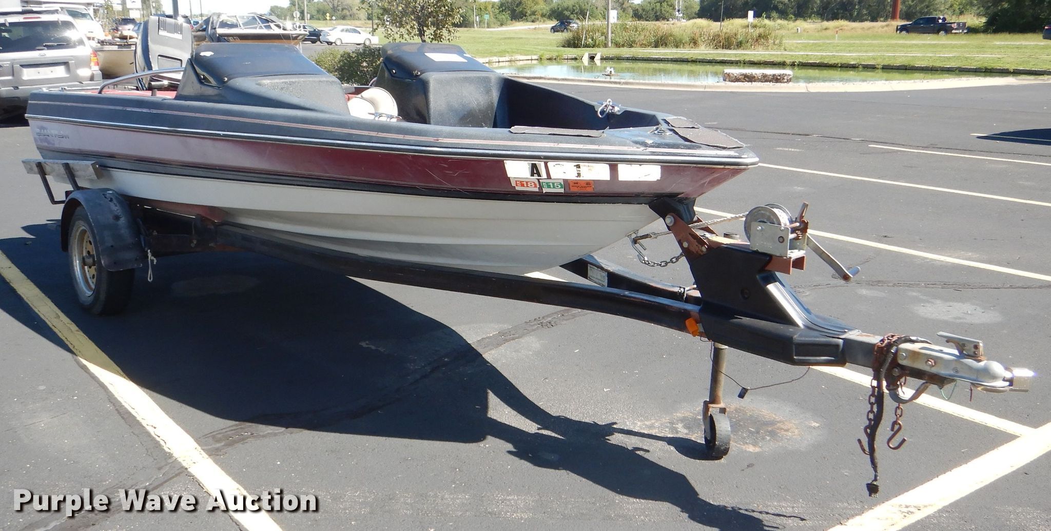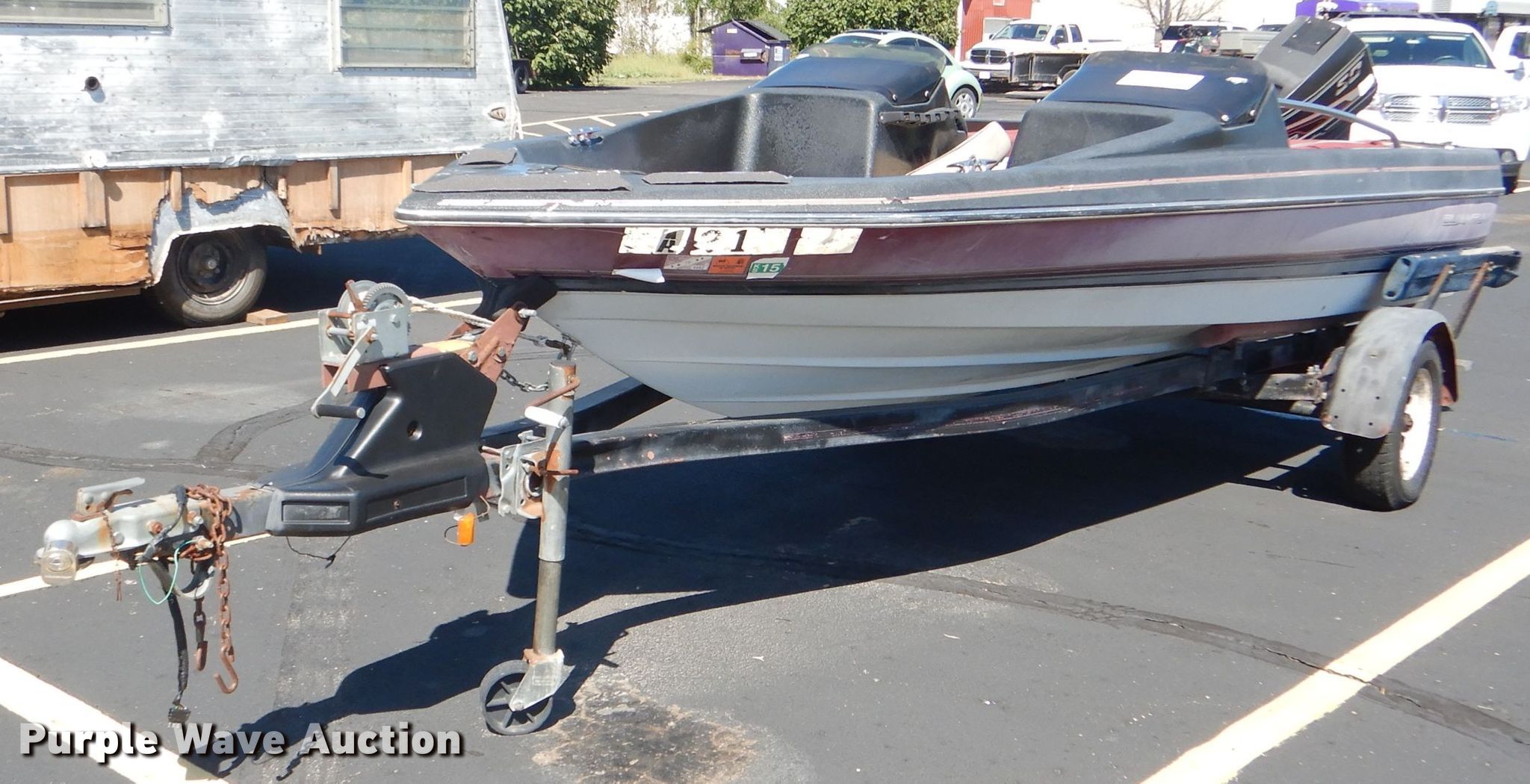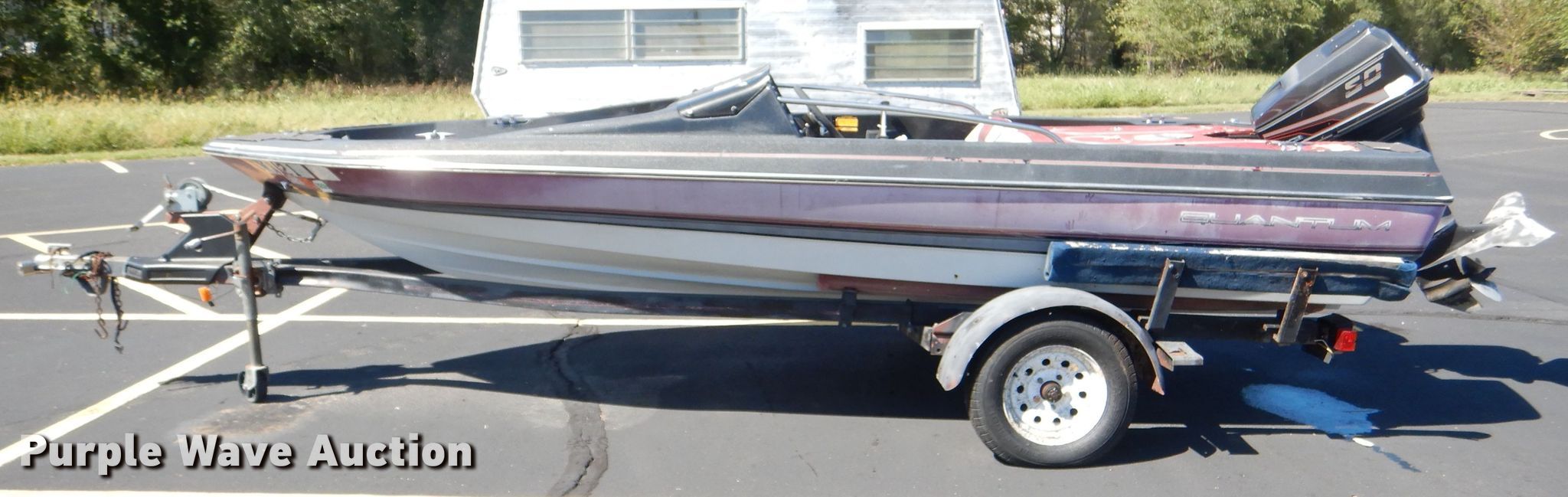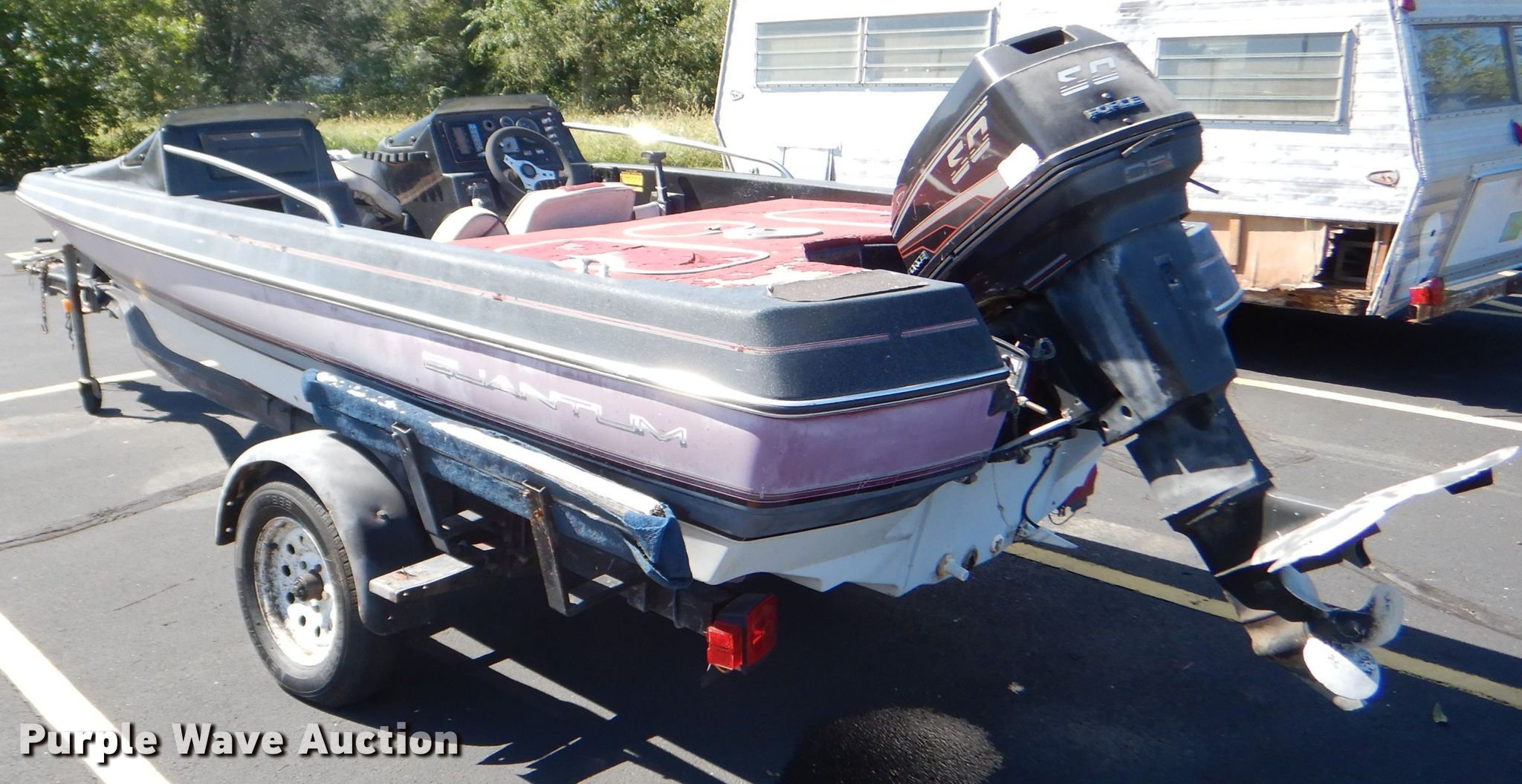 Purple Wave is selling a used Boat in Kansas. This item is a 1989 Bayliner Quantum boat with the following: 16'L, Force 5O outboard motor, Four person or 550 lbs capacity, Unknown operating condition, Hull ID USJB92PAA989, Escort trailer, 17'L, 2" ball hitch, 175/80D13 tires, Tires weathered
