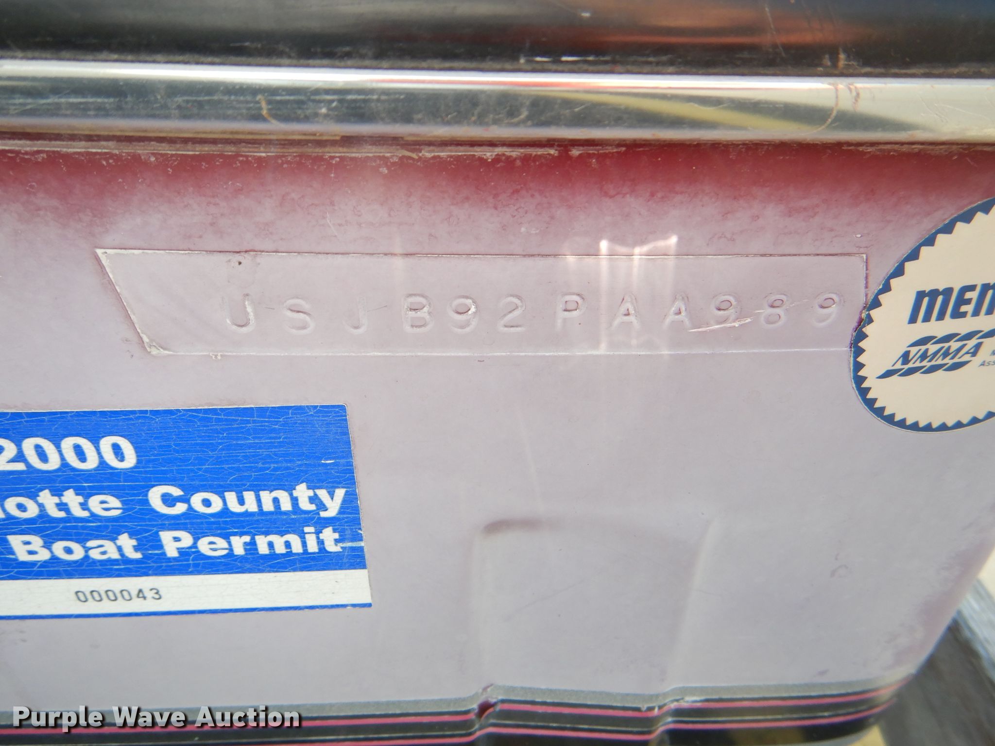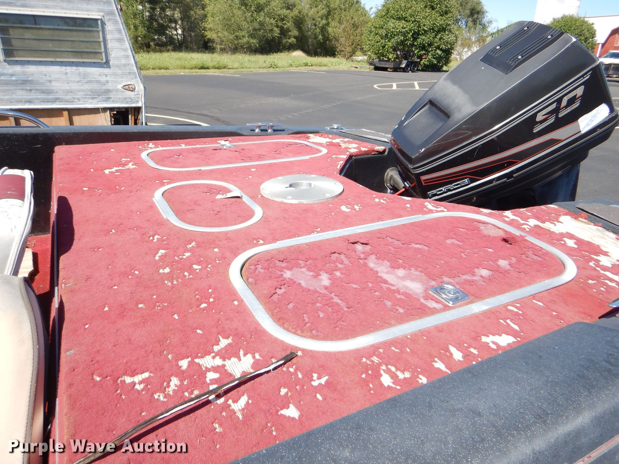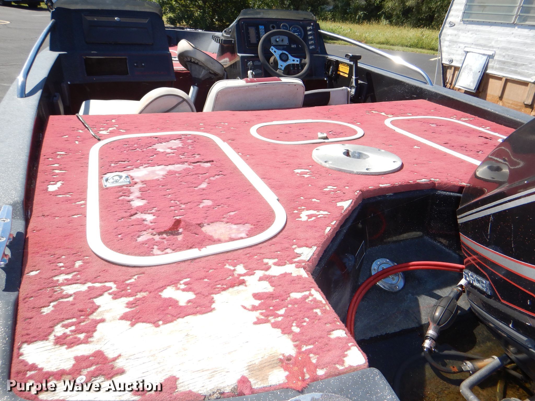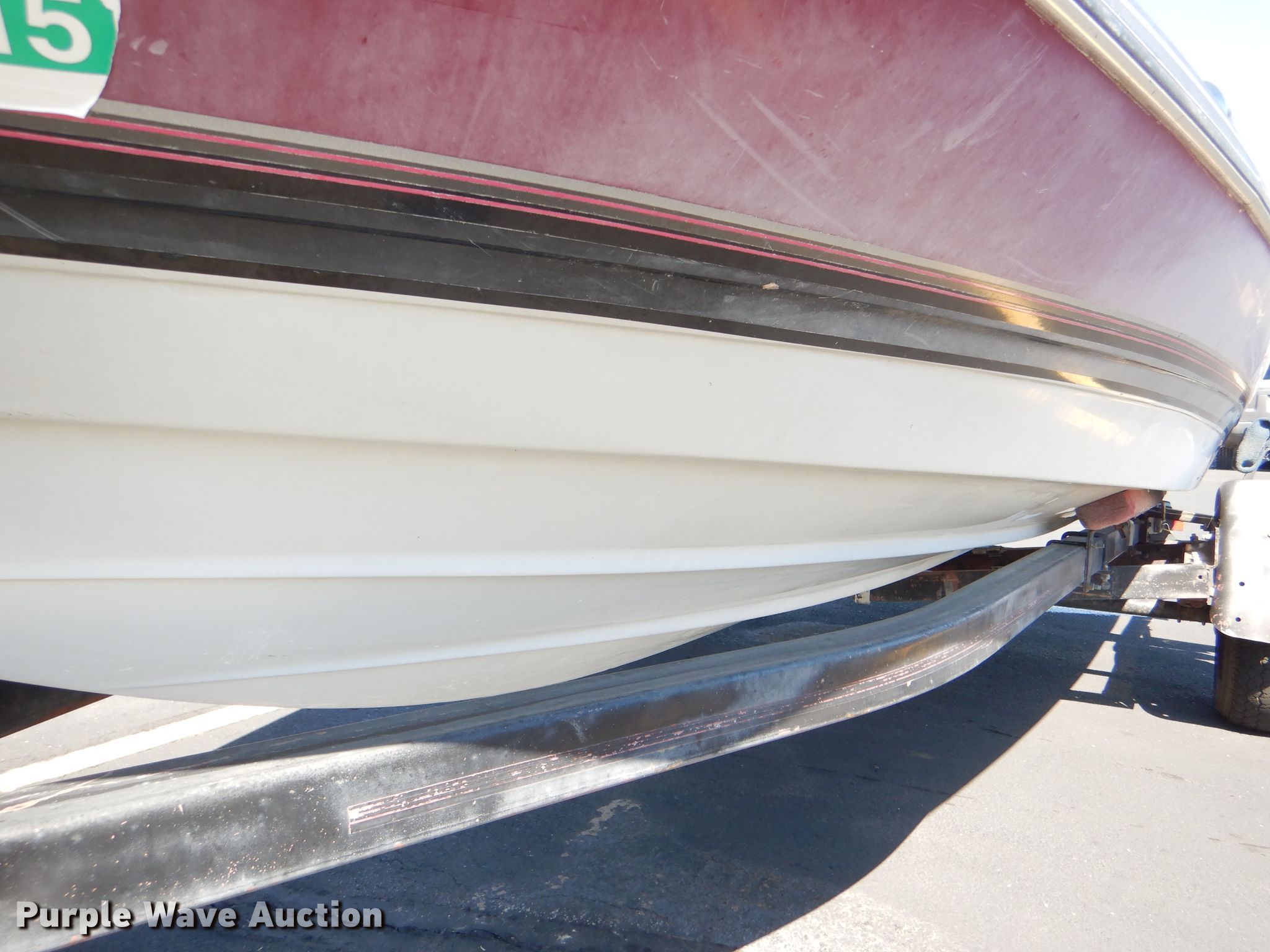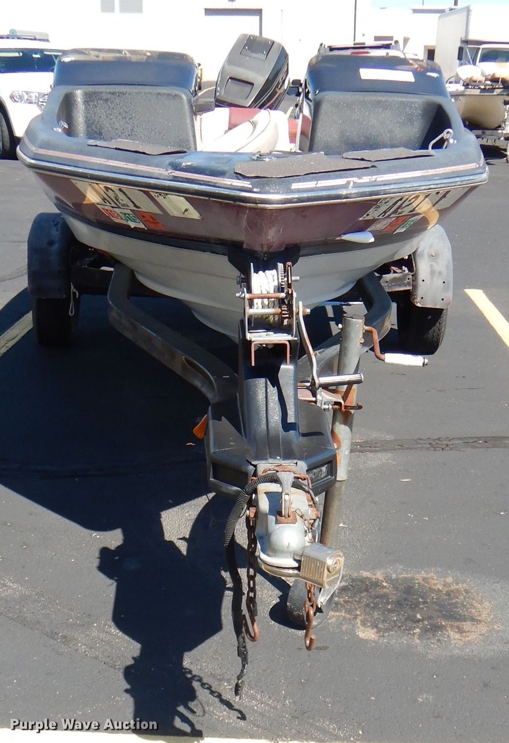 Purple Wave is selling a used Boat in Kansas. This item is a 1989 Bayliner Quantum boat with the following: 16'L, Force 5O outboard motor, Four person or 550 lbs capacity, Unknown operating condition, Hull ID USJB92PAA989, Escort trailer, 17'L, 2" ball hitch, 175/80D13 tires, Tires weathered