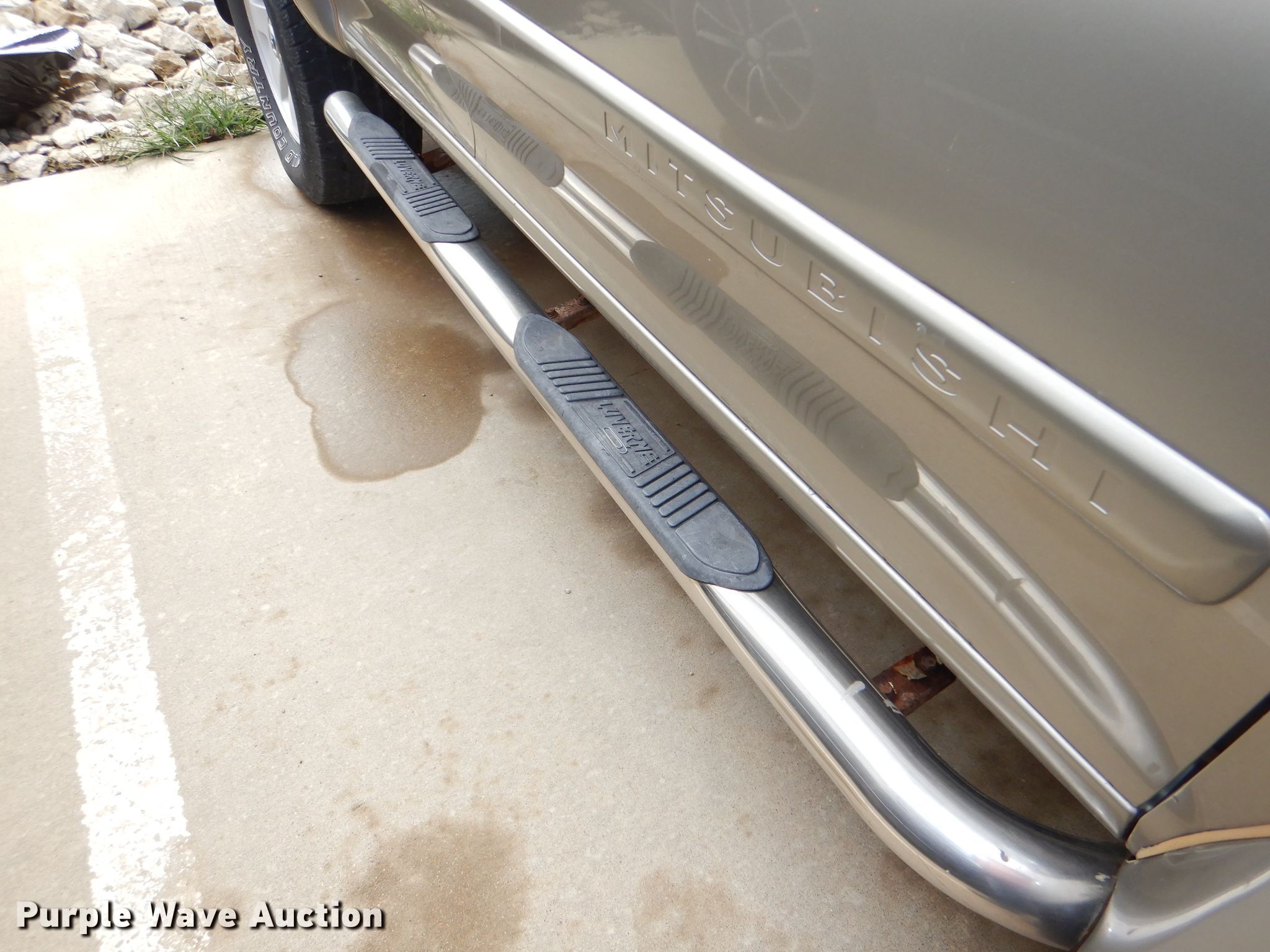 Purple Wave is selling a used Passenger Vehicle in Kansas. This item is a 2002 Mitsubishi Montero Sport SUV with the following: 210,774 miles on odometer, 3.5L V6 SOHC 24V gas engine, Automatic transmission, Four wheel drive, AC and heat, Cruise, Power windows and locks, 255/70R16 tires, Battery dead, Rear tire leaks
