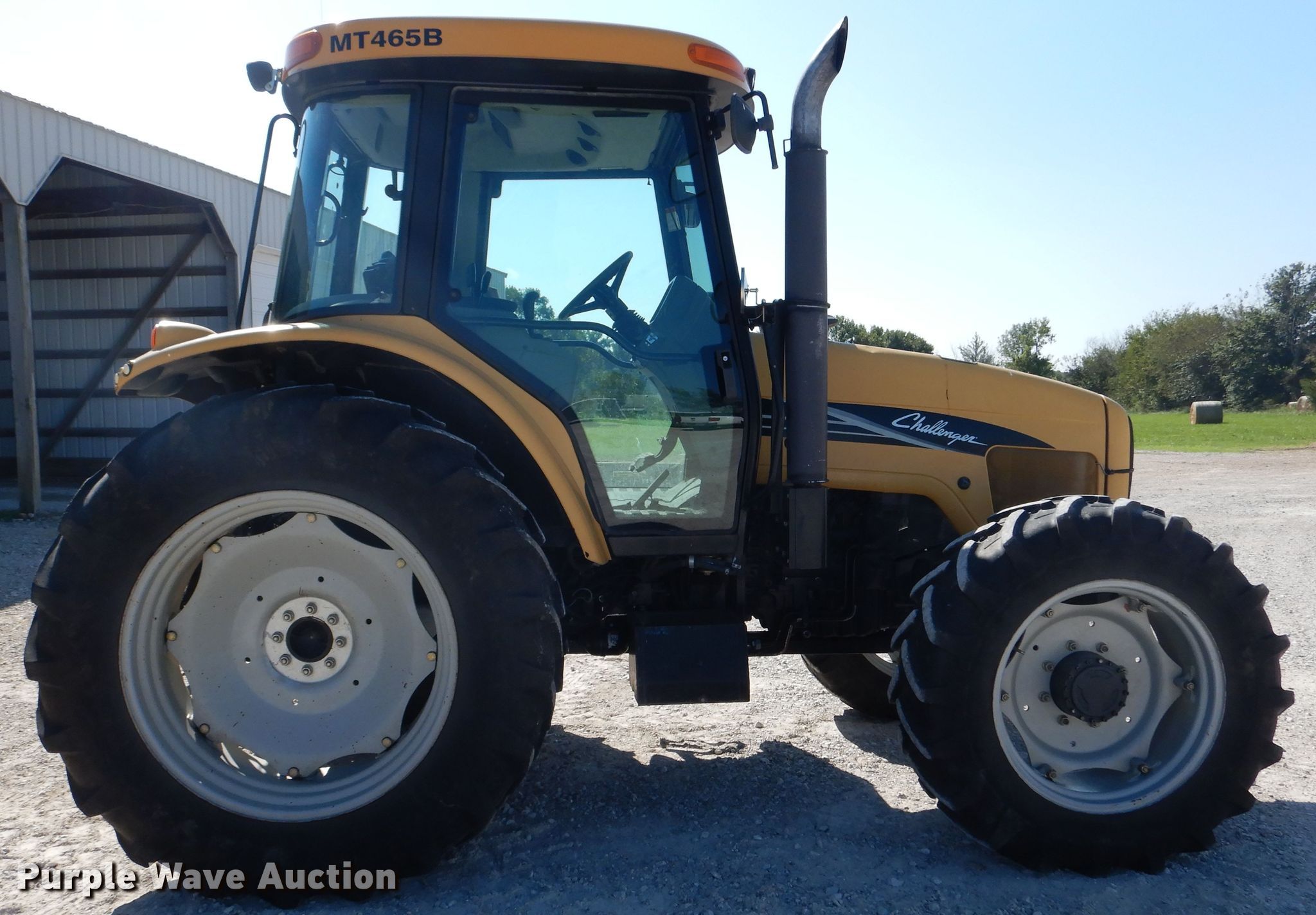 Purple Wave is selling a used Tractor in Missouri. This item is a 2004 Challenger MT465B MFWD tractor with the following: 5,028 hours on meter, Caterpillar 4.4L four cylinder diesel engine, 115 HP, Partial powershift transmission, 16F-16R gears, AC and heat, Three point, Top link, Seven pin outlet, 540/1000 PTO, (12) suitcase weights, 100" wheelbase, 13.6R28 front tires, 420/85R38 rear tires, Serial N285069