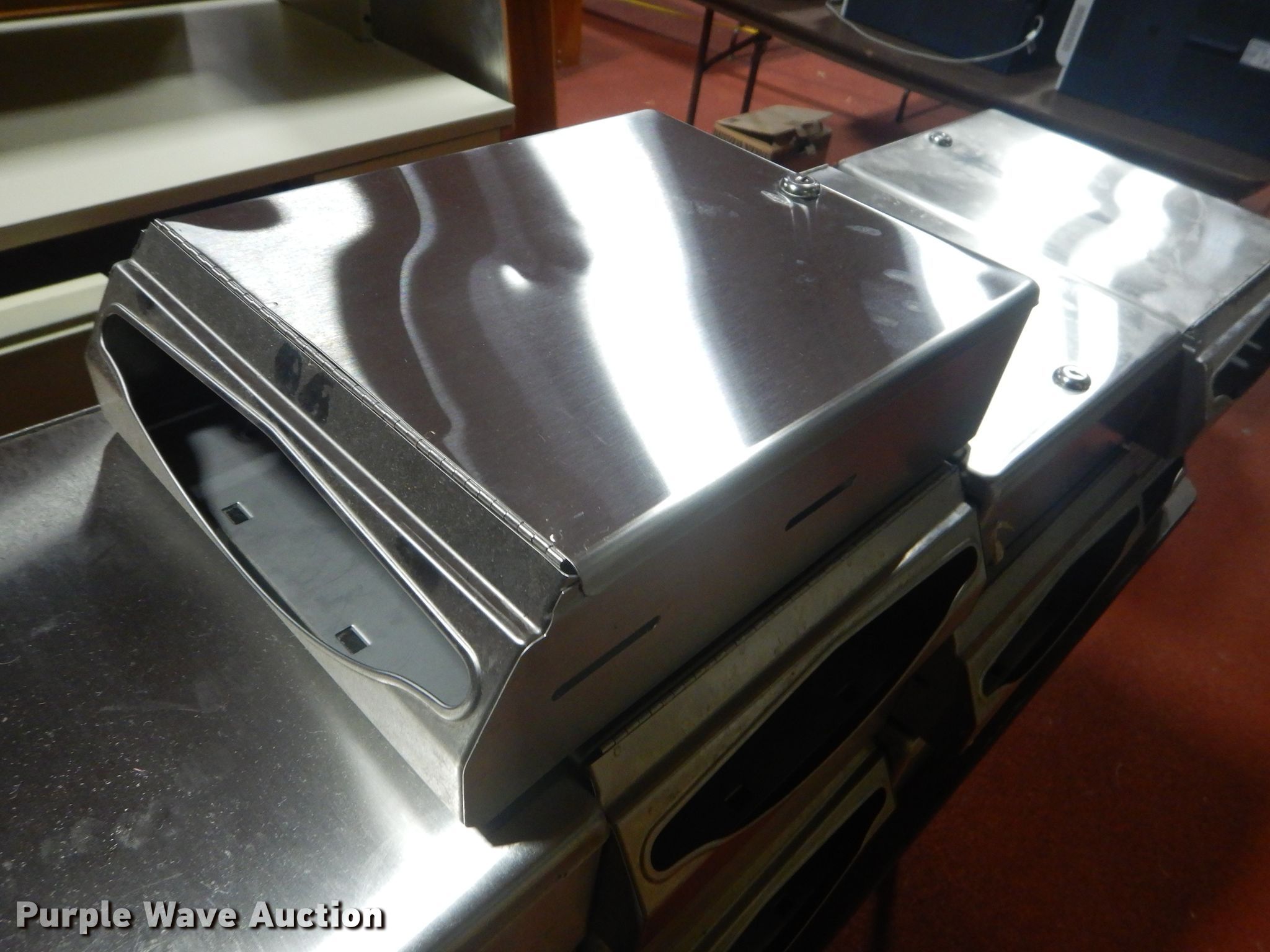 Purple Wave is selling a used Furniture in Kansas. This item is a Furniture with the following: (7) painters desks, Dry erase board, Cart, Metal desks, Podium, Cabinet, (5) workstation desks, Paper towel dispensers