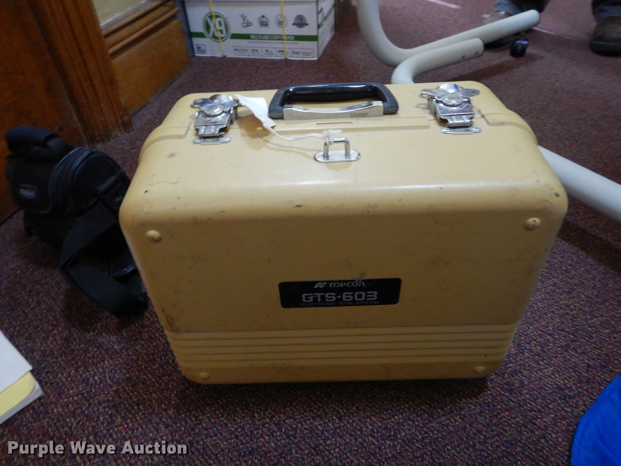 Purple Wave is selling a used Surveying Equip. in Iowa. This item is a TopCon GTS-603 total station with the following: No controller, Case, Instruction manual, Sony MVC-FD200 camera, 2.0 mega pixel