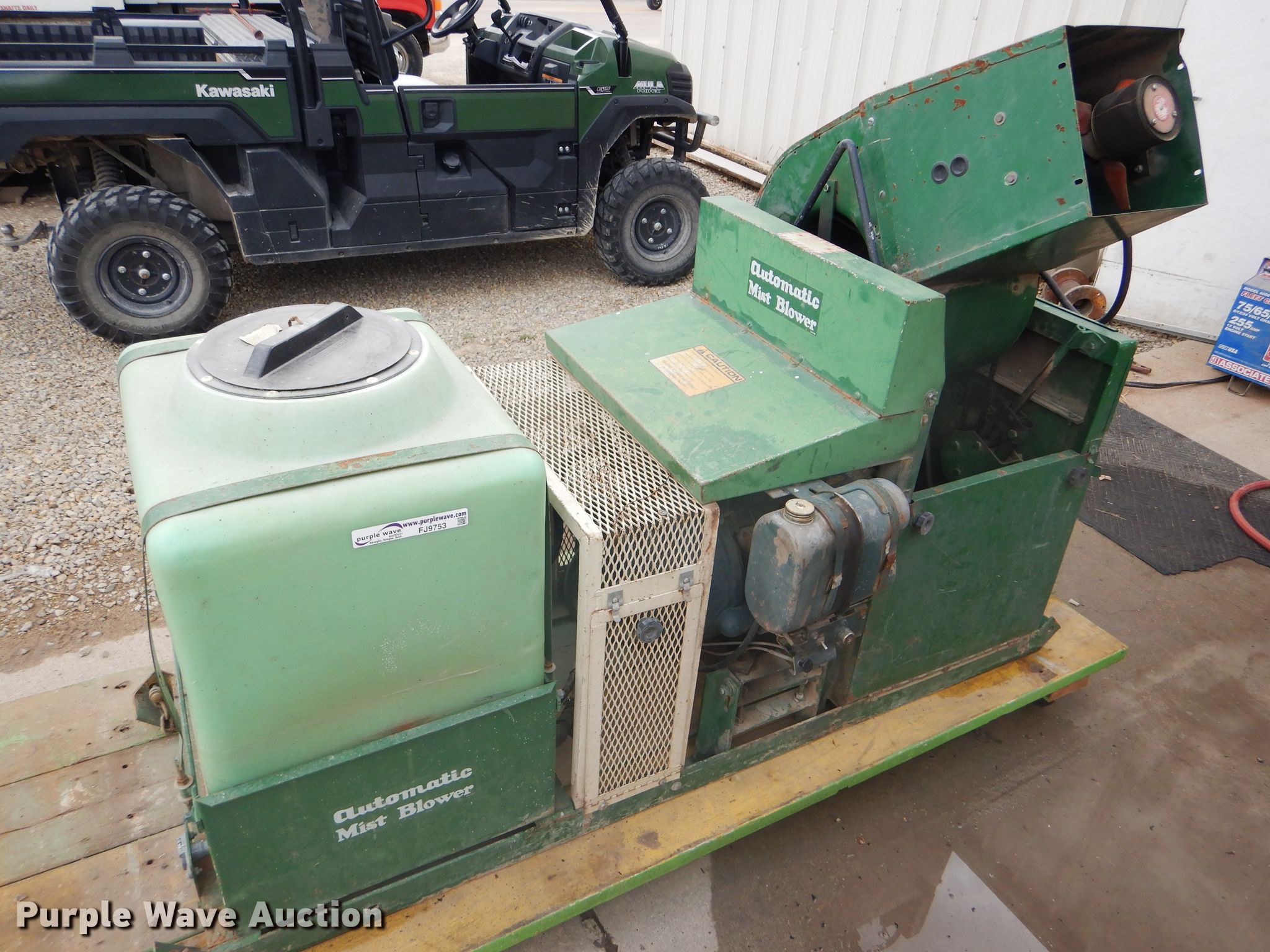 Purple Wave is selling a used Tools in Kansas. This item is a Automatic MB50-D Micro-Mist sprayer with the following: 78"L x 26"W, Kohler 16 HP gas engine, Adjustable nozzle, 50 gallon capacity, Vehicle mounted control box, Cart not included, Battery not included, Serial 83B107151