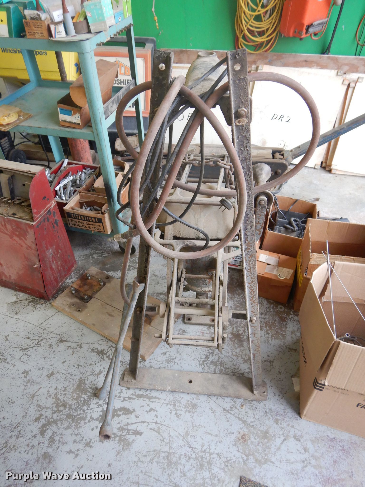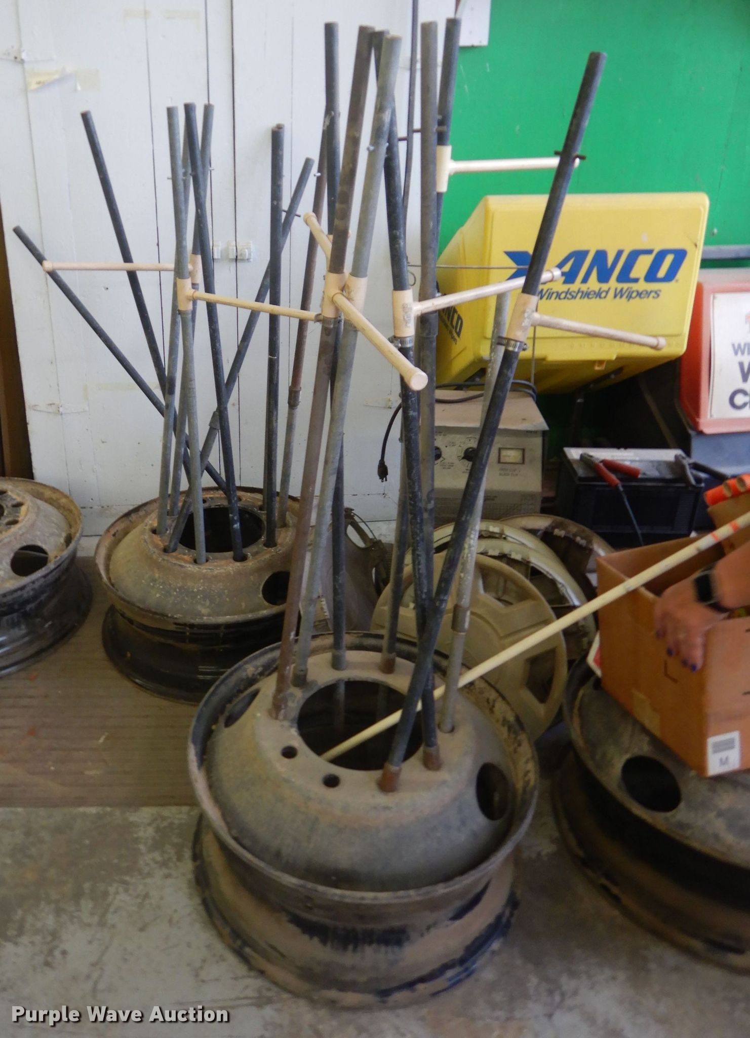 Purple Wave is selling a used Tools in Kansas. This item is a Tools with the following: Tire racks, Tire changing machine, Wheel weights, Filters, Floor jacks, Tire patches, Road signs, Poles, Wheels poles are in not included