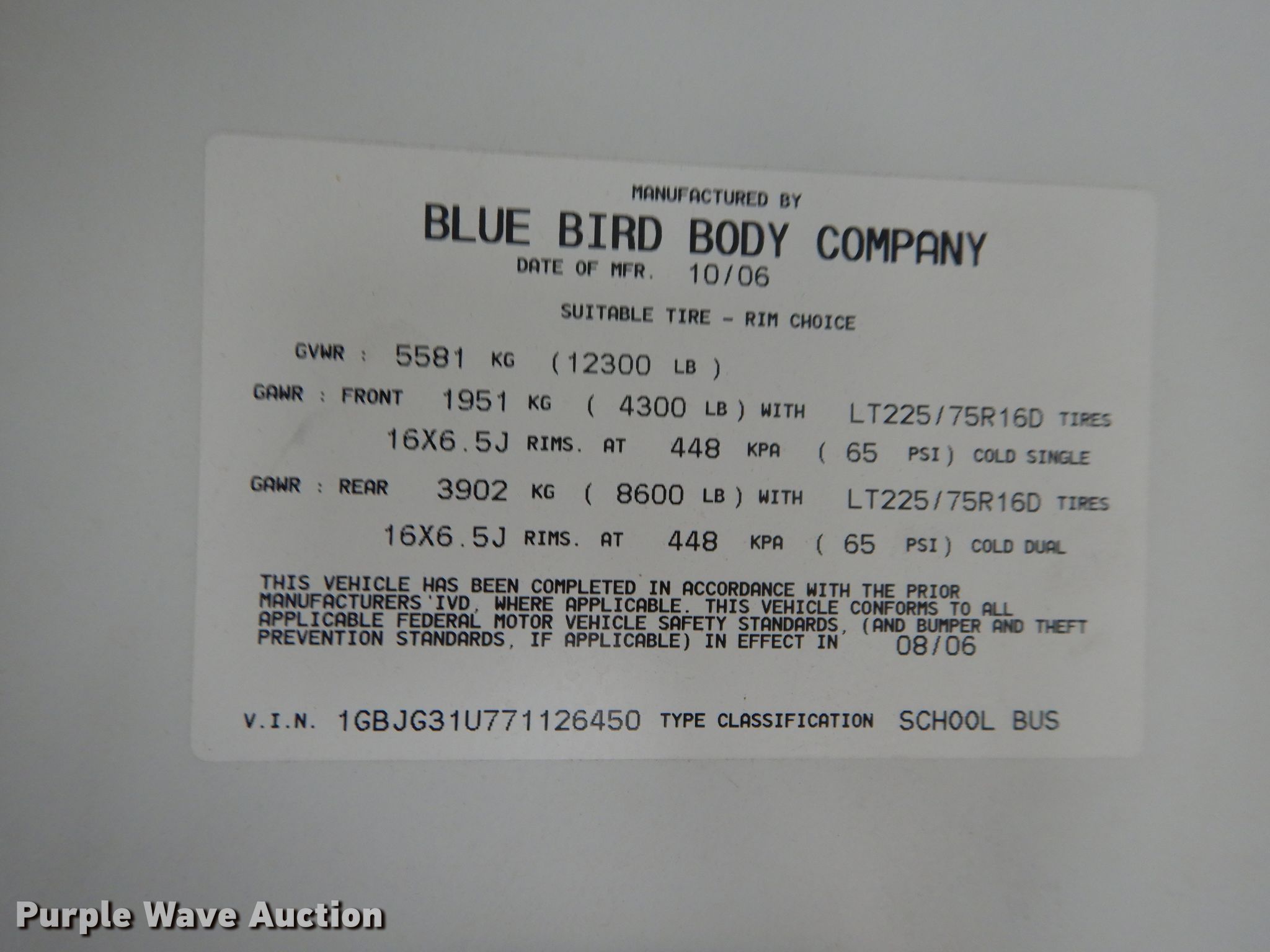 Purple Wave is selling a used Bus in Kansas. This item is a 2007 Chevrolet Express 3500 school bus with the following: 157,982 miles on odometer, 6.0L V8 OHV 16V gas engine, Automatic transmission, Single axle, AC and heat, 24 passenger capacity, Spring suspension, Hydraulic brakes, 225/75R16 tires, GVWR 12,300 lbs, Cracked cylinder head gasket