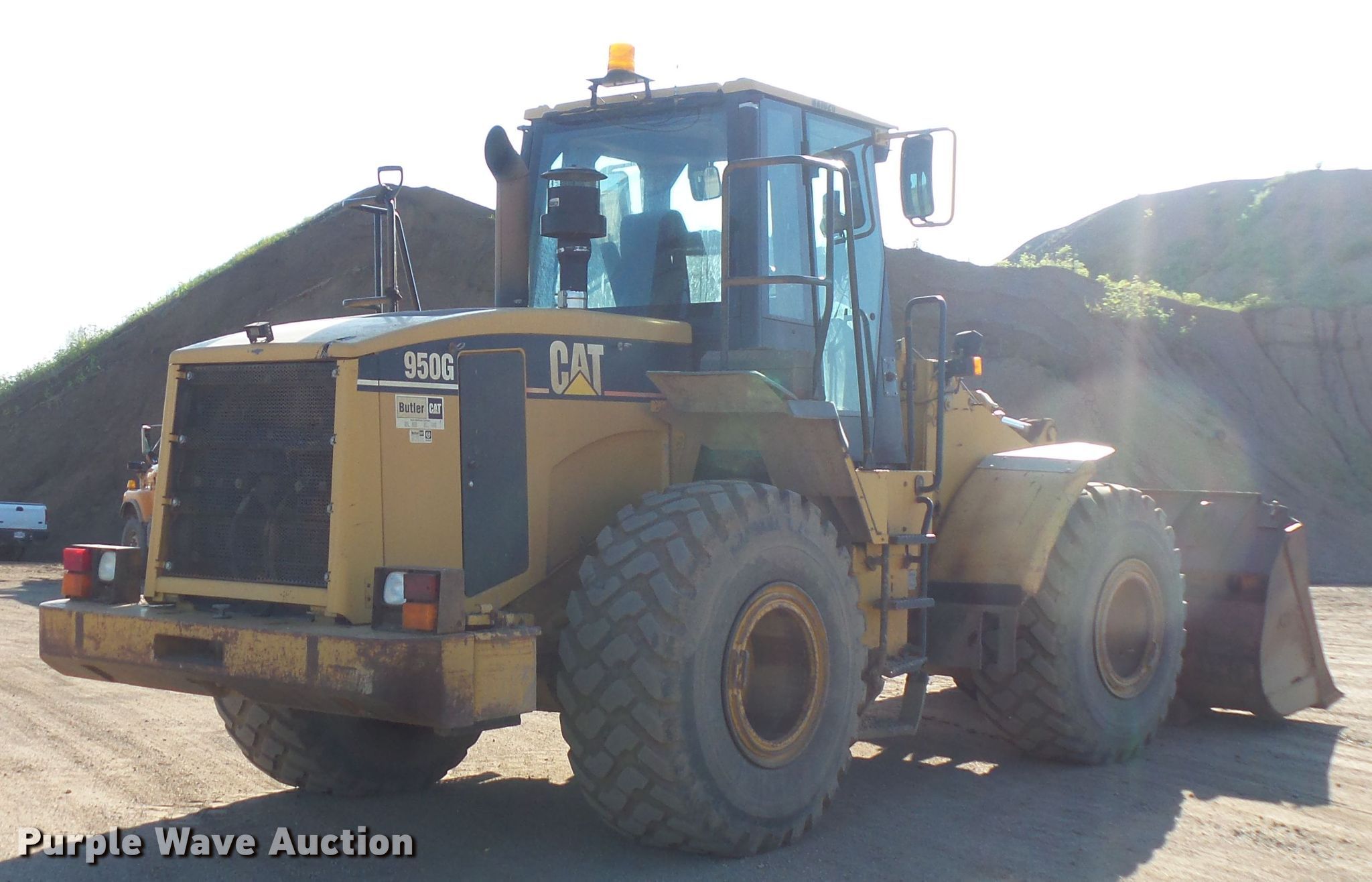 Purple Wave is selling a used Wheel Loader in South Dakota. This item is a 1998 Caterpillar 950G wheel loader with the following: 21,422 hours on meter, Caterpillar 3126 six cylinder diesel engine, Powershift transmission, 4F-4R gears, Enclosed cab, AC and heat, Two-lever bucket controls, Ride control, Front auxiliary hydraulics, Hydraulic quick coupler, 114"W general purpose bucket, Bolt-on cutting edge, 23.5R25 tires, Scale and printer not included, Serial 3JW00211, Unit# 84