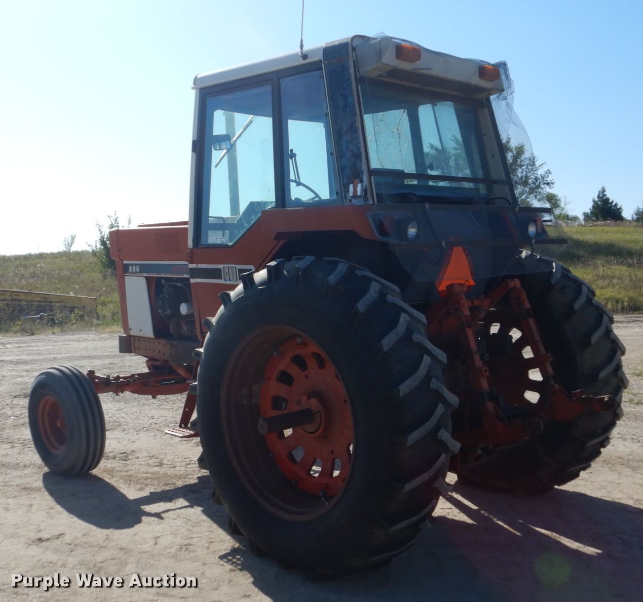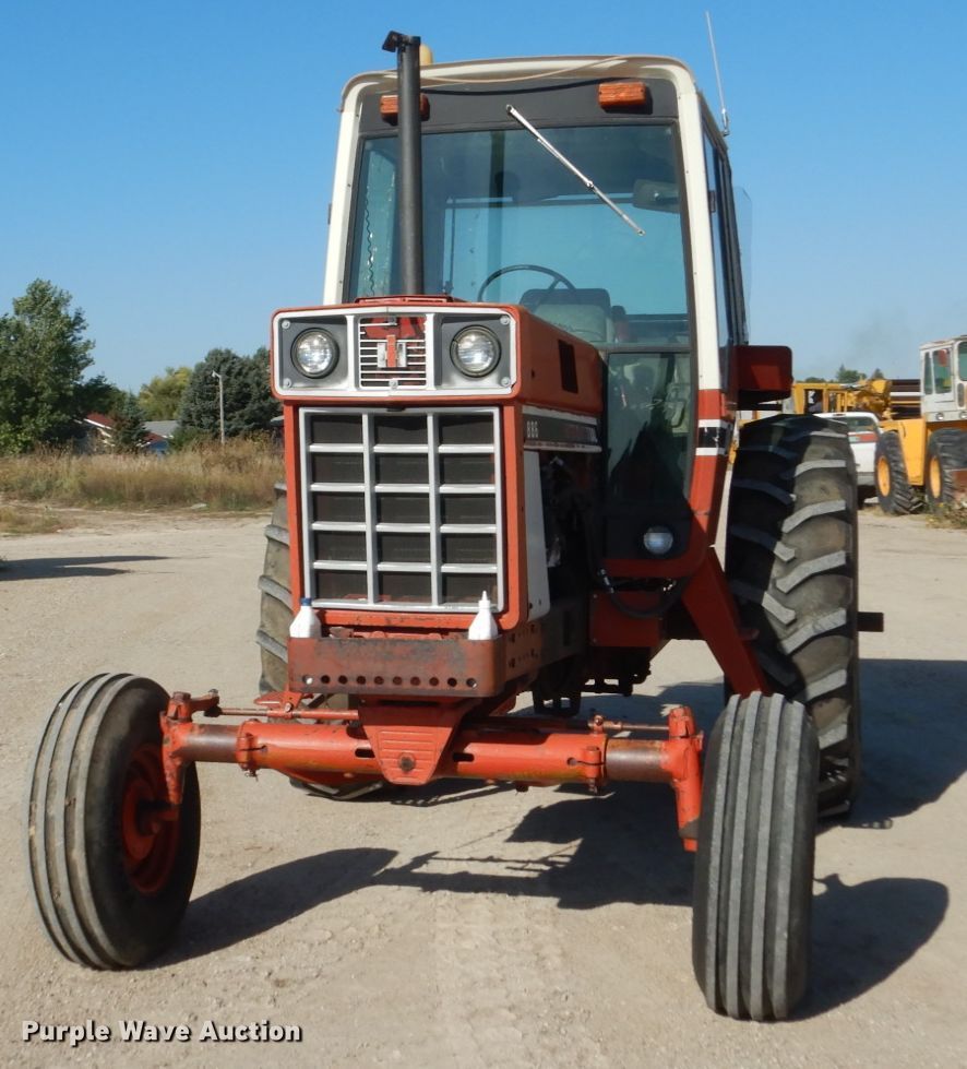 Purple Wave is selling a used Tractor in South Dakota. This item is a International 886 tractor with the following: 6,533 hours on meter, Six cylinder diesel engine, Torque amplifier transmission, 8F-4R gears, AC and heat, Three point, 540 PTO, (2) rear hydraulic remote sets, 10.00-16SL front tires, 18.4-38 rear tires, Glass cracked, Serial 67888