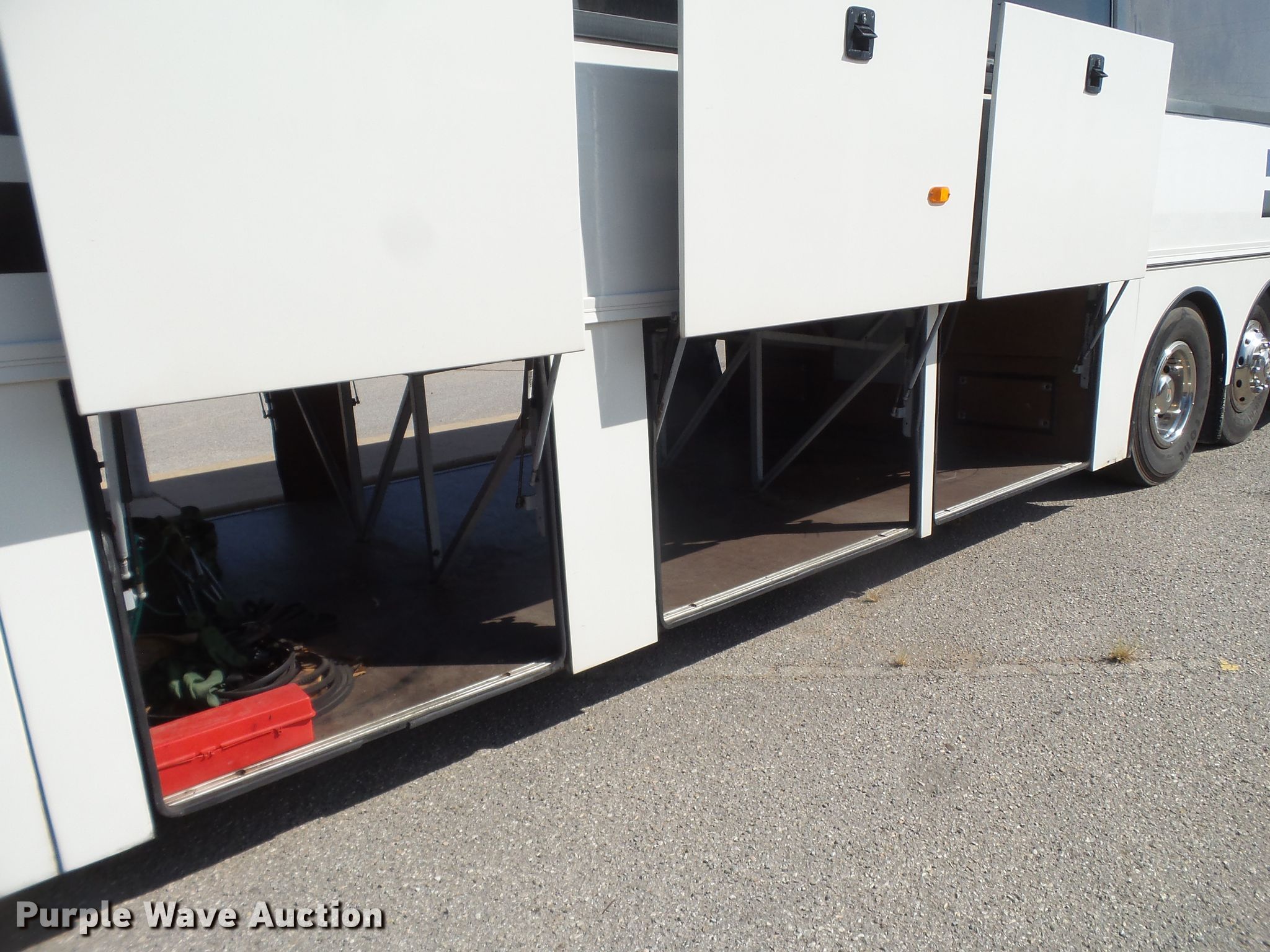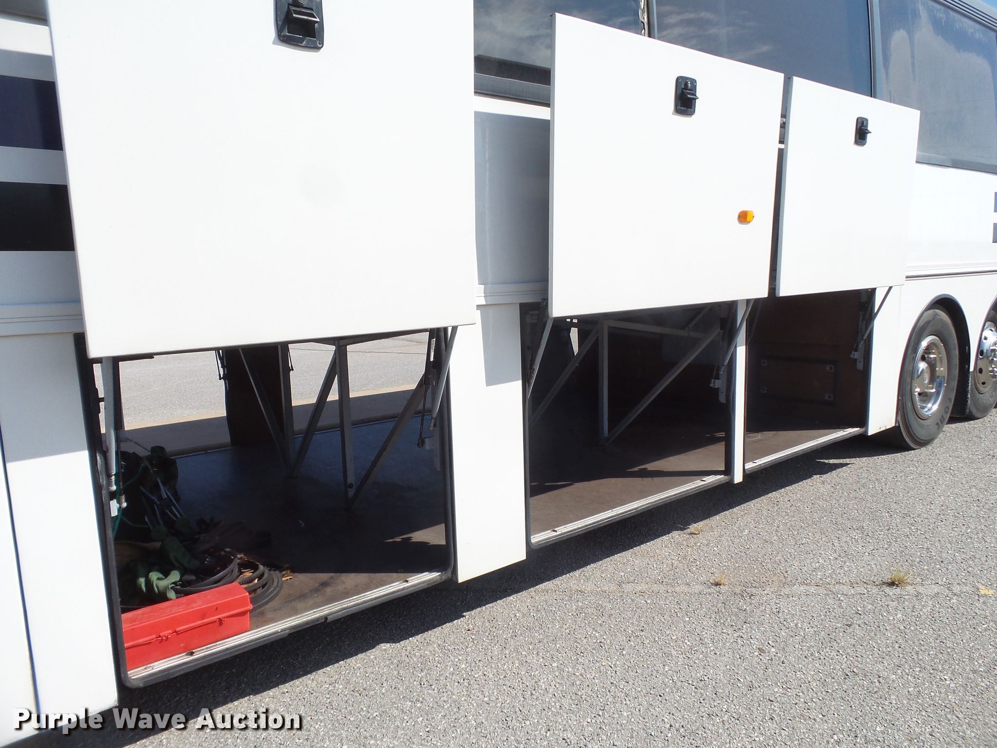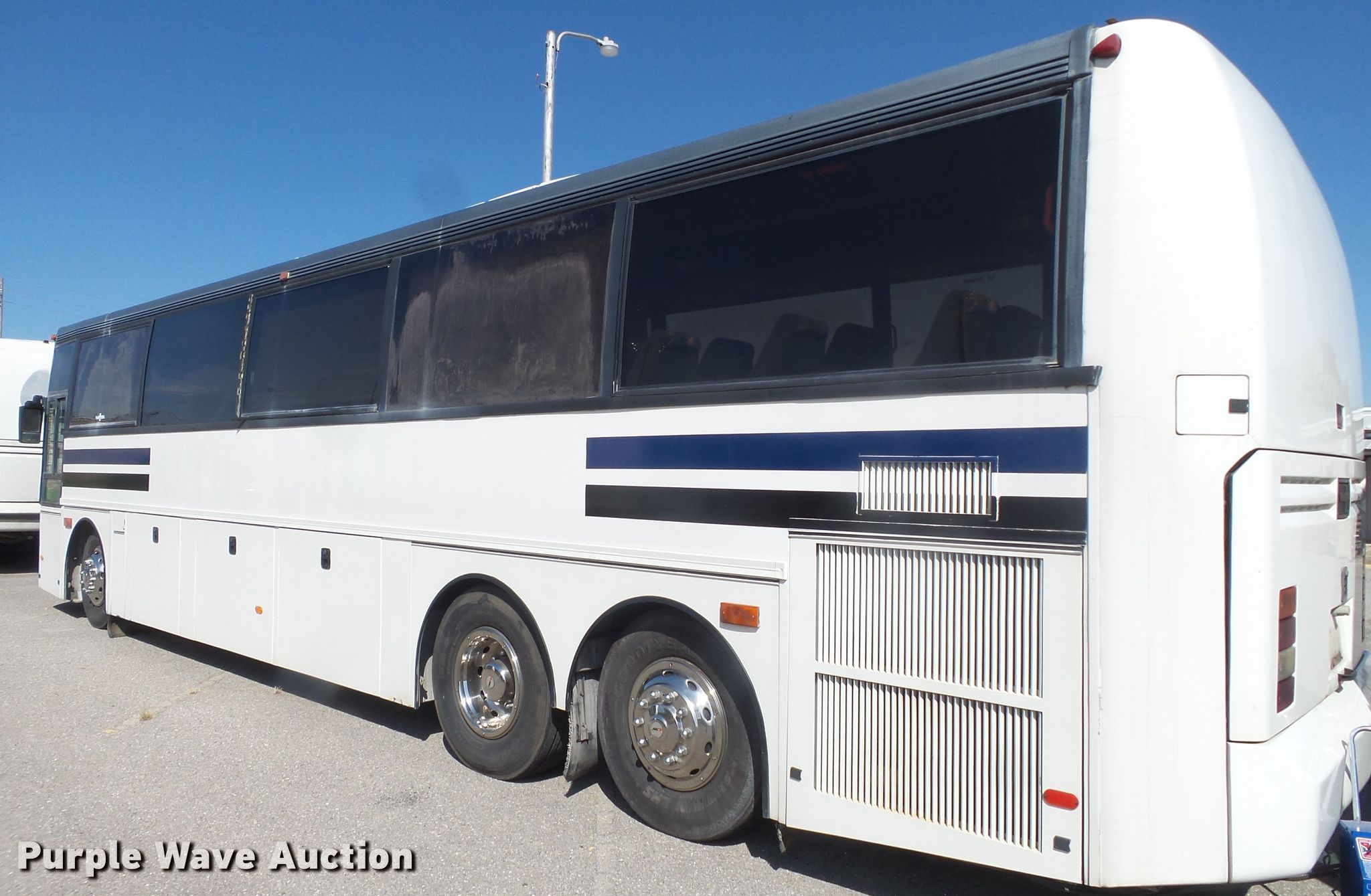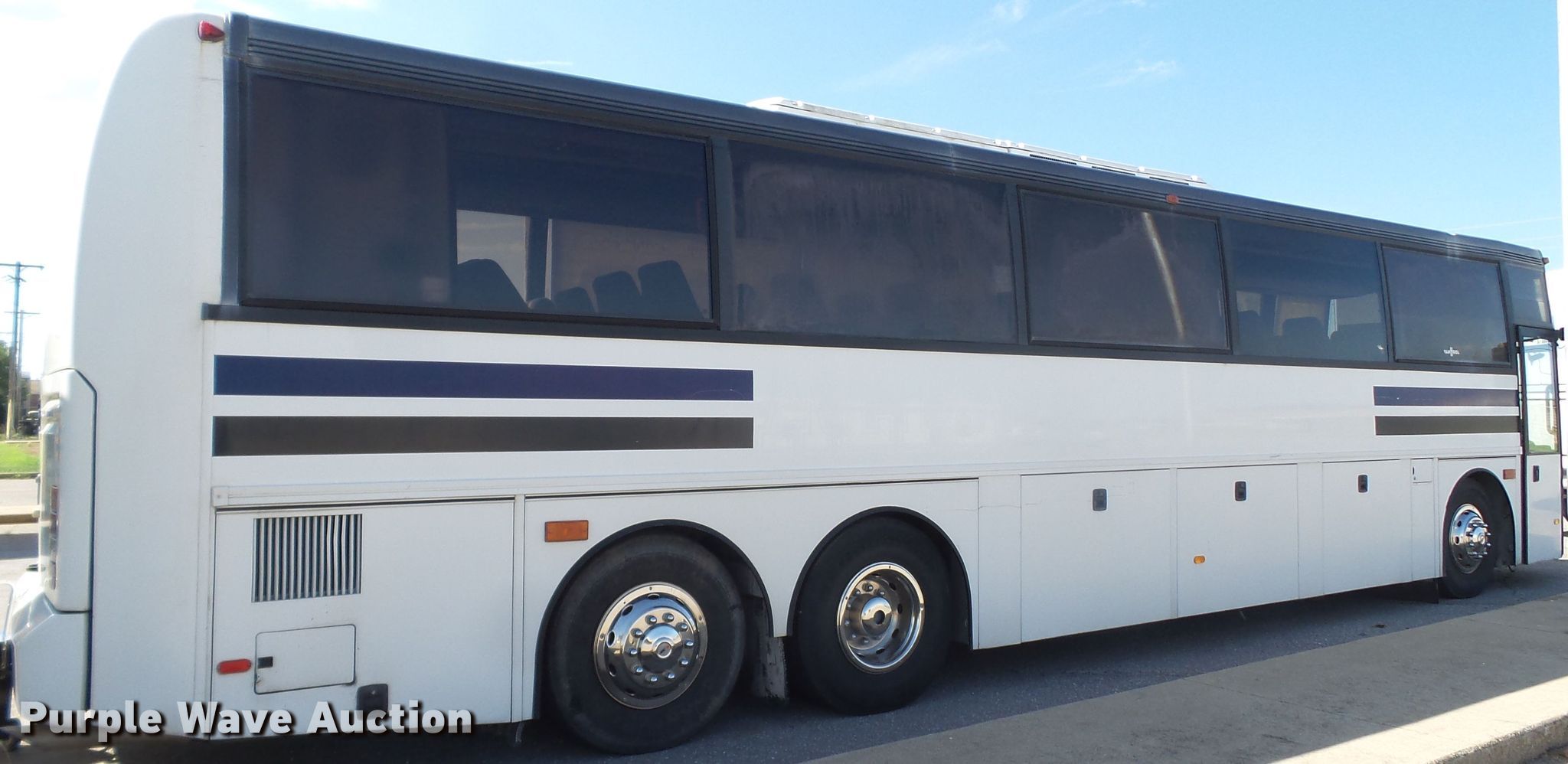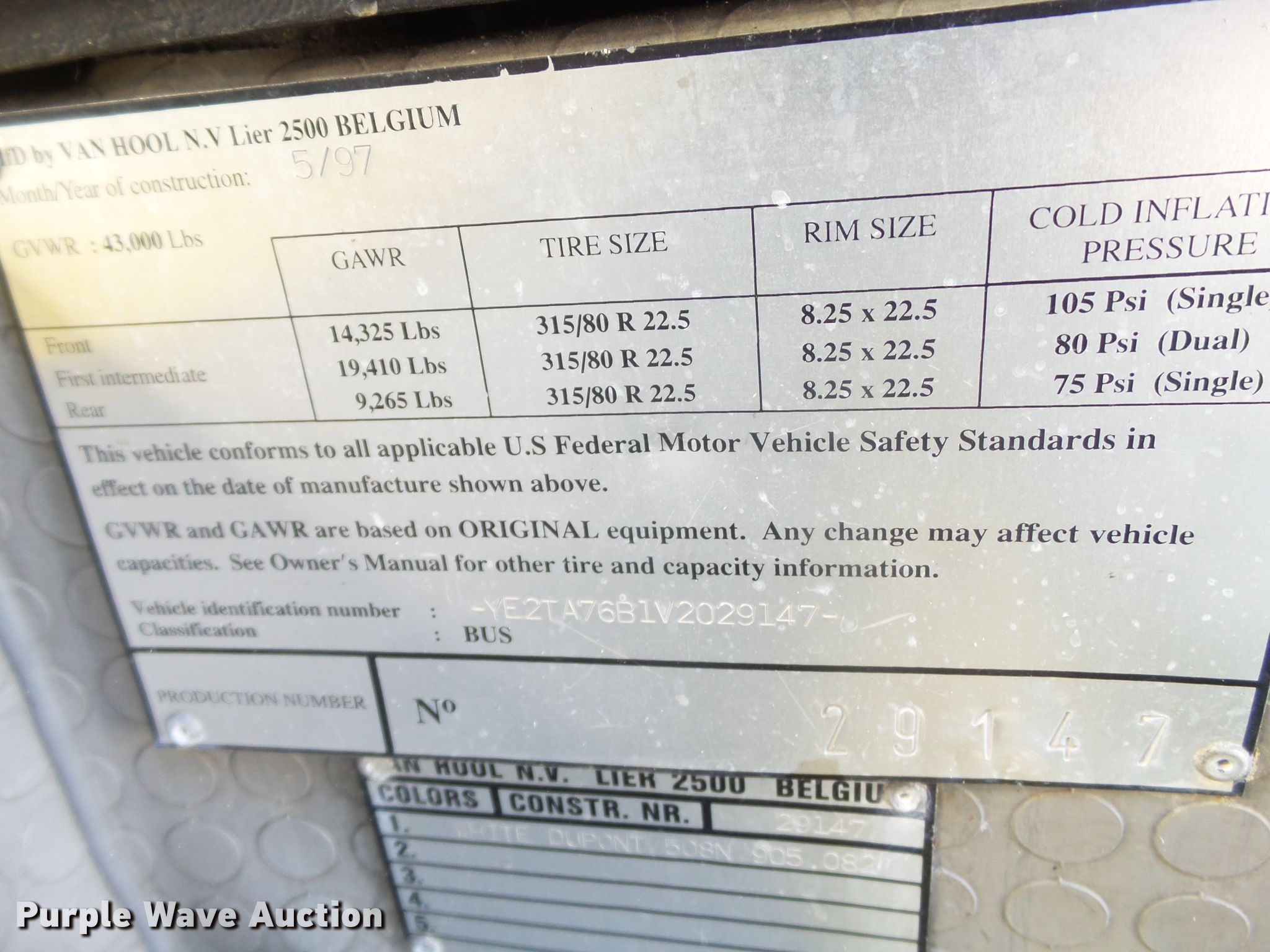 Purple Wave is selling a used Bus in Oklahoma. This item is a 1997 Van Hool T940 coach bus with the following: 75,850 miles on odometer, Cummins M11 10.8L L6 diesel engine, Automatic transmission, Tandem axle, AC and heat, On-board restroom, 46 passenger capacity, Air suspension, Air brakes, 315/80R22.5 tires, GVWR 43,000 lbs, Lift axle GAWR 19,410 lbs, Chipped windshield, One storage door cylinder weak, Unit# 60