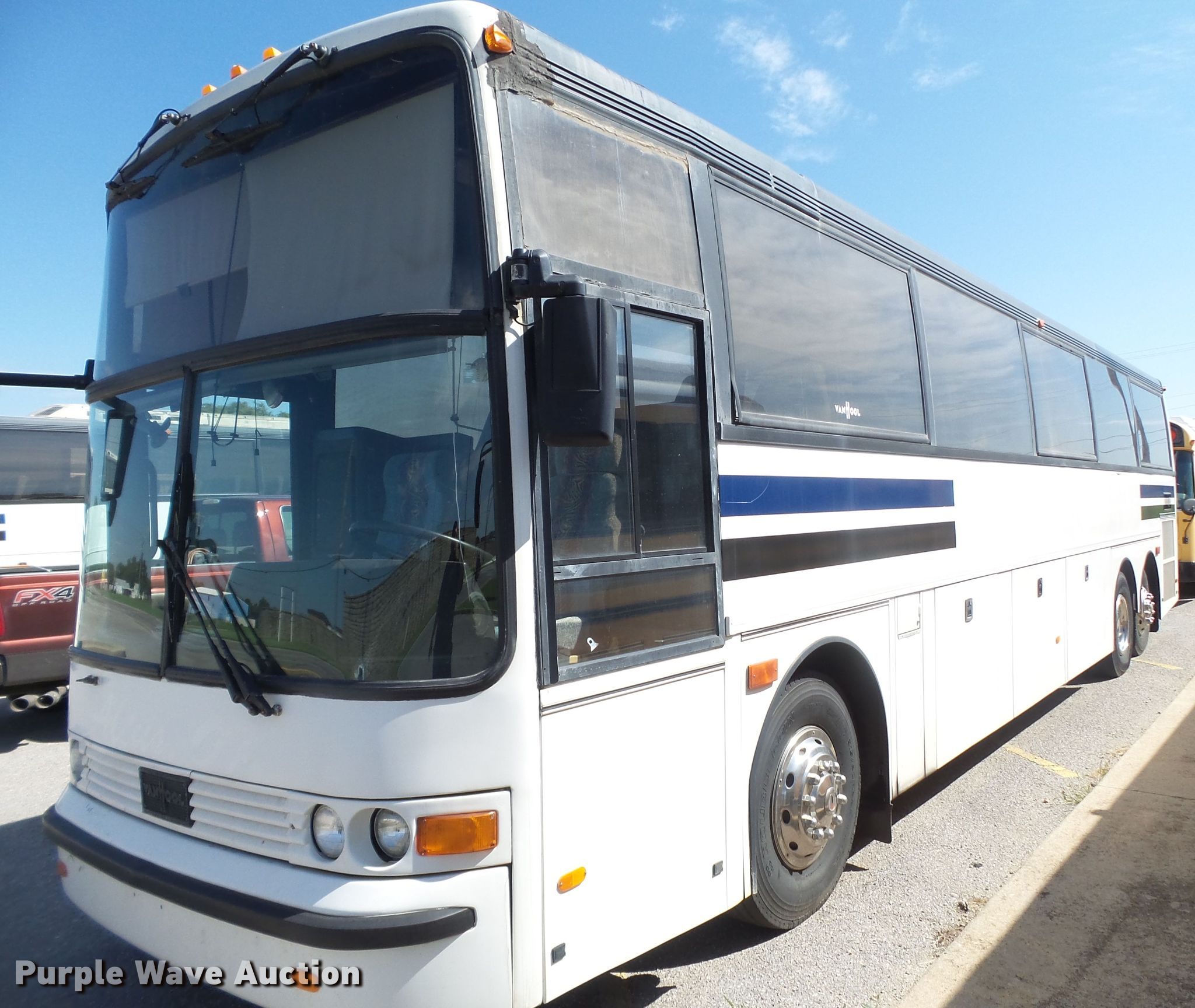 Purple Wave is selling a used Bus in Oklahoma. This item is a 1998 Van Hool coach bus with the following: 429,680 miles on odometer, Cummins M11 10.8L L6 diesel engine, Automatic transmission, Tandem axle, AC and heat, On-board restroom, 46 passenger capacity, Air suspension, Air brakes, 315/80R22.5 tires, GVWR 43,000 lbs, Lift axle GAWR 19,410 lbs, Chipped windshield, Unit# 61