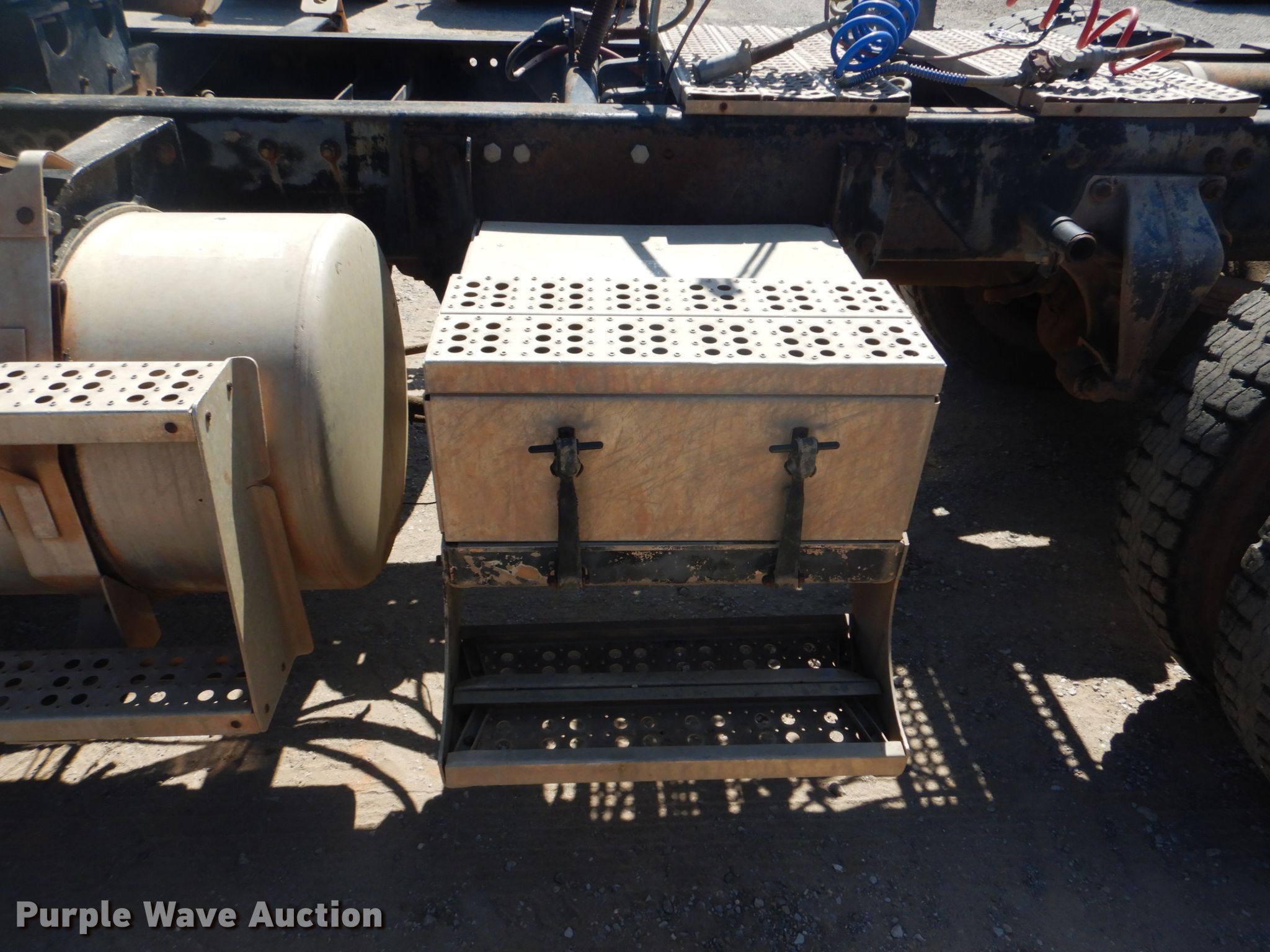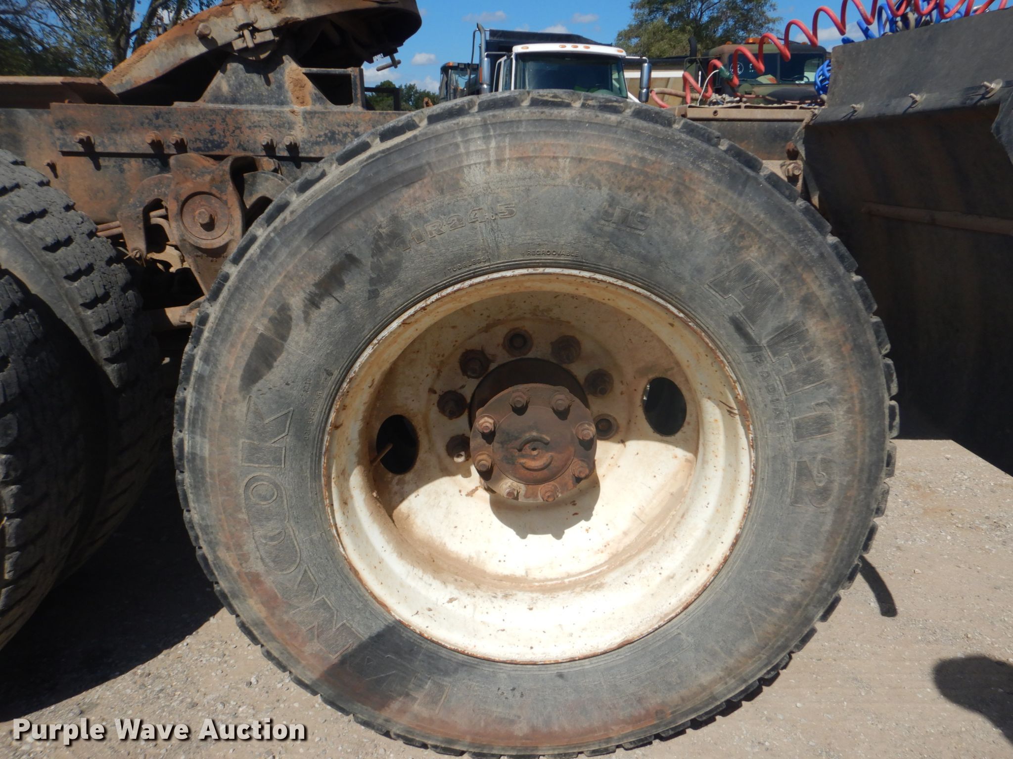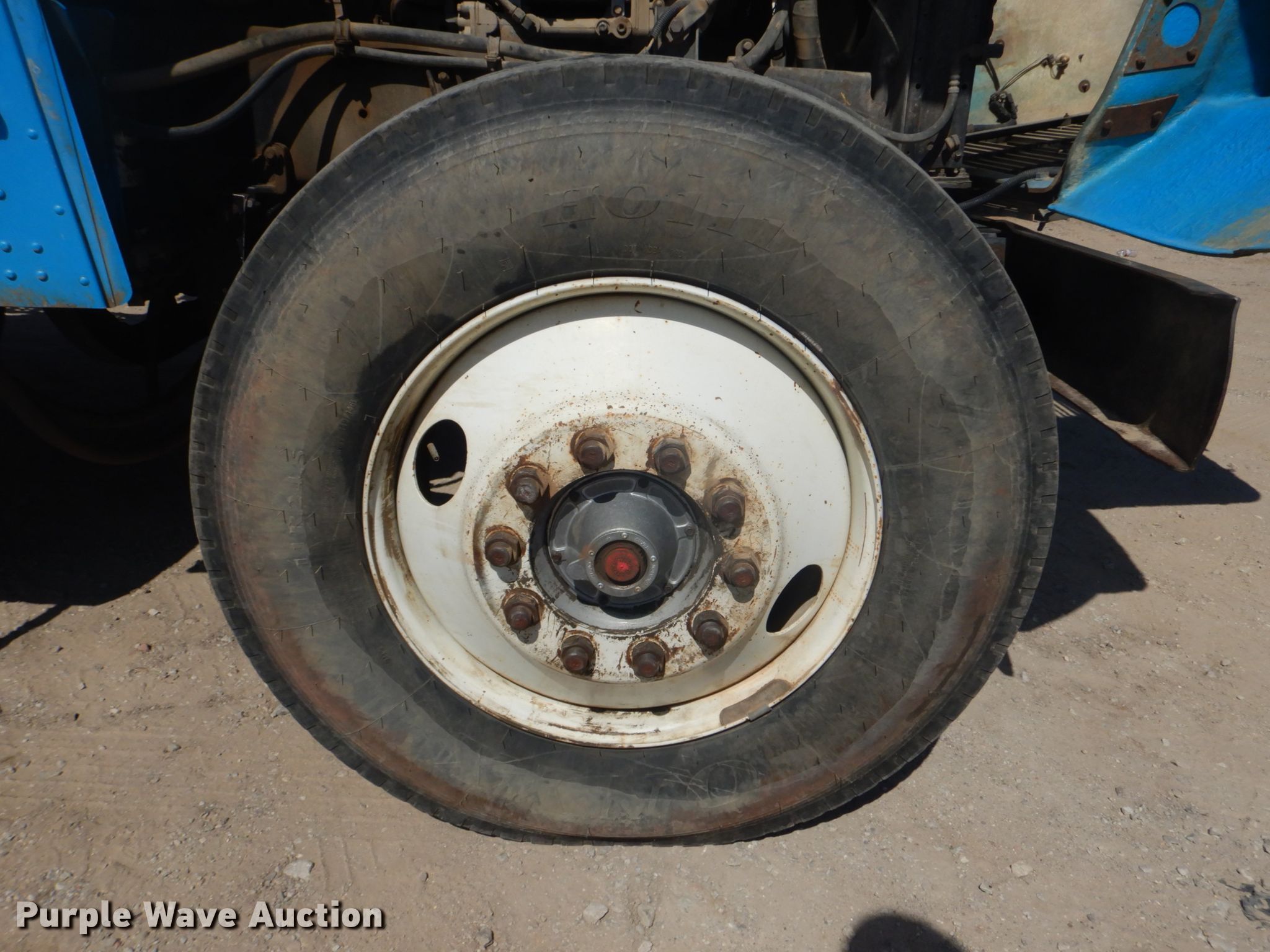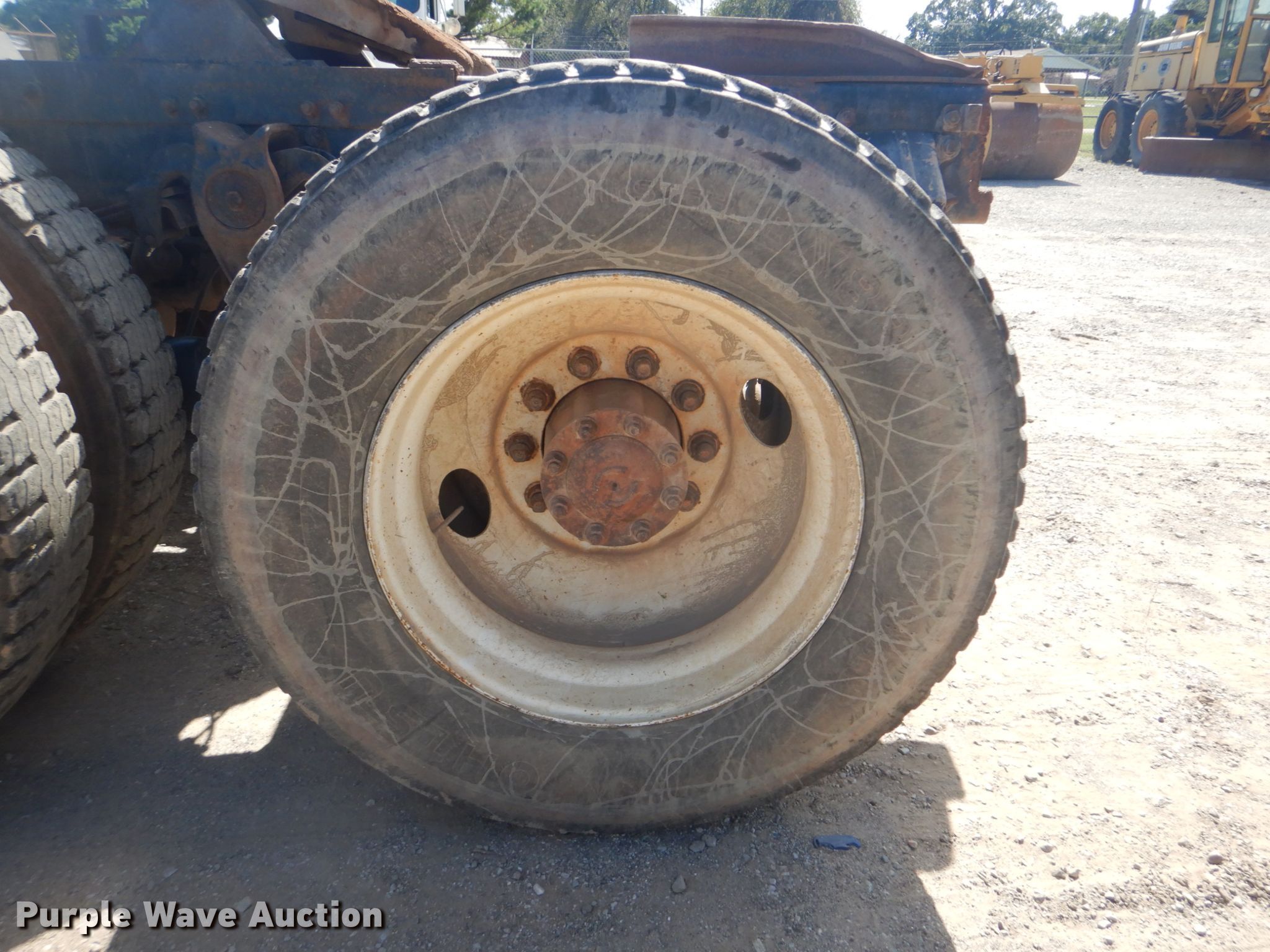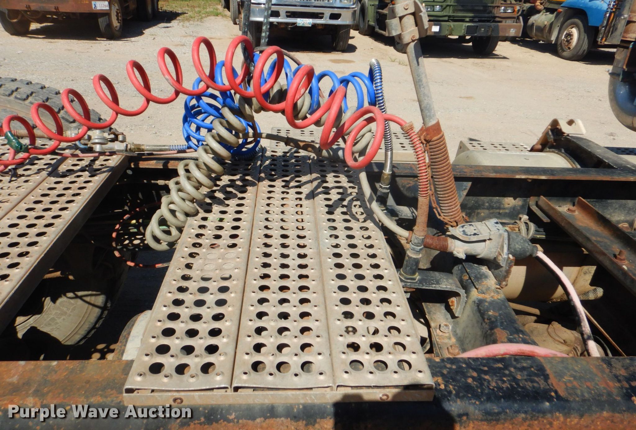 Purple Wave is selling a used Truck Tractor in Oklahoma. This item is a 1989 Freightliner FLC semi truck with the following: 238,442 miles on odometer, Cummins 14.0L six cylinder diesel engine, 10 speed manual transmission, Tandem axle, AC and heat, Steel deck plate, Air operated fifth wheel plate, Dual fuel tanks, Spring suspension, Air brakes, 225" wheelbase, 11R24.5 tires, GVWR 48,000 lbs