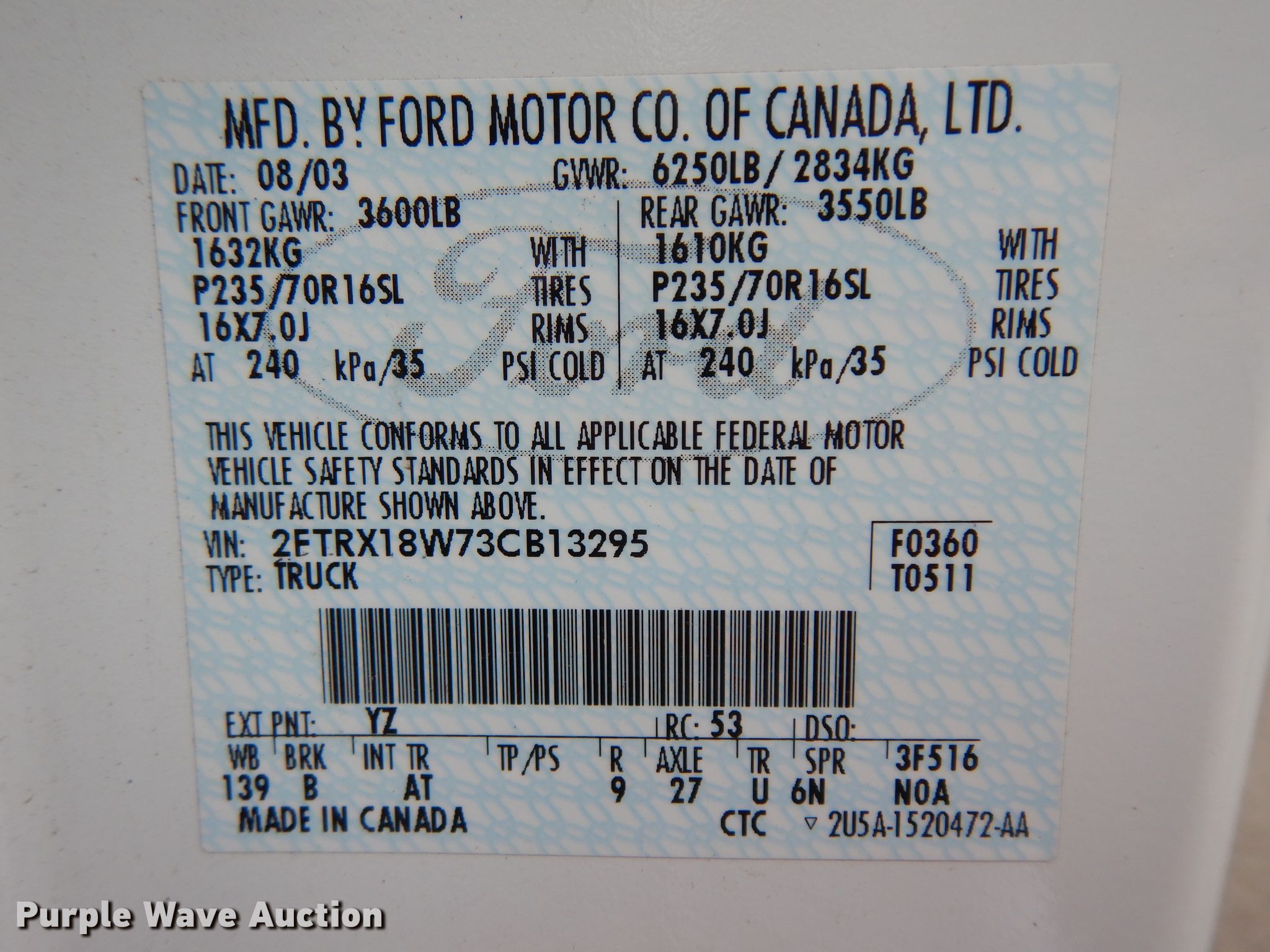 Purple Wave is selling a used 1/2 Ton Pickup or Van in Kansas. This item is a 2003 Ford F150 SuperCab pickup truck with the following: 89,187 miles on odometer, 4.6L V8 SOHC 16V gas engine, Automatic transmission, Four wheel drive, AC and heat, Cruise, Sportsman topper, 235/70R16 tires
