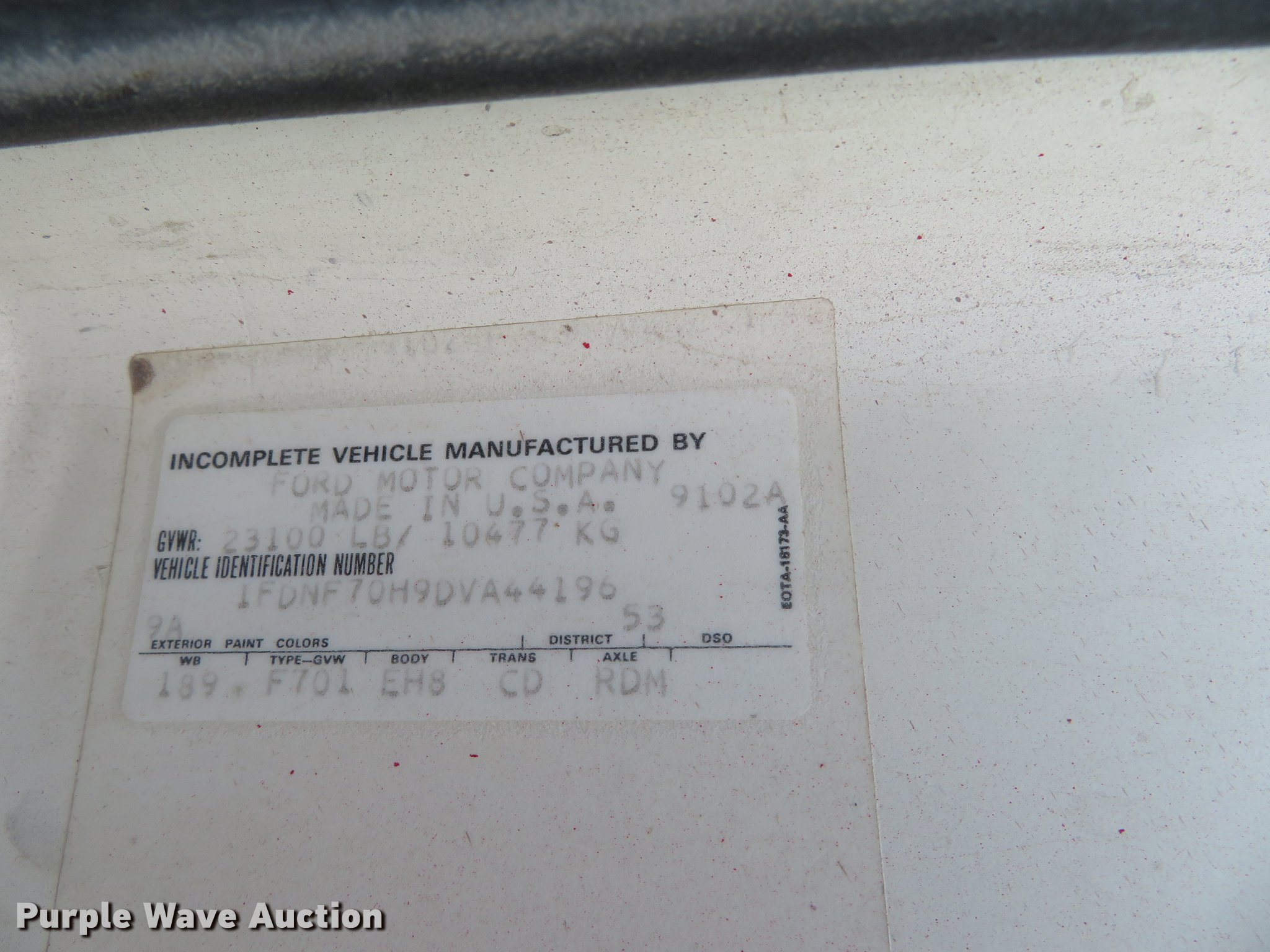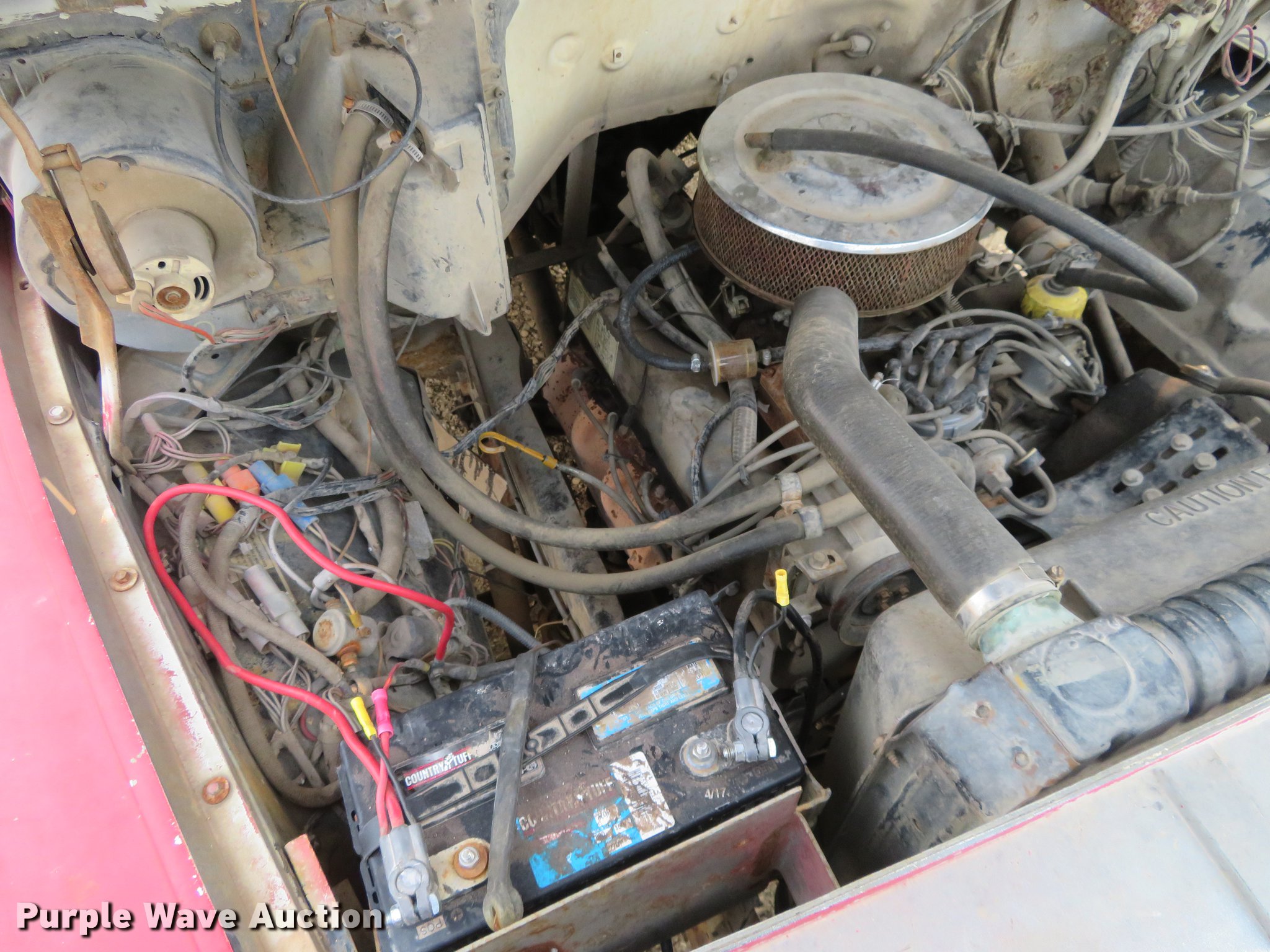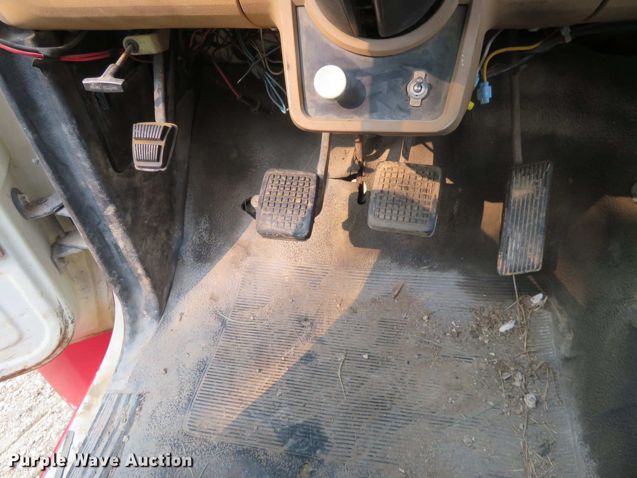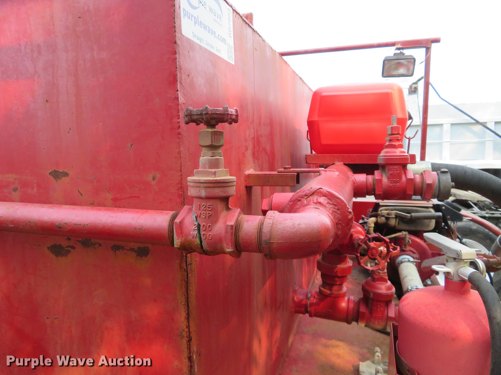 Purple Wave is selling a used Fire Truck or Emergency Vehicle in Kansas. This item is a 1983 Ford F700 brush fire truck with the following: 92,253 miles on odometer, 6.1L V8 gas engine, Five speed manual transmission, Six wheel drive, 147"L x 96"W flatbed, 10' x 60.5" x 37.5"H steel water tank, Waterous pump, Vanguard 18 HP gas engine,, Spring suspension, 9.00R20 tires