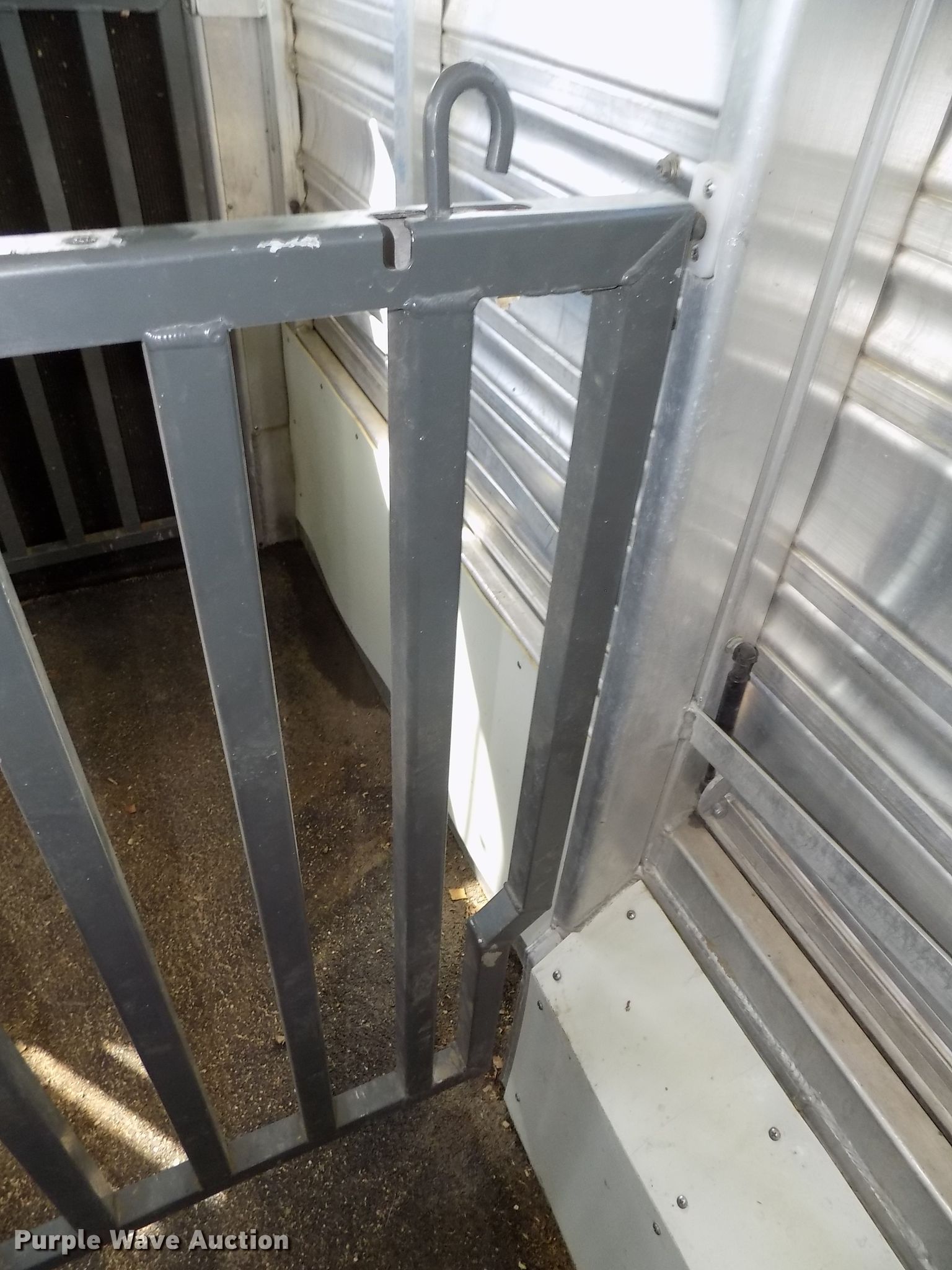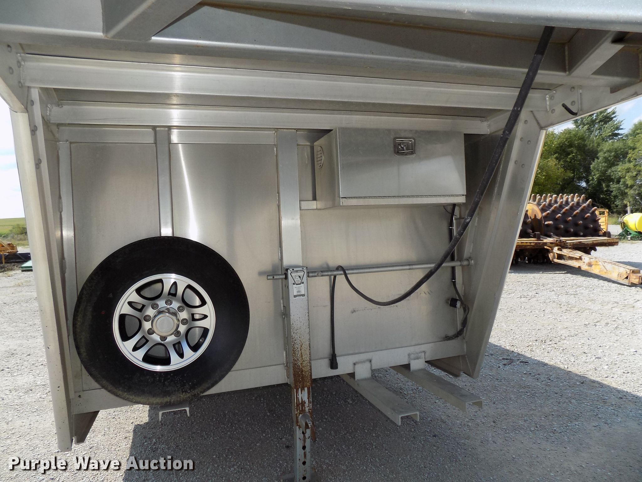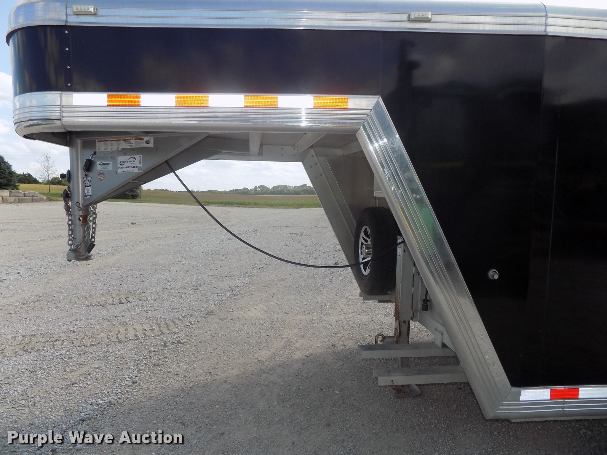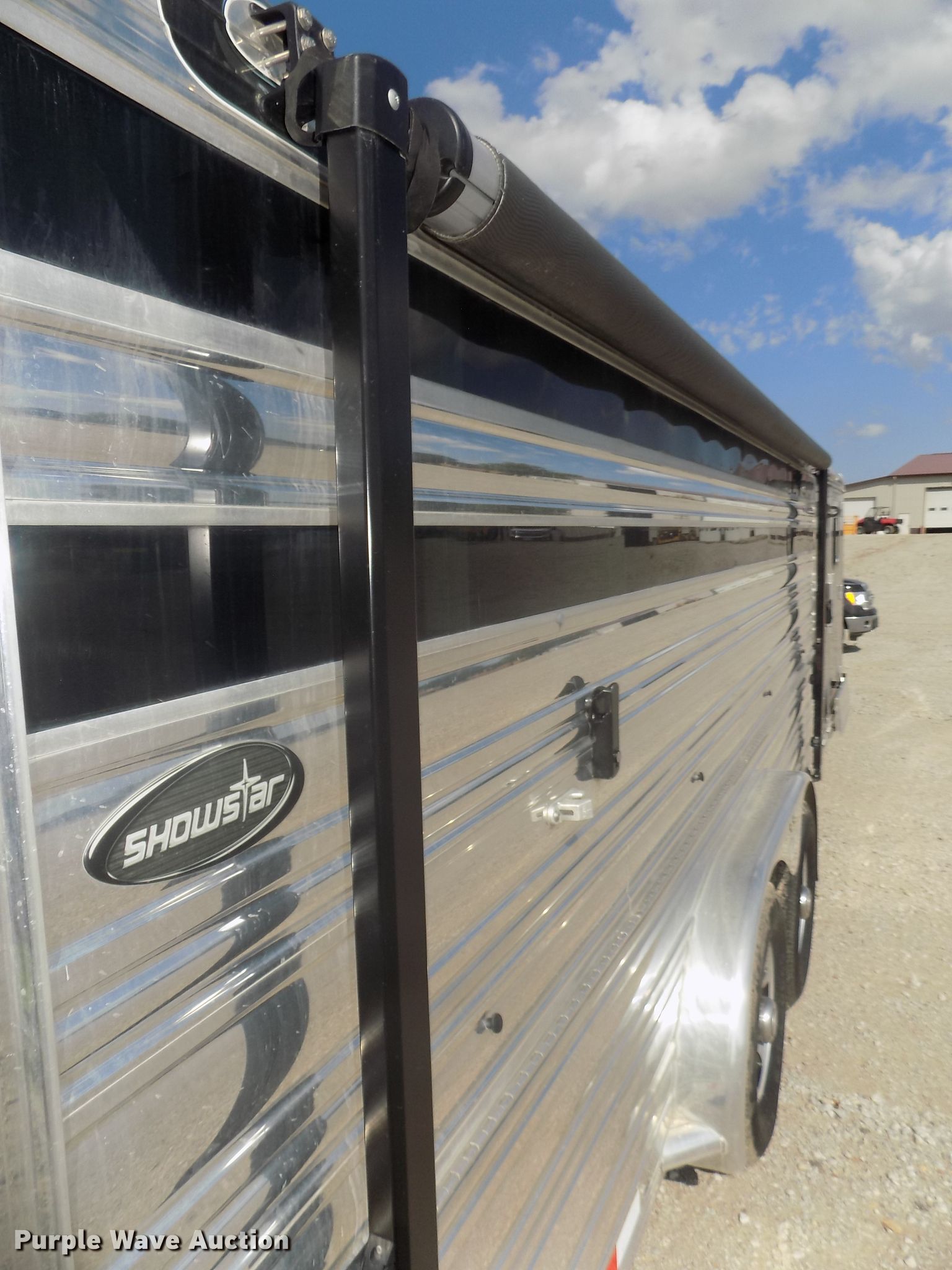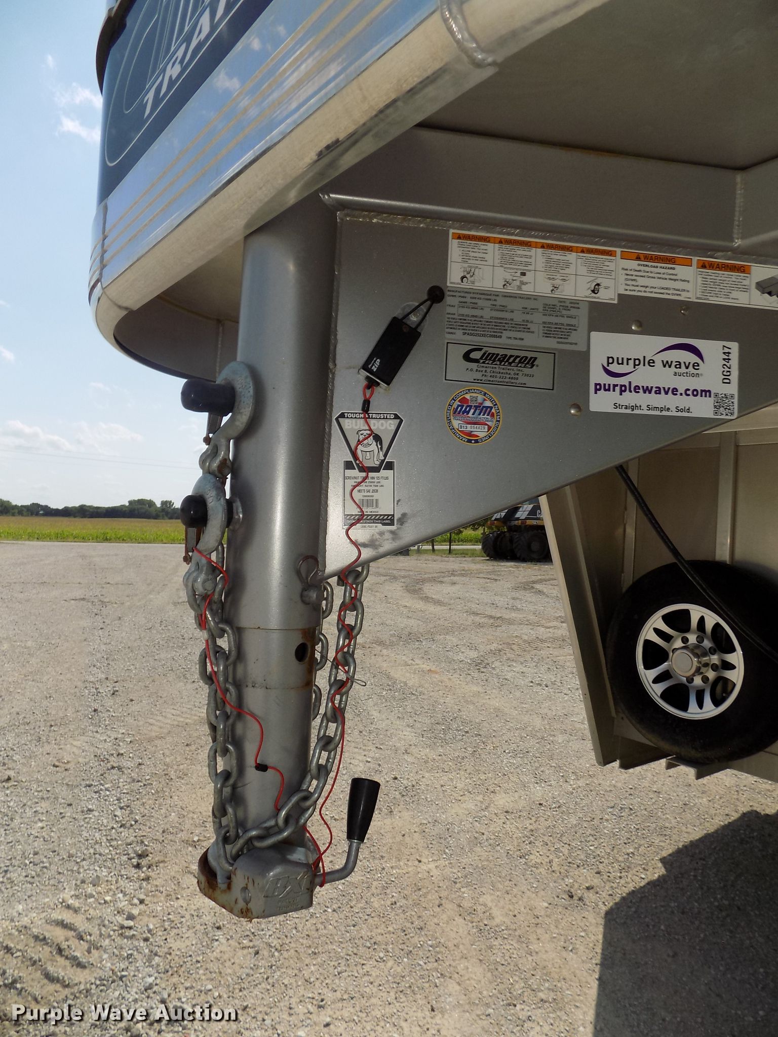 Purple Wave is selling a used Livestock Trailer in Nebraska. This item is a 2014 Cimarron Showstar livestock trailer with the following: 32'L x 102"W overall, 24'L x 88"W body, 81" to 88"W interior, 73"H I.D., (15) divider gates, (5) centered gates, 10 individual pen max setup, Adjustable gates, 47"L x 42"W individual pens, Tuthill Fill-Rite DC pump, Awning, Aluminum construction, Single leg landing gear, Electric brakes, Tandem torsion axles, Aluminum wheels, ST235/80R16 tires, GVWR 13,680 lbs, GAWR 6,840 lbs