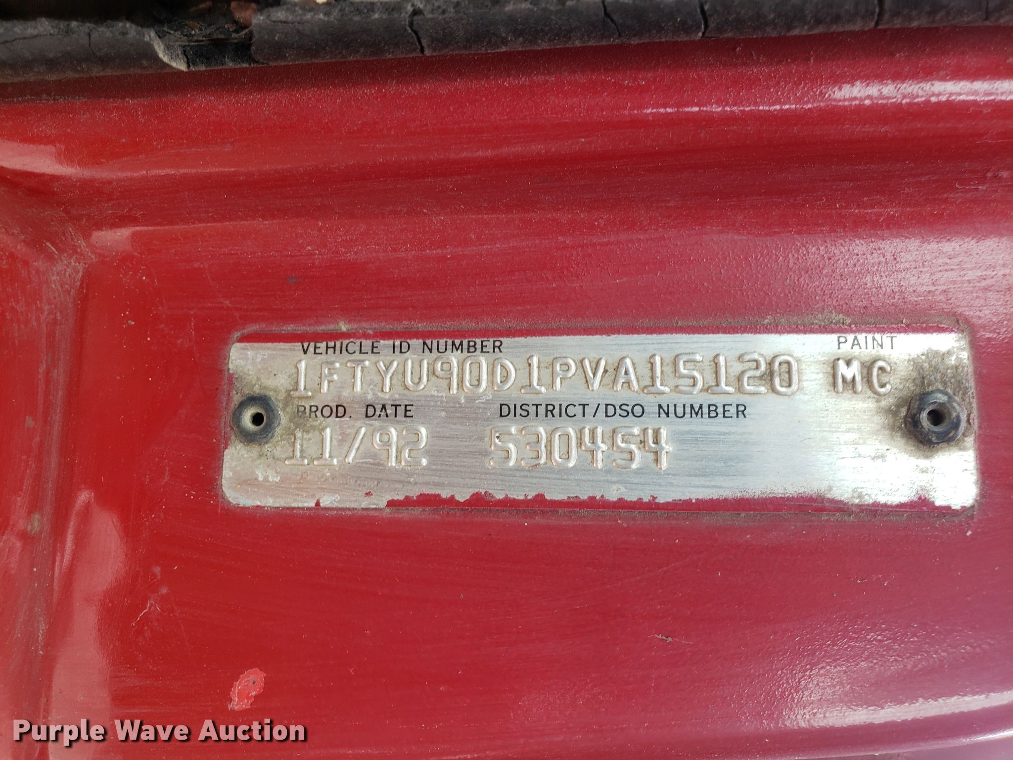 Purple Wave is selling a used Truck Tractor in Missouri. This item is a 1993 Ford L9000 semi truck with the following: 416,735 miles on odometer, Detroit Diesel Series 60 12.7L L6 diesel engine, Eaton Fuller manual transmission, Tandem axle, Heat, Aluminum deck plate, Air operated fifth wheel plate, Dual fuel tanks, Walking beam suspension, Air brakes, 295/75R22.5 front tires, 11R22.5 rear tires, GVWR 52,000 lbs