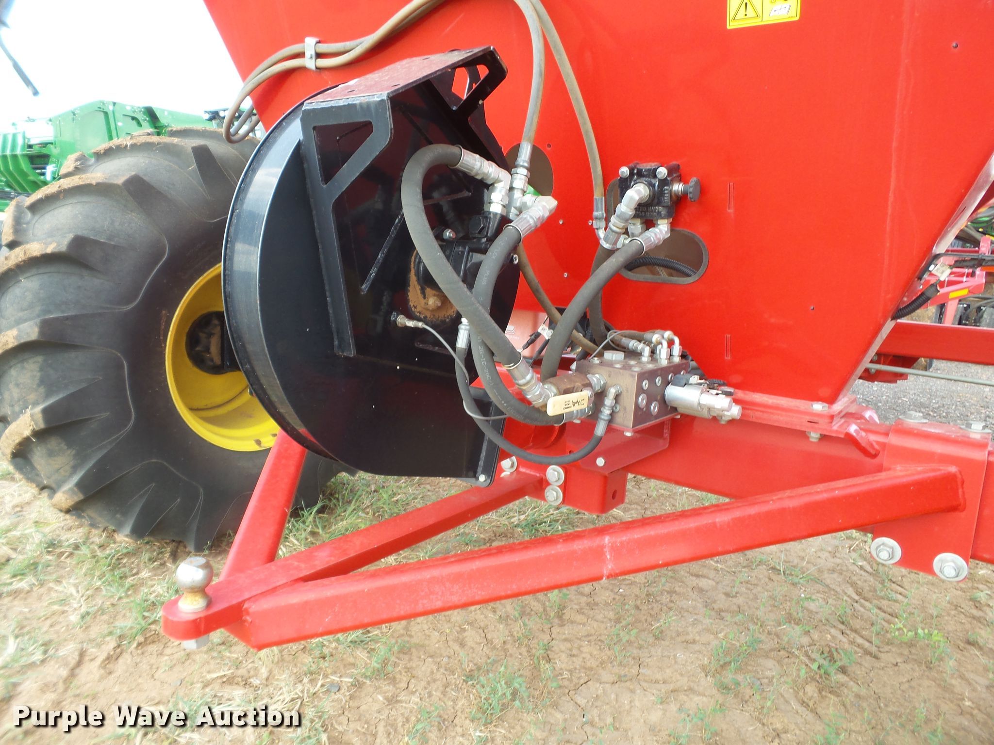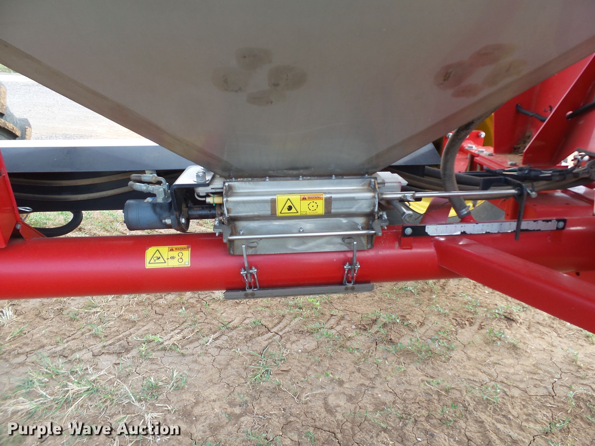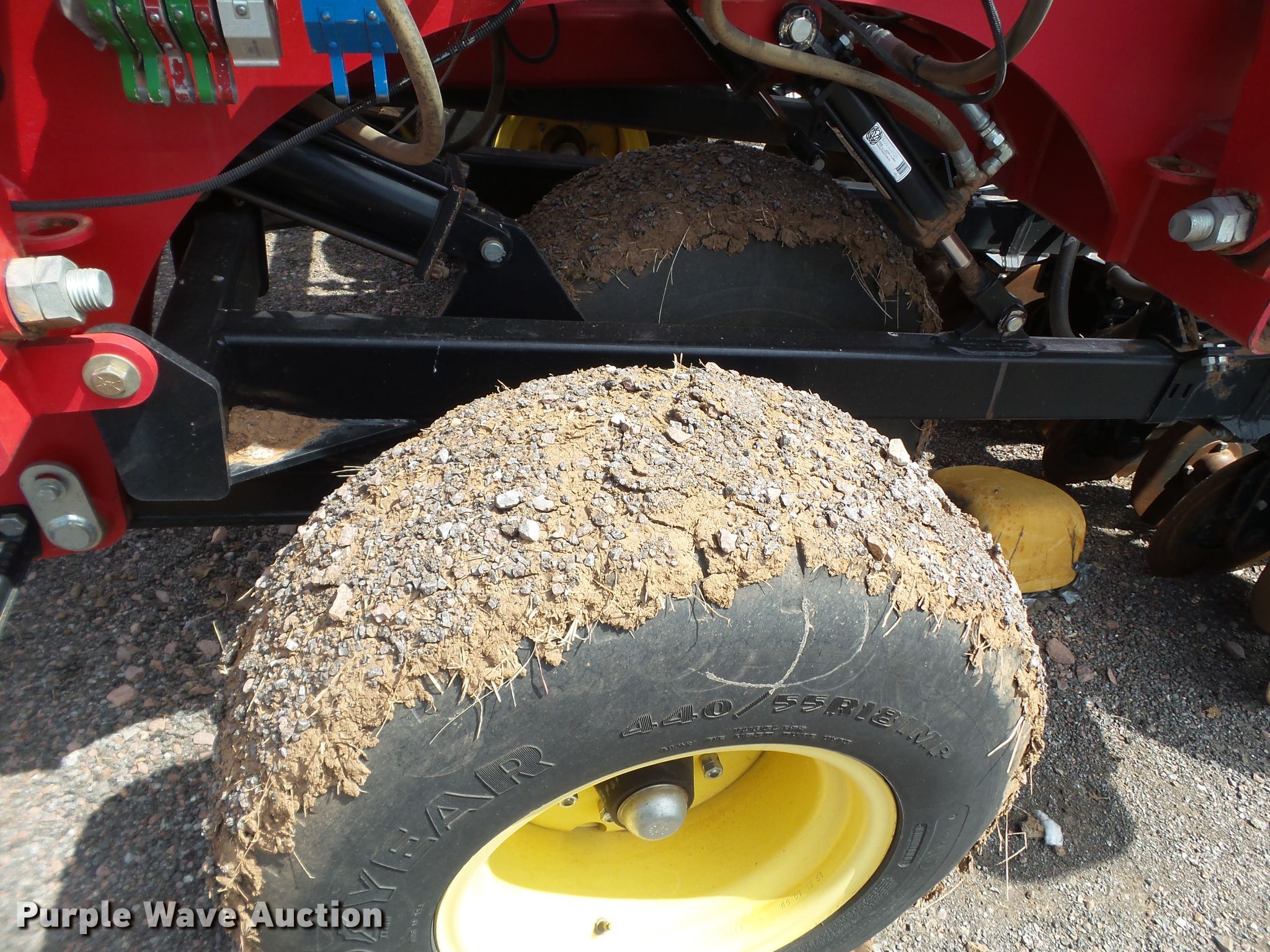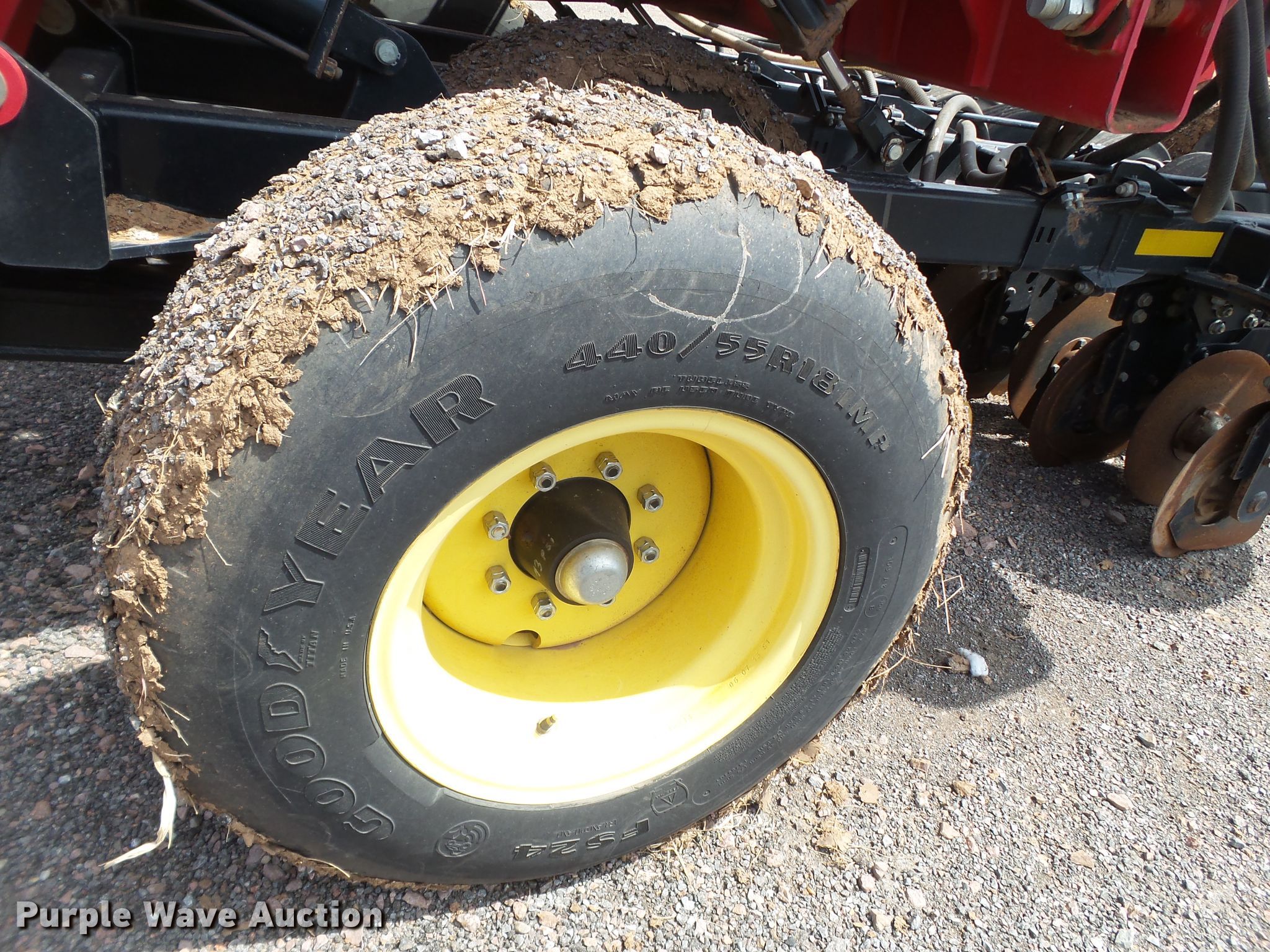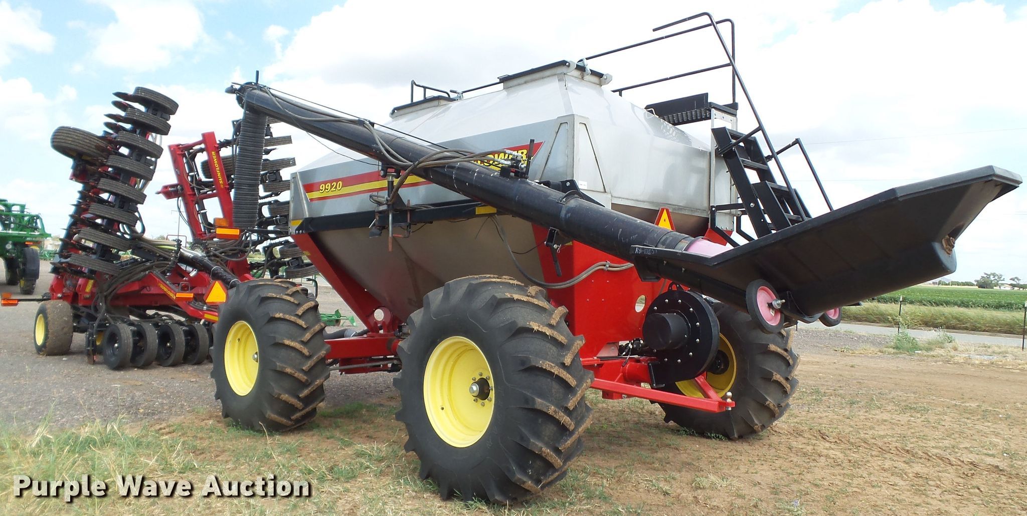 Purple Wave is selling a used Air Seeder in Oklahoma. This item is a 2013 Sunflower 9830 air seeder with the following: 30'W, 48 row units, 7.5" row spacing, Hydraulic wing fold, Bulk fill system, 335 bushel capacity, Sunflower 9920 air commodity cart, Hydraulic fill auger, Serial AGCS99335DX702186, No-till coulters, Single disk openers, Single gauge wheels, Seed firmers, Single rubber closing system, Sunflower monitor, (6) 440/55R18 transport tires, Serial AGCS98330DX461929