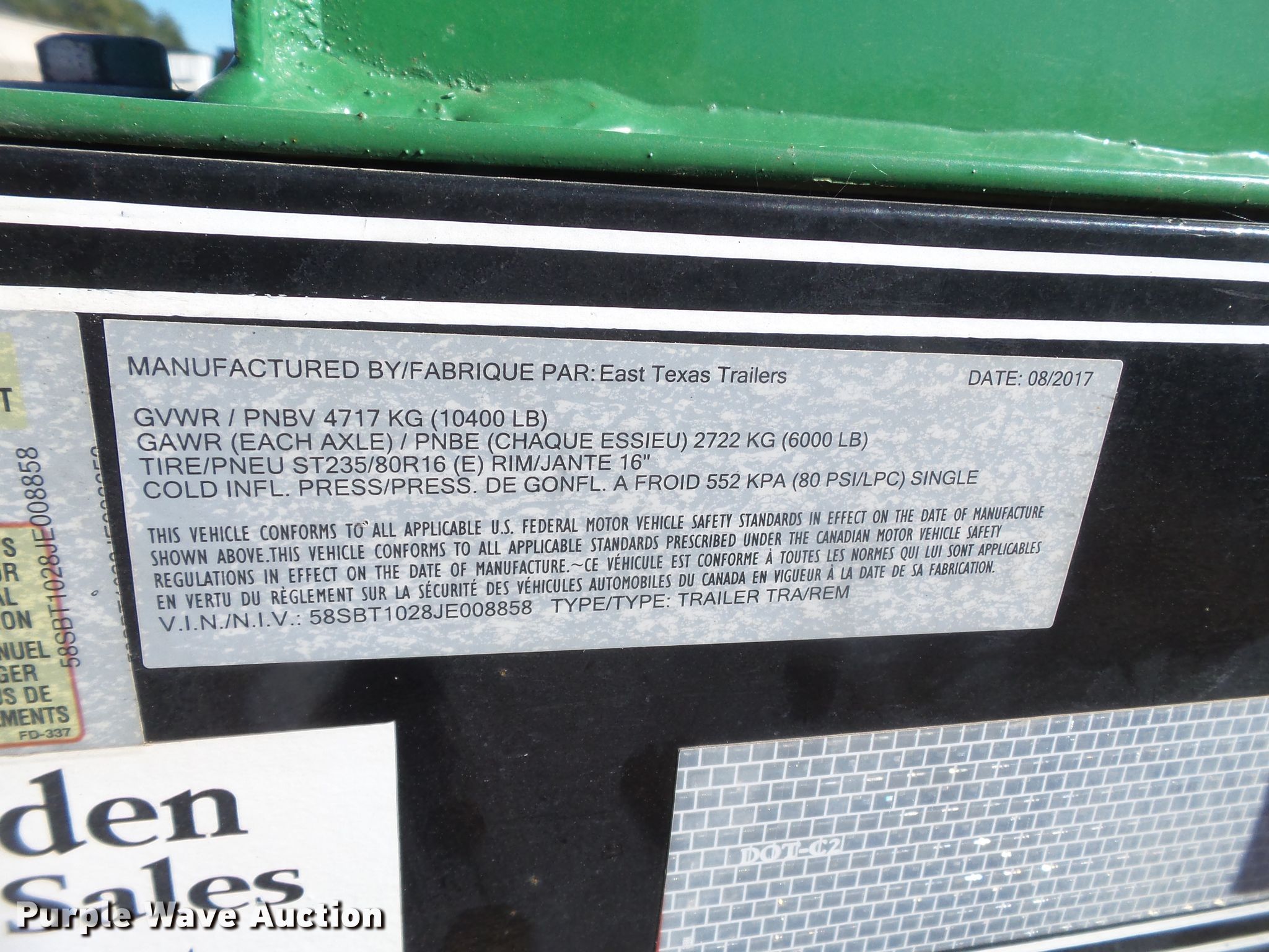 Take a look at this used 2018 East Texas fuel tank trailer being sold on October 23rd, 2019 in the SOLD! October 23 Ag Equipment Auction made by East Texas. Take a look at all of the item information below or take a look at similar auctions for Trailers.