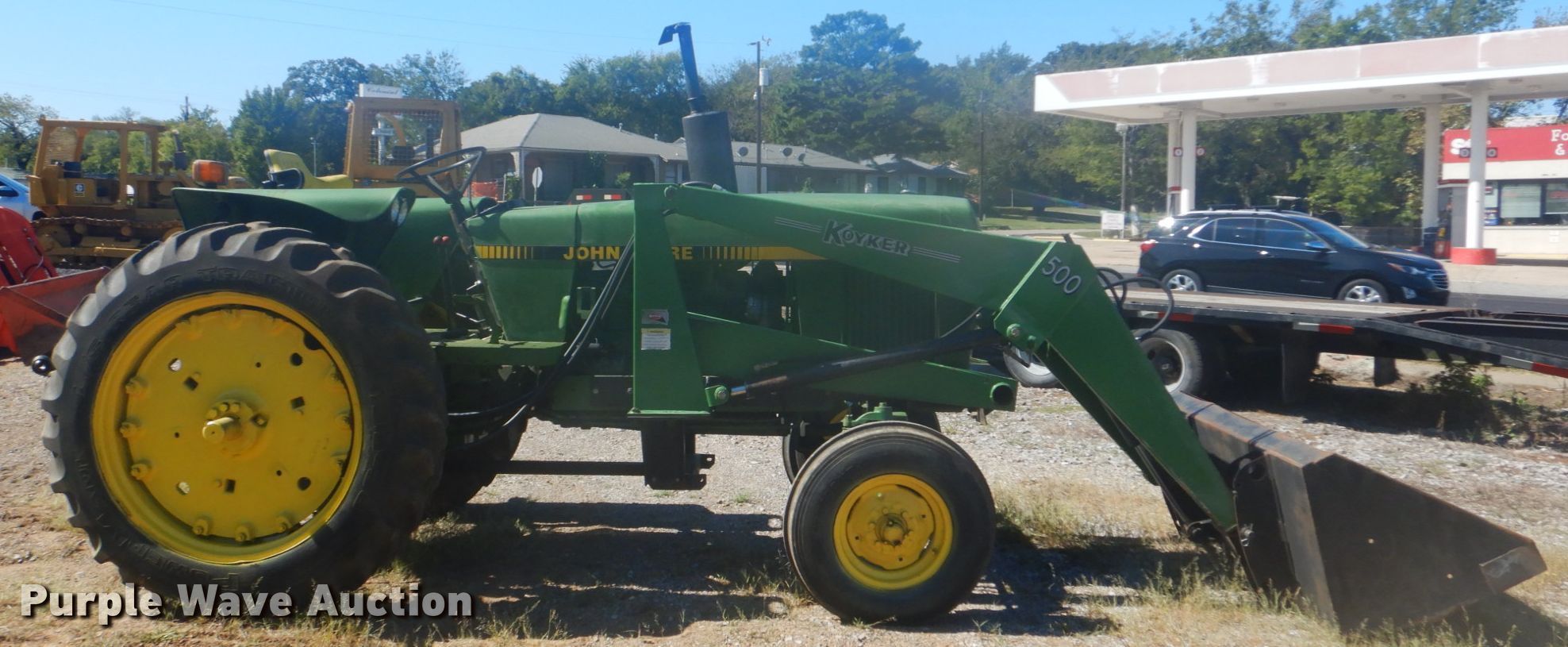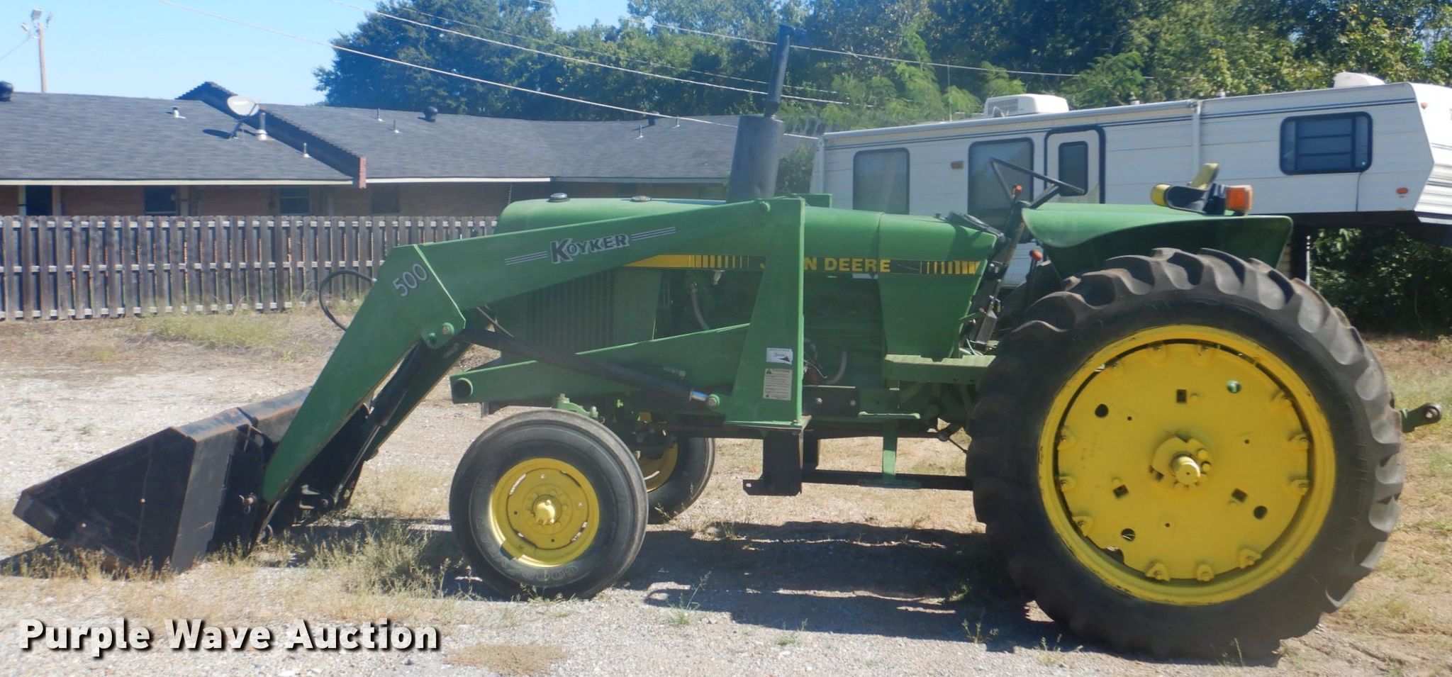 Purple Wave is selling a used Tractor in Oklahoma. This item is a 1978 John Deere 2840 tractor with the following: 3,500 hours on meter, John Deere 5.4L six cylinder diesel engine, Powershift transmission, 12F-6R gears, Koyker 500 loader, 72"W bucket, Three point, Top link, 540 PTO, (2) rear hydraulic remote sets, 96" wheelbase, 7.50-16SL front tires, 15.5-38 rear tires, Serial 297793CD