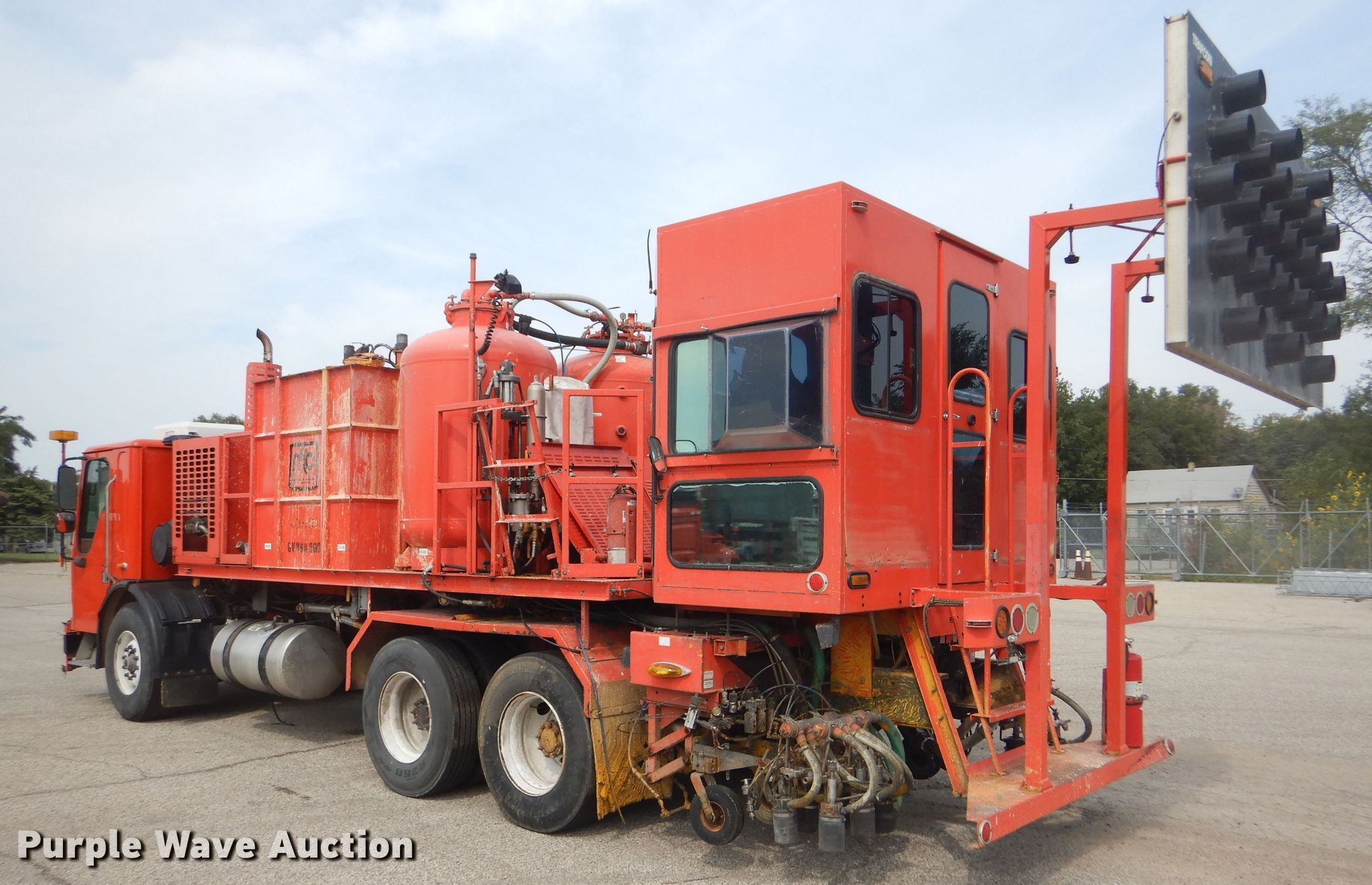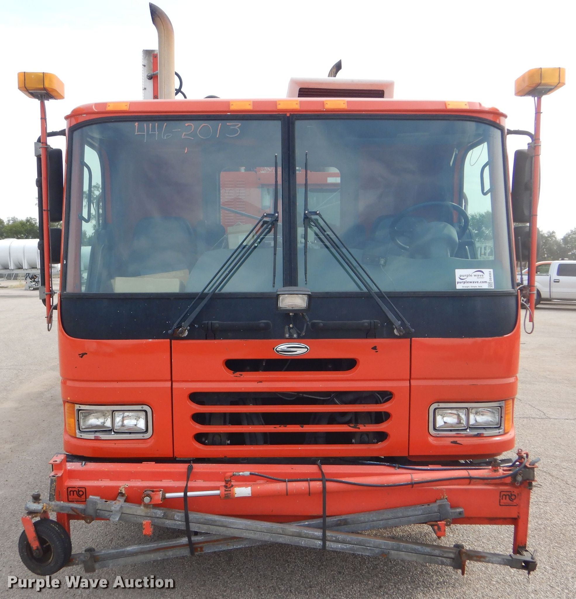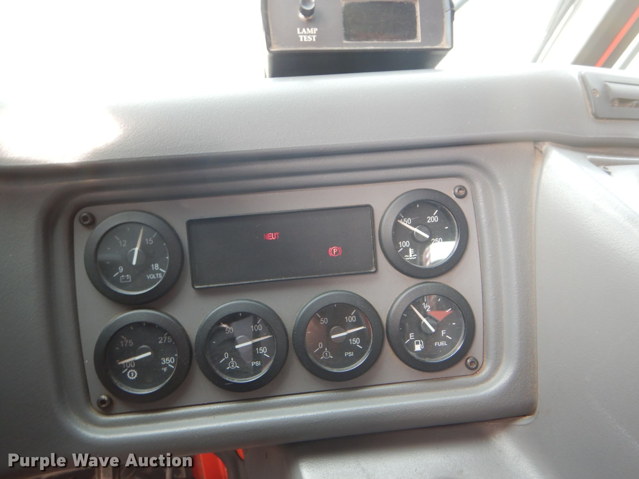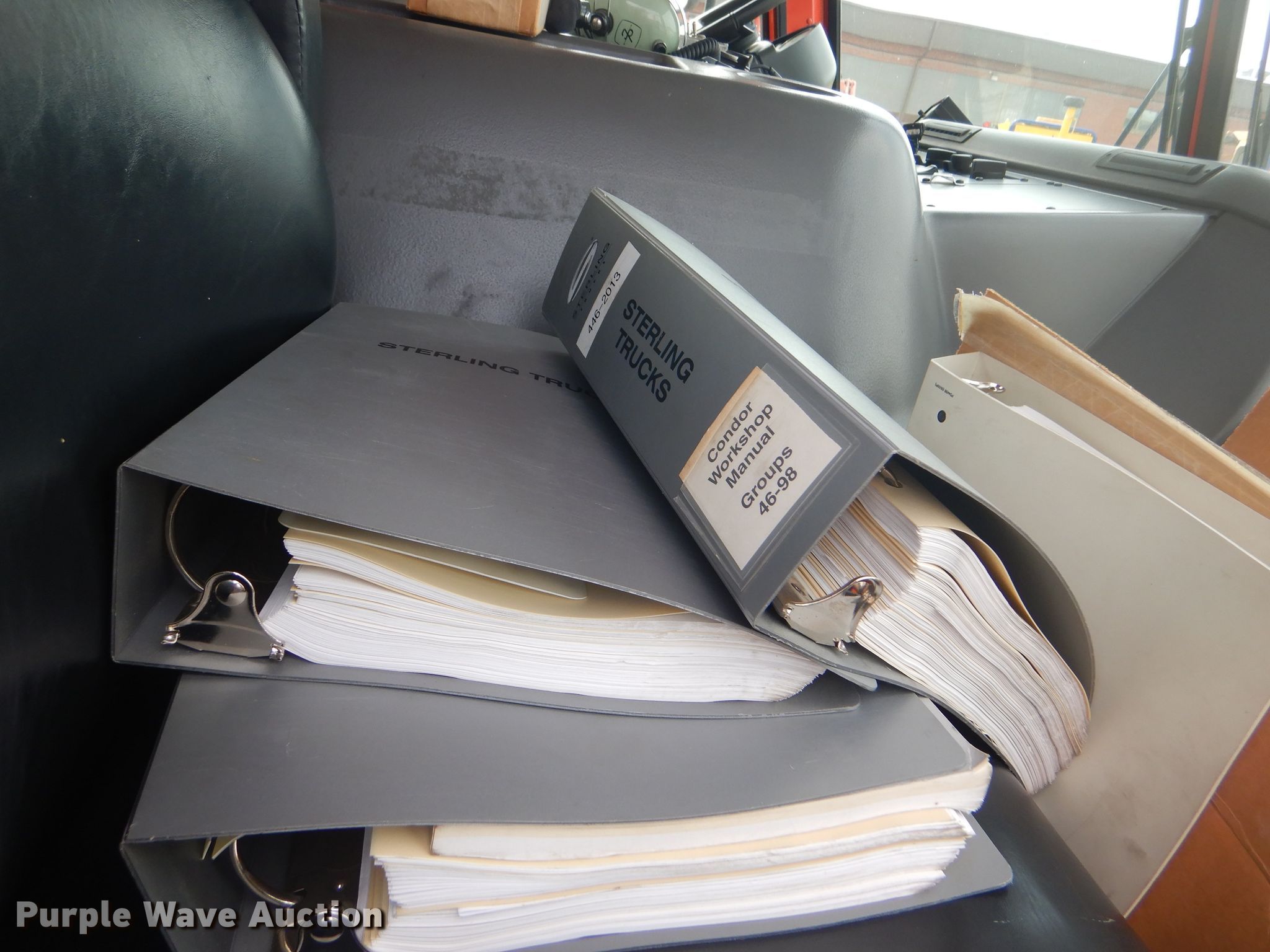 Purple Wave is selling a used Flat Bed Truck in Kansas. This item is a 2003 Sterling Condor paint striping truck with the following: 175,342 miles on odometer, 6,965 hours on paint striping engine, Caterpillar 3126 7.2L L6 diesel engine, Allison automatic transmission, Tandem axle, AC and heat, MB paint striping bed, Cummins 4BT four cylinder diesel engine, (2) bead tanks, (2) paint tanks, Dual operation stations, 202" wheelbase, Air suspension, Air brakes, 425/65R22.5 front tires, 11R22.5 rear tires, Manual, Bolt broken between air compressor and engine, KDOT ID 446-2013