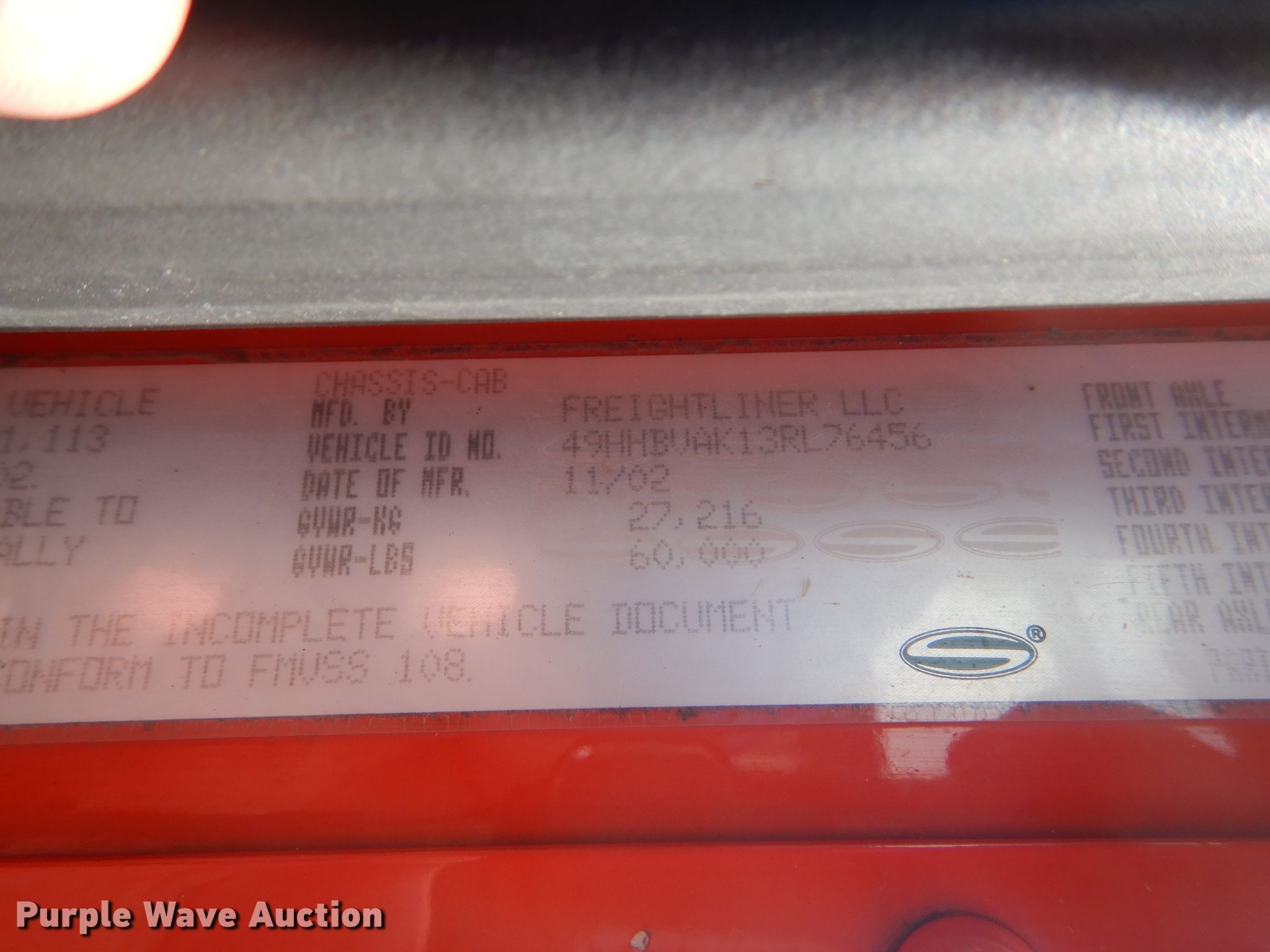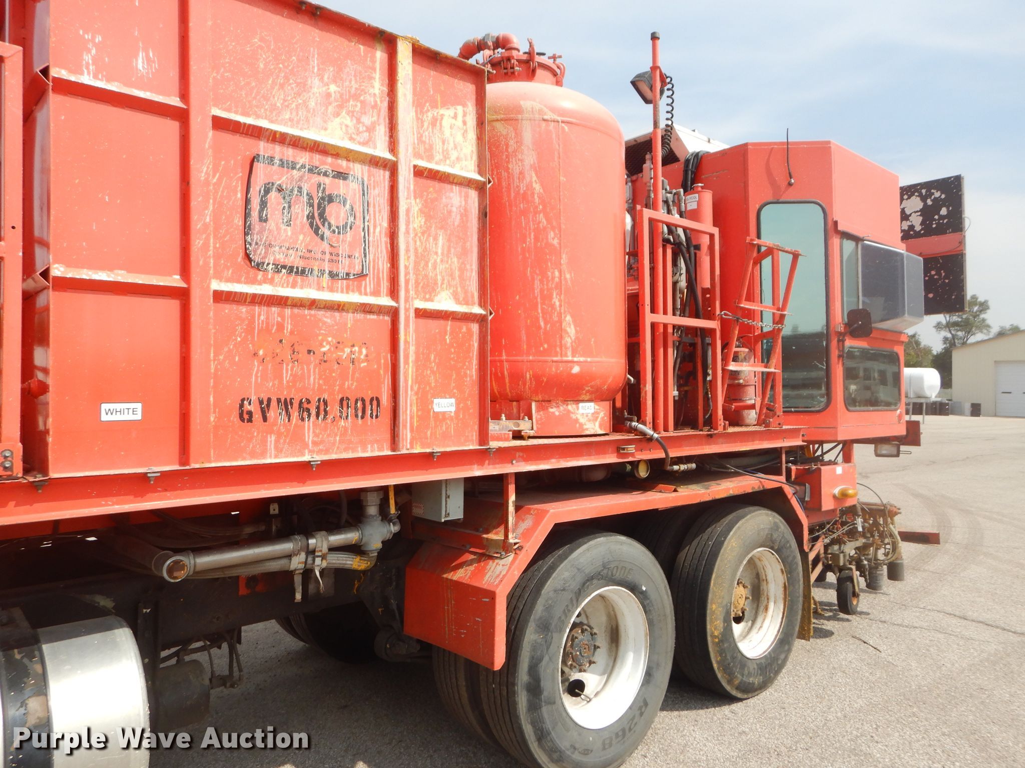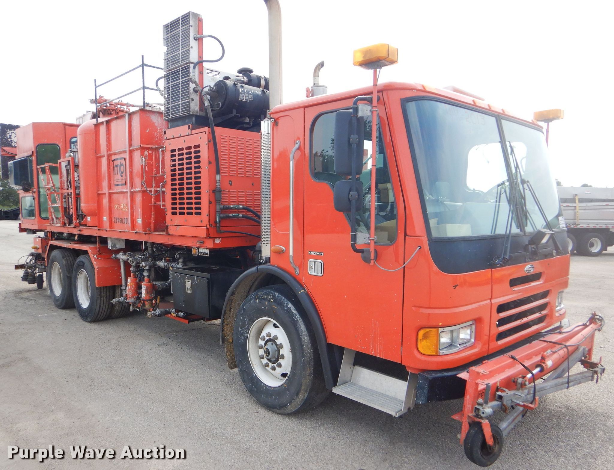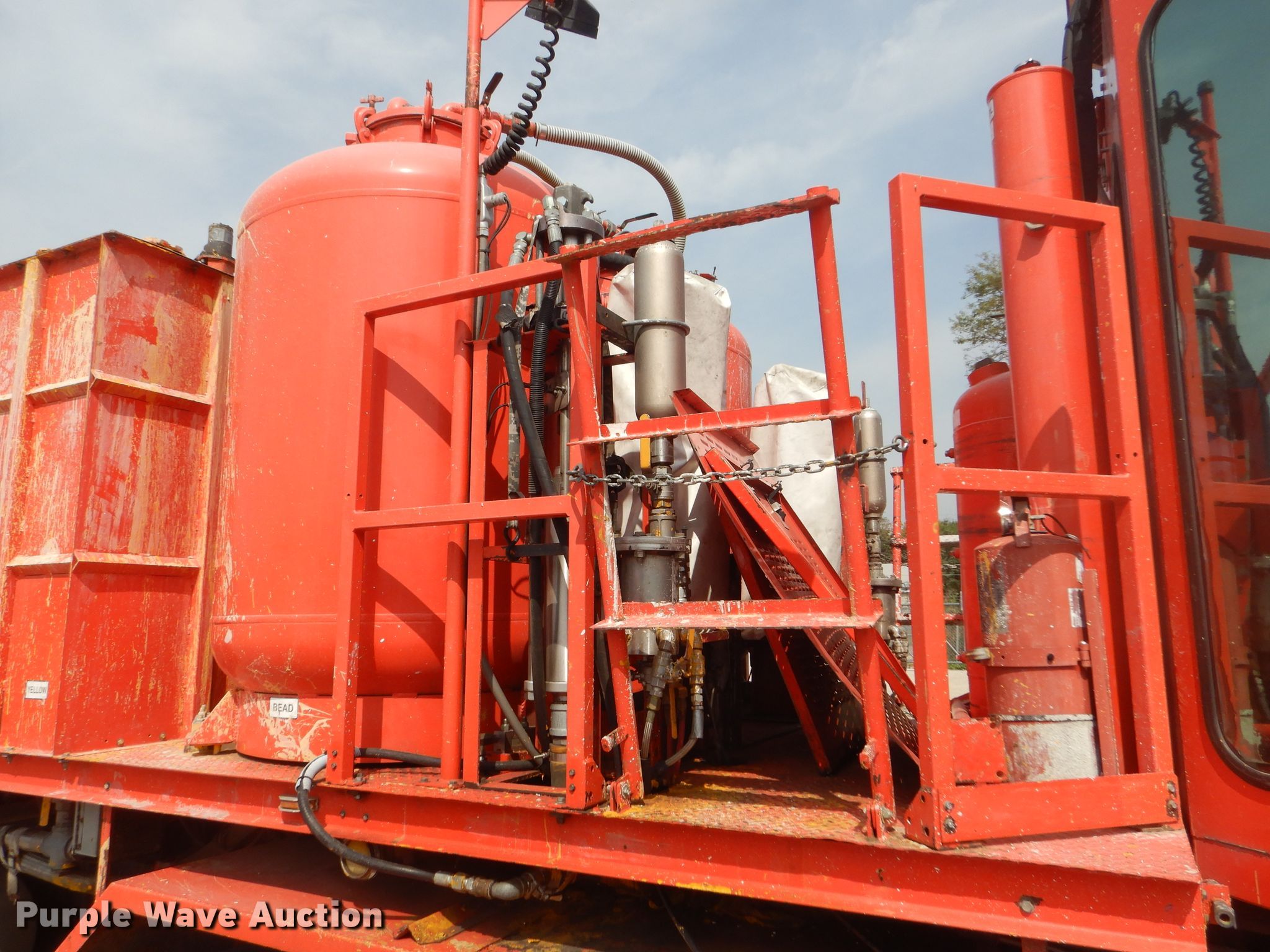 Purple Wave is selling a used Flat Bed Truck in Kansas. This item is a 2003 Sterling Condor paint striping truck with the following: 175,342 miles on odometer, 6,965 hours on paint striping engine, Caterpillar 3126 7.2L L6 diesel engine, Allison automatic transmission, Tandem axle, AC and heat, MB paint striping bed, Cummins 4BT four cylinder diesel engine, (2) bead tanks, (2) paint tanks, Dual operation stations, 202" wheelbase, Air suspension, Air brakes, 425/65R22.5 front tires, 11R22.5 rear tires, Manual, Bolt broken between air compressor and engine, KDOT ID 446-2013