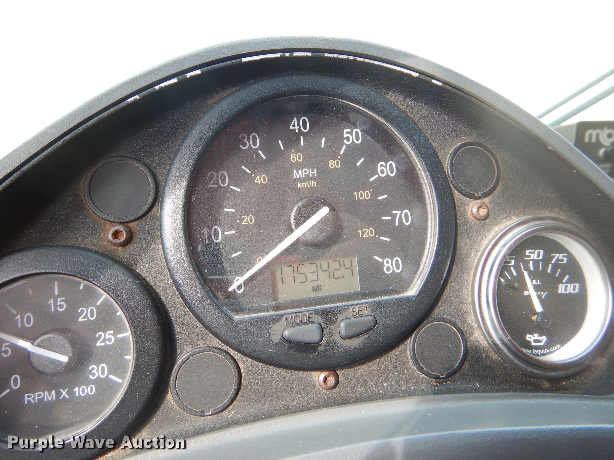 2003 Sterling Condor paint striping truck. 175,342 miles on odometer, 6,965 hours on paint striping engine, Caterpillar 3126 7.2L L6 diesel engine, Allison automatic transmission, Tandem axle, AC and heat, MB paint striping bed Cummins 4BT four cylinder diesel engine, (2) bead tanks, (2) paint tanks, Dual operation stations, 202" wheelbase, Air suspension, Air brakes, 425/65R22.5 front tires, 11R22.5 rear tires, Manual, Bolt broken between air compressor and engine, KDOT ID 446-2013. Kansas title. Titles will be distributed after confirmation of payment and removal. 49HHBVAK13RL76456. Kansas Dept. of Transportation - Salina. 1006 North 3rd. Salina, KS 67401