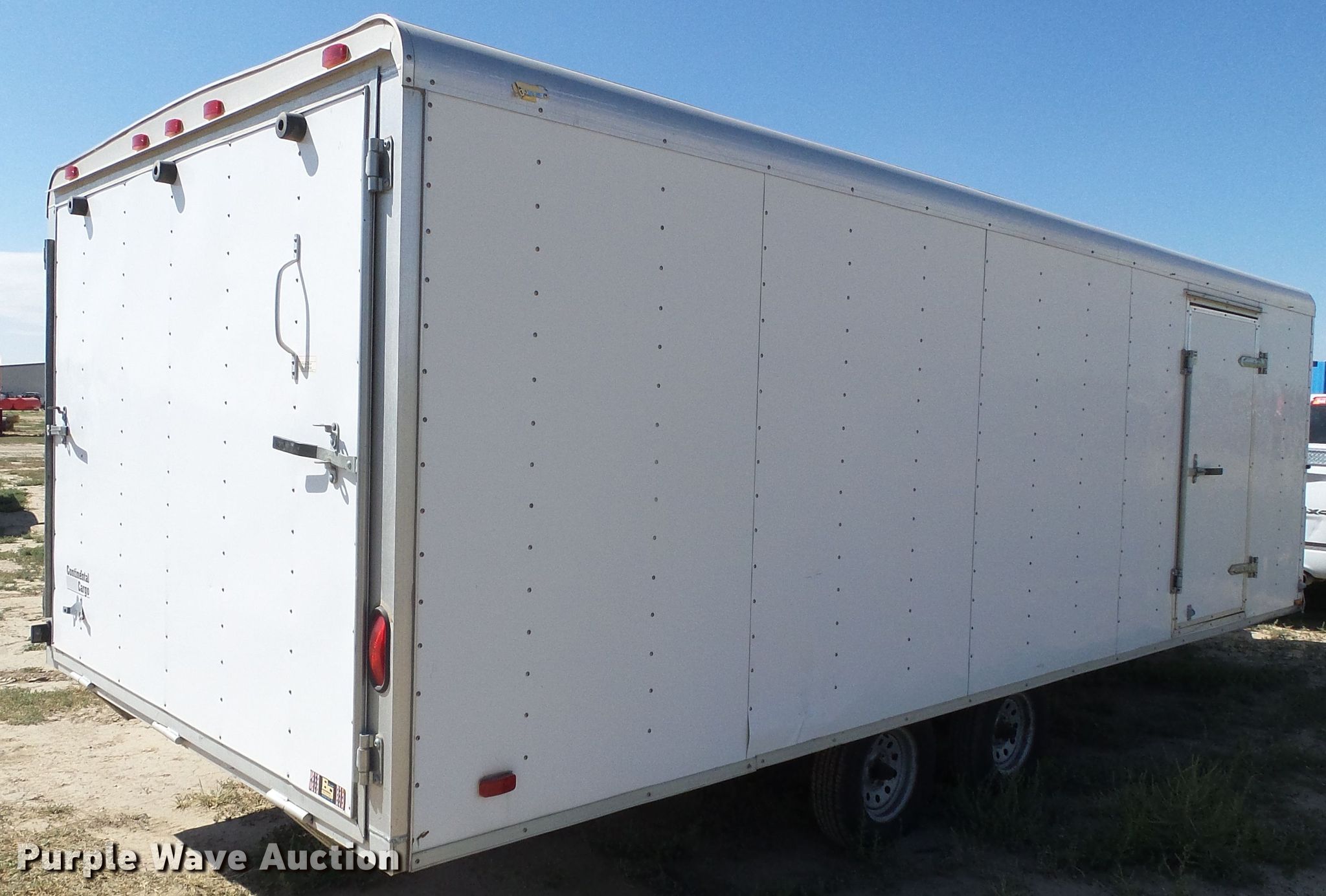 Purple Wave is selling a used Enclosed Cargo Trailer in Kansas. This item is a 2001 Continental Cargo SKA8.524TA1 enclosed cargo/snowmobile trailer with the following: 26'L x 101"W overall, 20'L x 101"W body, 74" side height, Wood deck, 36"W entry door, 60"W x 66"H front ramp door, 92"W x 6'H rear ramp door, (2) snow mobile floor grips, On-board fuel tank, 2 5/16" ball hitch, Single leg landing gear, Electric brakes, Tandem axle, ST185/80R13 tires, GVWR 6,000 lbs