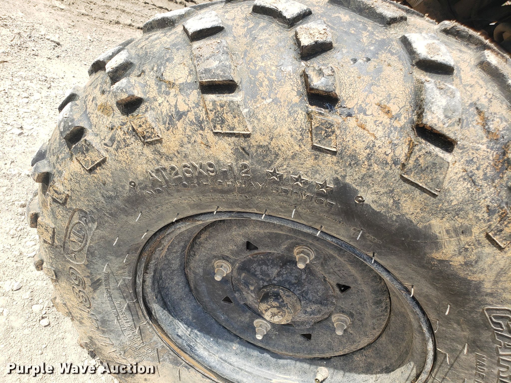 Purple Wave is selling a used Utility Vehicle in Missouri. This item is a Polaris Ranger utility vehicle with the following: 5,213 miles on odometer, Single cylinder gas engine, Automatic transmission, Four wheel drive, 26x9x12 front tires, 26x11x12 rear tires, Possible computer issues, cuts out intermittently