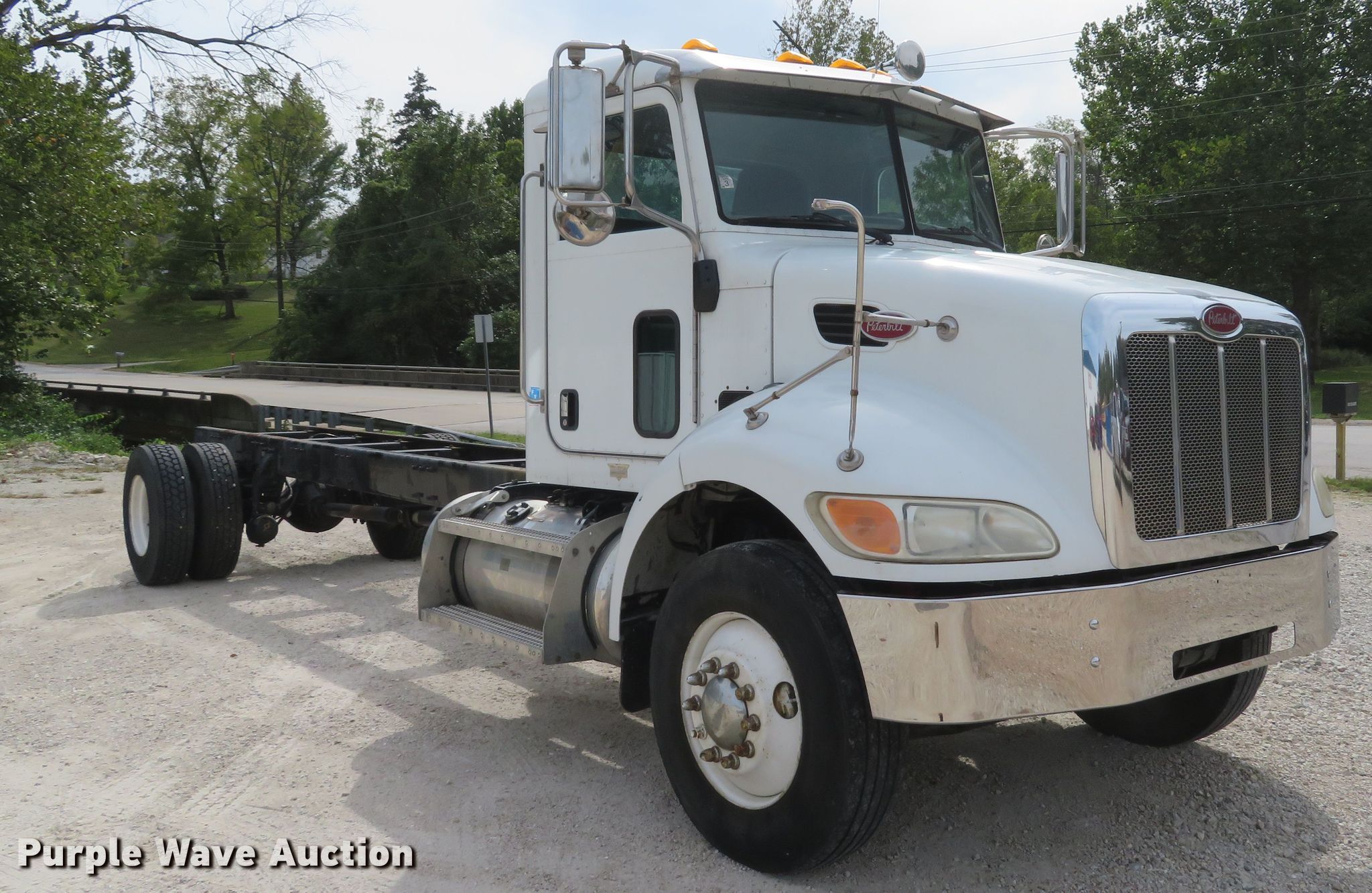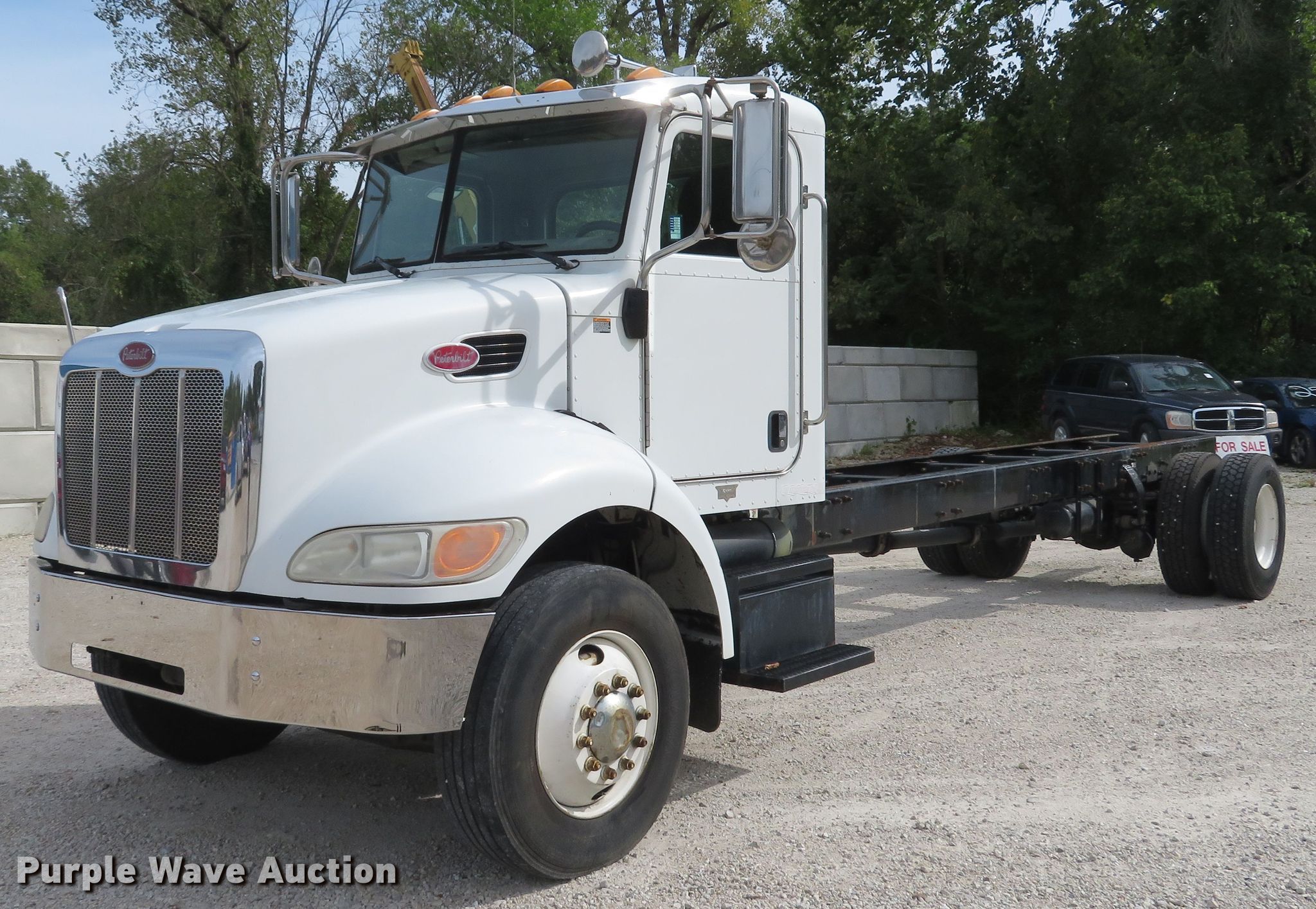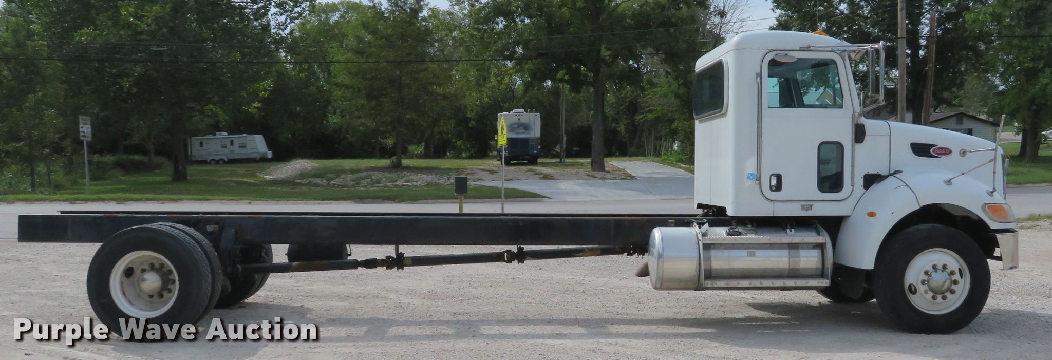 Purple Wave is selling a used Truck Chassis in Missouri. This item is a 2006 Peterbilt 335 truck cab and chassis with the following: 206,789 miles on odometer, 10,037 hours on meter, Caterpillar C7 7.2L L6 diesel engine, Automatic transmission, Single axle, AC and heat, Cruise, Power window, Single fuel tank, 263" from rear of cab to rear of frame, 204" from rear of cab to center of rear axle, Air suspension, Air brakes, 273" wheelbase, 295/75R22.5 tires, GVWR 33,000 lbs, FAWR 12,000 lbs, RAWR 21,000 lbs