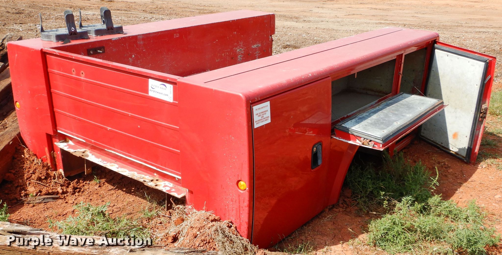 Purple Wave is selling a used Automotive Parts or Acces. in Oklahoma. This item is a Utility bed with the following: 113"L x 91"W overall, 9'L x 54"W I.D., (6) compartments, Taillights